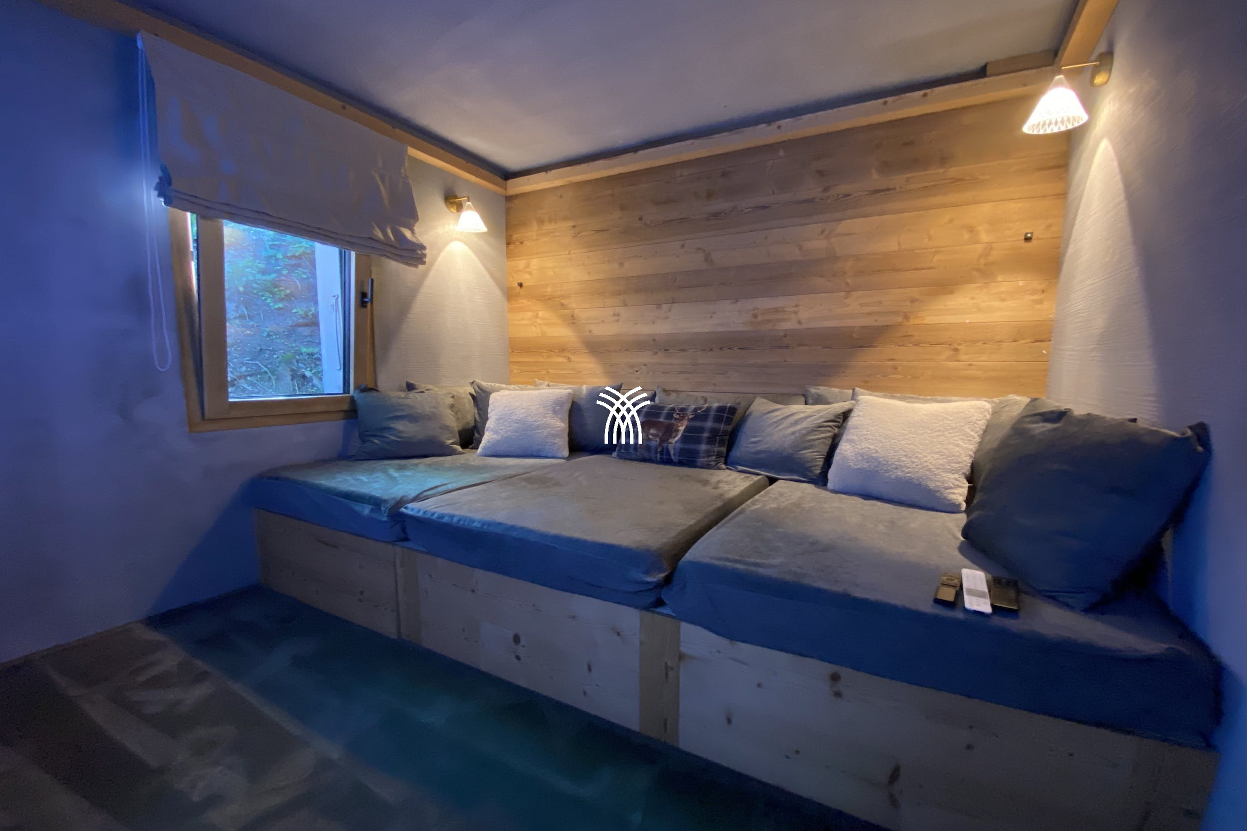 Après une journée d'aventure, le jacuzzi extérieur pour dix personnes et le sauna panoramique pour huit avec une fenêtre en verre à 360° donnant sur la forêt promettent une détente sans précédent. Le jardin spacieux et la terrasse baignée de soleil vous invitent à vous attarder, à respirer l'air de montagne frais et à vous imprégner de la sérénité alpine.
