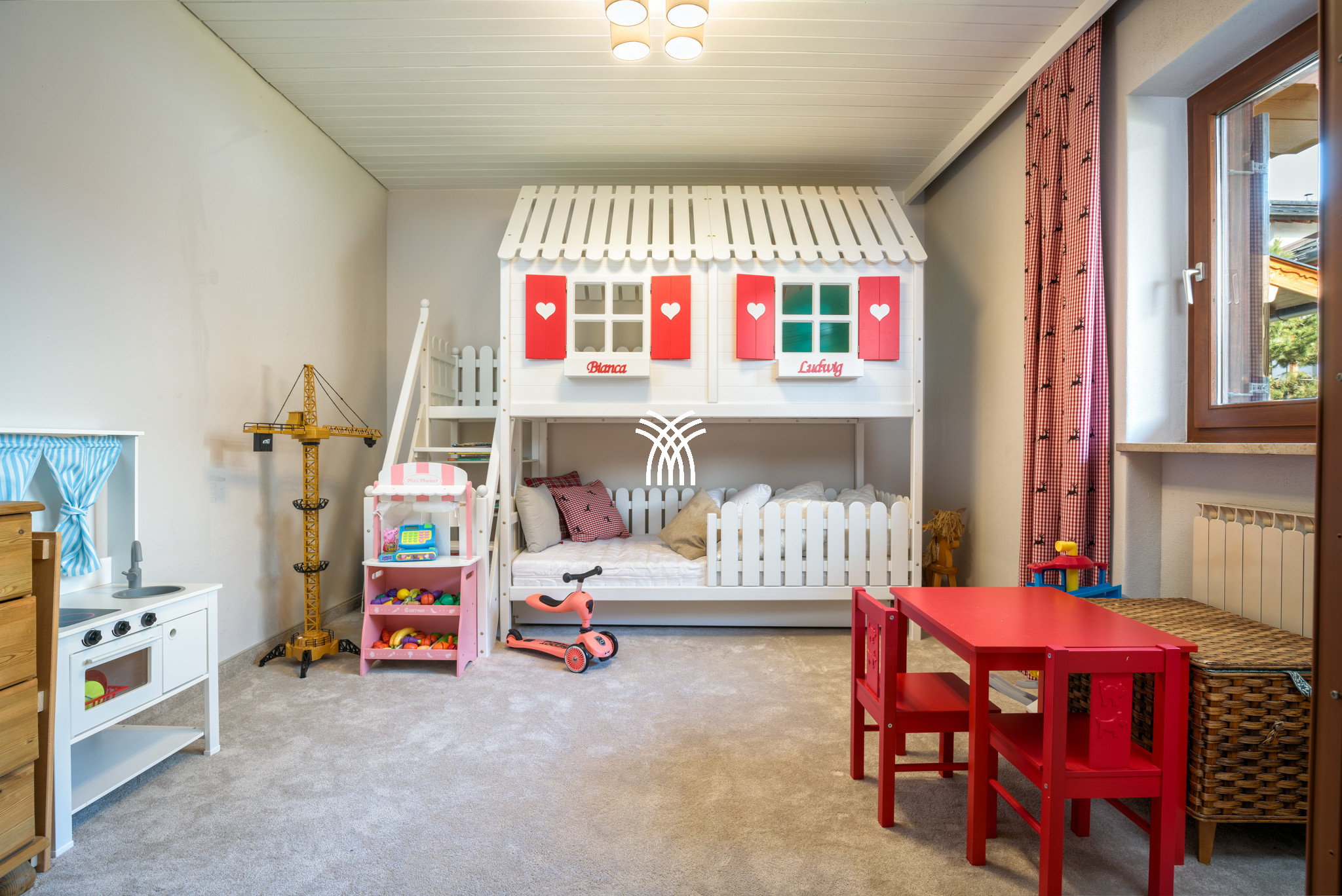 Avec ses 600 m² de surface intérieure et son vaste jardin plat de 2000 m², le Chalet Kirchberg accueille jusqu’à quatorze voyageurs dans des espaces généreux et raffinés. Les chambres, réparties sur plusieurs niveaux, offrent chacune leur propre salle de bain, créant un cocon d’intimité et de confort pour chaque invité. Les pièces de vie, baignées de lumière grâce à leur architecture ouverte et leurs vues sur les montagnes, invitent à partager de longs moments autour du feu, dans l’immense salon doté d’une cheminée, d’une télévision moderne et d’une grande table familiale. La cuisine principale, installée en 2024, est entièrement équipée et pensée pour les séjours gastronomiques, tandis que des kitchenettes supplémentaires complètent harmonieusement les espaces du chalet.