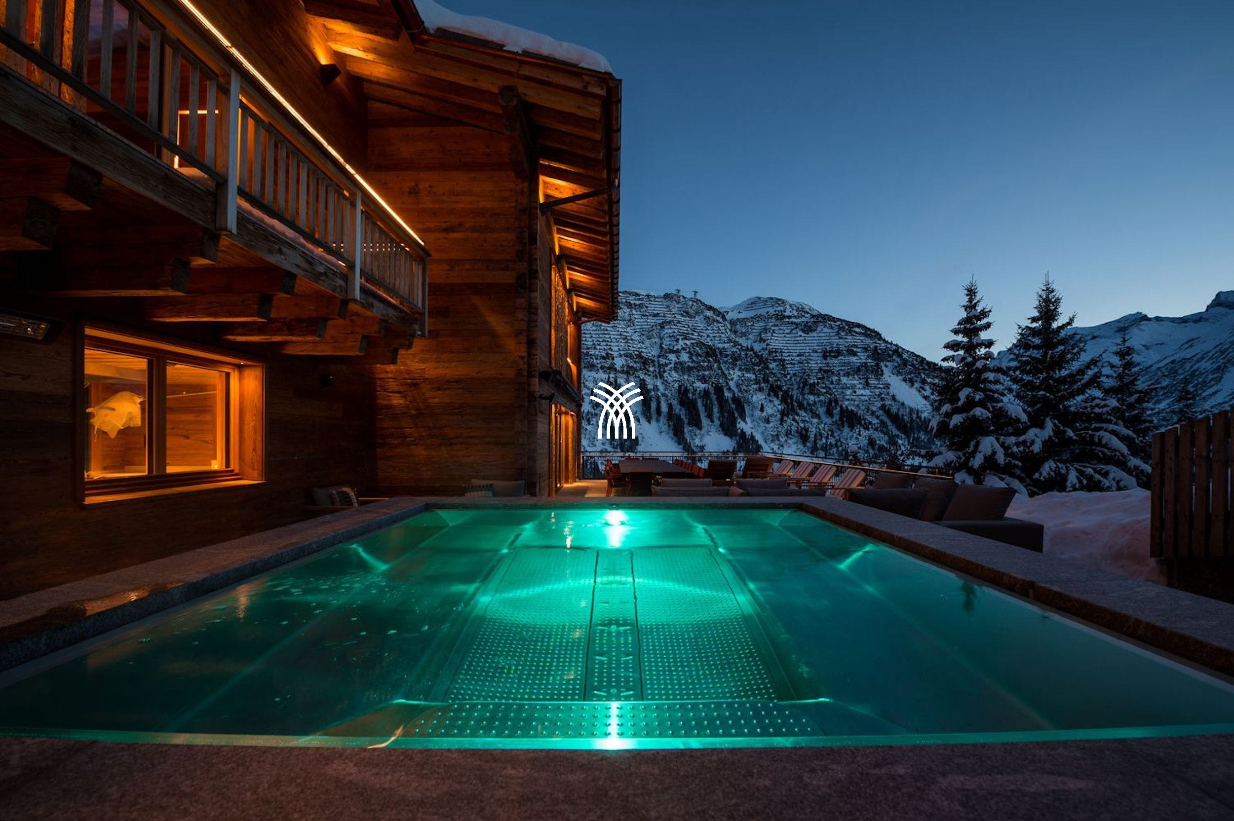 Chaque détail a été soigneusement sélectionné, mêlant la chaleur d'un chalet alpin raffiné à la sophistication d'un hôtel de luxe. Un service 24 heures sur 24, plusieurs espaces de détente accueillants et une multitude d'espaces de divertissement font de cet endroit un choix exceptionnel pour les grands rassemblements. L'espace de restauration principal s'ouvre directement sur une terrasse au rez-de-chaussée, tandis qu'une salle de petit-déjeuner chaleureuse en bois et une cave à vin spectaculaire offrent des cadres alternatifs pour des repas mémorables. À l'extérieur, un espace de détente, des bains à remous avec vue panoramique et un espace de restauration supplémentaire offrent des endroits parfaits pour se détendre sous le ciel alpin.