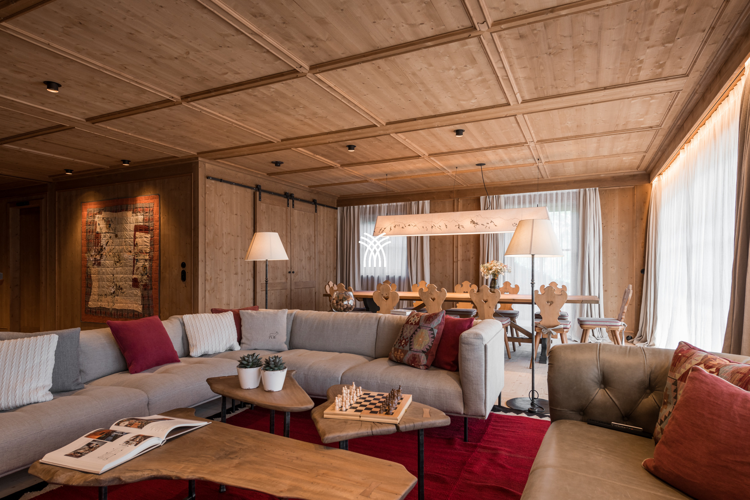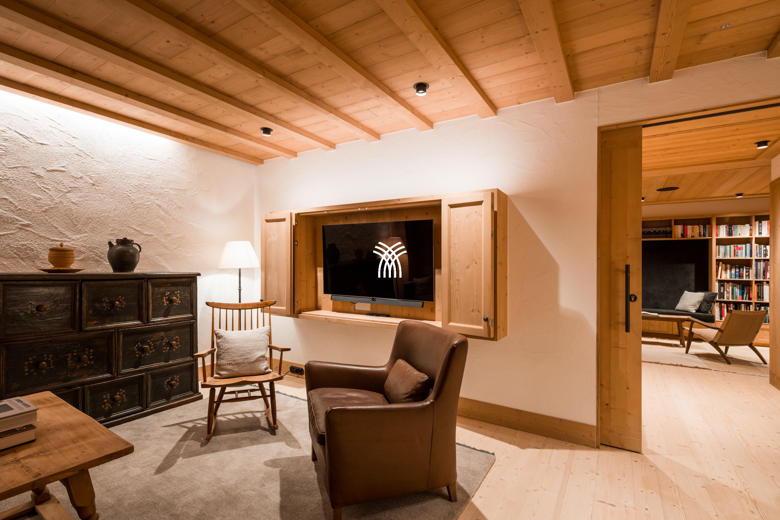 Fraîchement construit et soigneusement conçu, le Chalet Mimi peut accueillir jusqu'à 14 invités dans six chambres magnifiquement aménagées. La disposition comprend une chambre principale, trois chambres doubles, une chambre avec un lit superposé et une chambre d'enfants supplémentaire avec deux lits superposés, ce qui fait du chalet un hébergement parfaitement adapté aux familles et aux groupes à la recherche d'une retraite alpine raffinée. Chaque espace reflète un mélange harmonieux d'artisanat et de luxe discret, où la tradition s'exprime à travers des détails faits main, des textures naturelles et une esthétique alpine sereine.