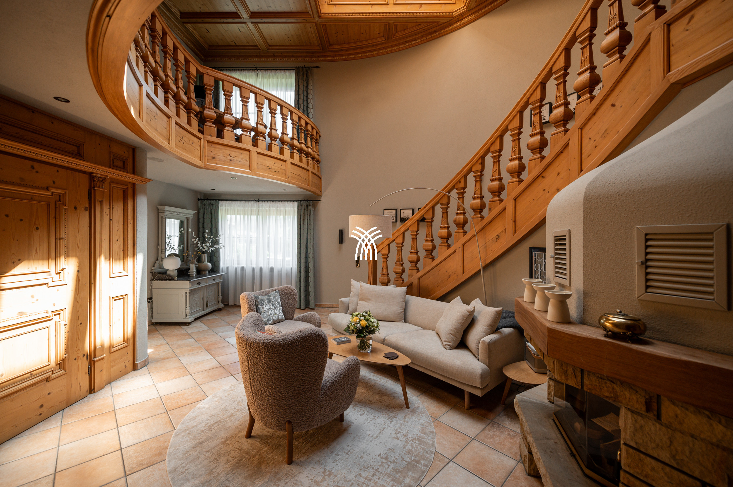 Réparti sur 245 mètres carrés et s'étendant sur trois étages magnifiquement conçus, le Chalet Toda accueille jusqu'à six invités dans une suite principale et deux chambres doubles, chaque espace étant soigneusement aménagé pour créer une atmosphère chaleureuse et accueillante. Les intérieurs sont définis par un bois naturel abondant et un éclairage indirect doux, évoquant un sens de luxe discret qui rehausse chaque moment de votre séjour. Un hall d'entrée architecturalement saisissant donne le ton, menant à un salon traditionnel autrichien qui se veut à la fois authentique et indulgent.