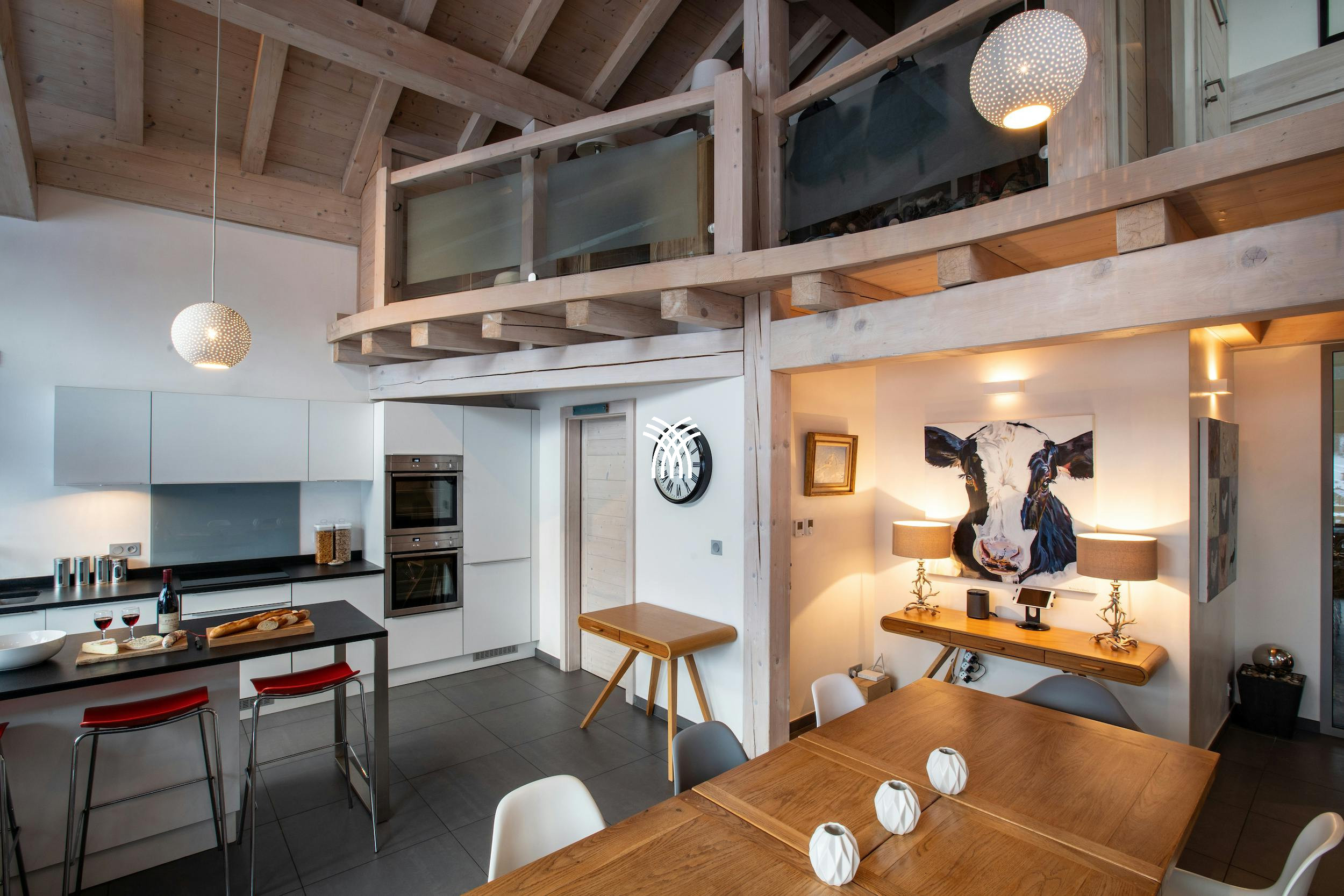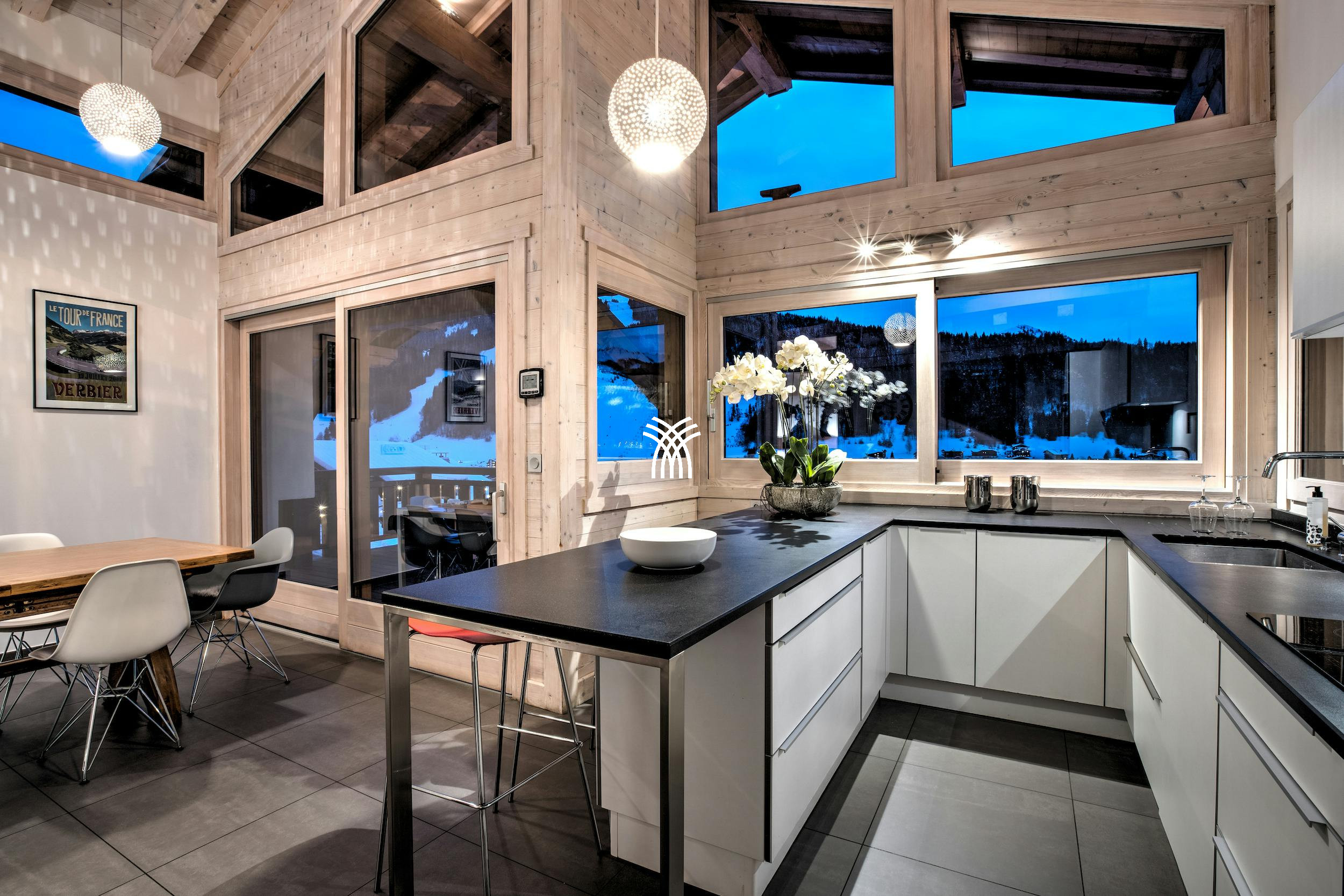 Les intérieurs de Vue Morzine reflètent un amour pour la lumière, l'espace et le mode de vie alpin moderne. Des pièces lumineuses et remplies d'art vous invitent à vous détendre, tandis que des espaces réfléchis permettent aux adultes comme aux enfants de se relaxer confortablement. Au cœur du chalet se trouve la magnifique cuisine et salle à manger ouverte, inondée de lumière naturelle grâce à des fenêtres du sol au faîte. La cuisine élégante et bien équipée dispose de deux fours, deux réfrigérateurs, un congélateur, un garde-manger et un comptoir-bar, tandis que la table à manger peut accueillir confortablement dix personnes pour des repas conviviaux.