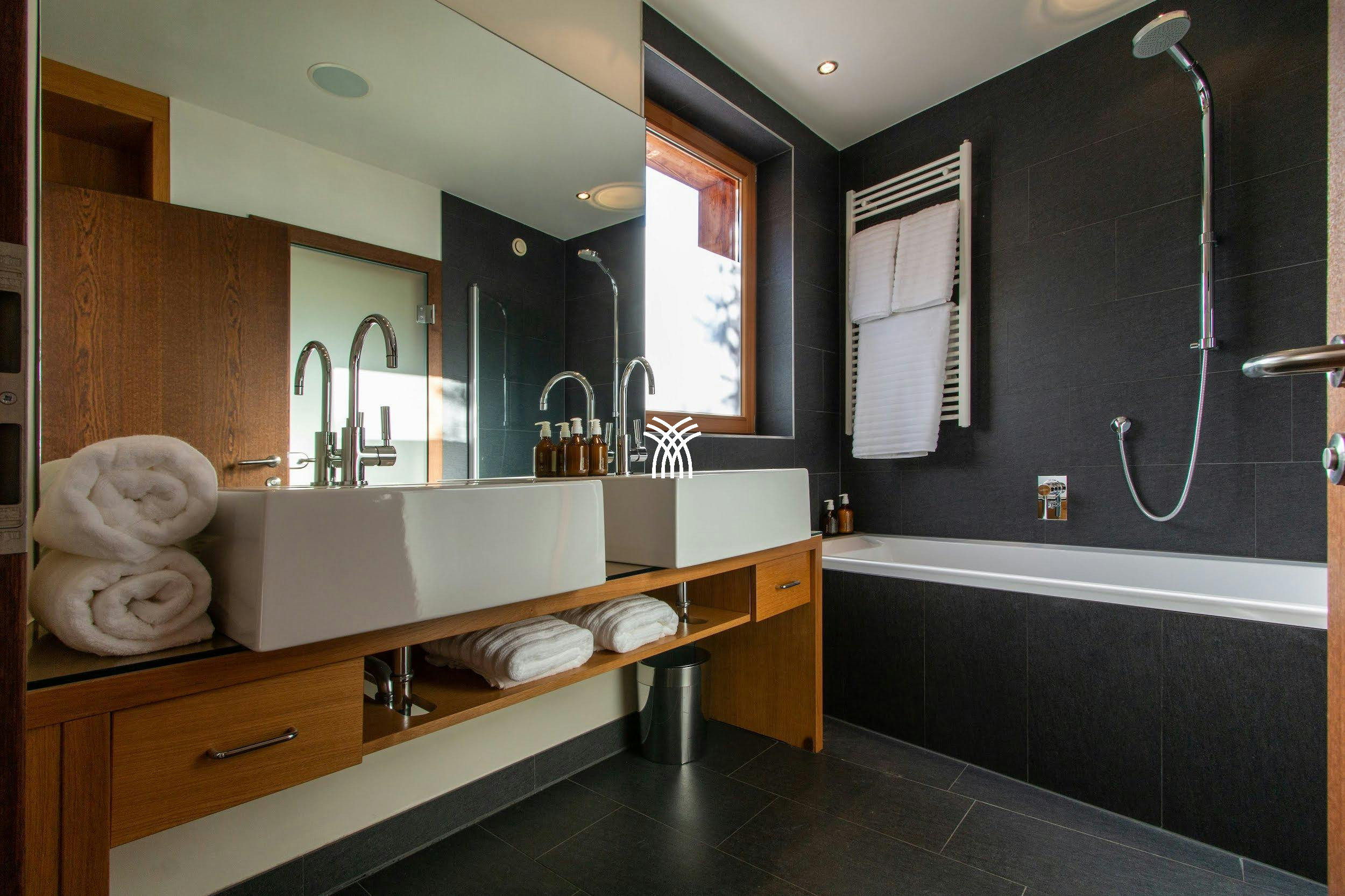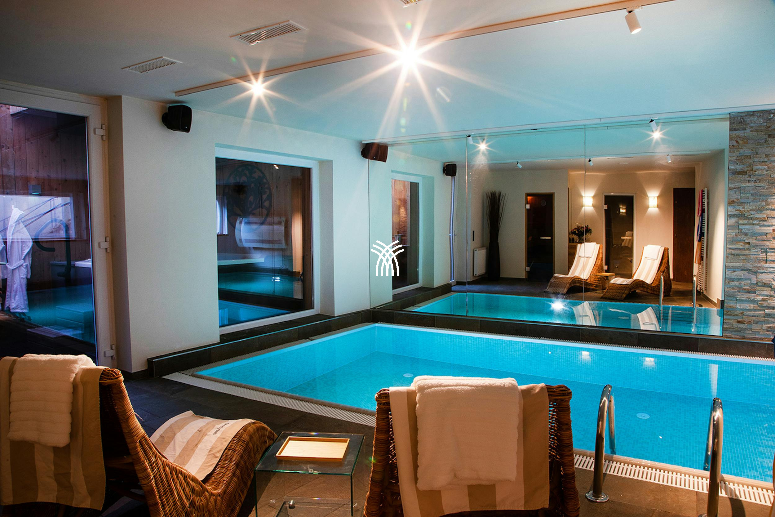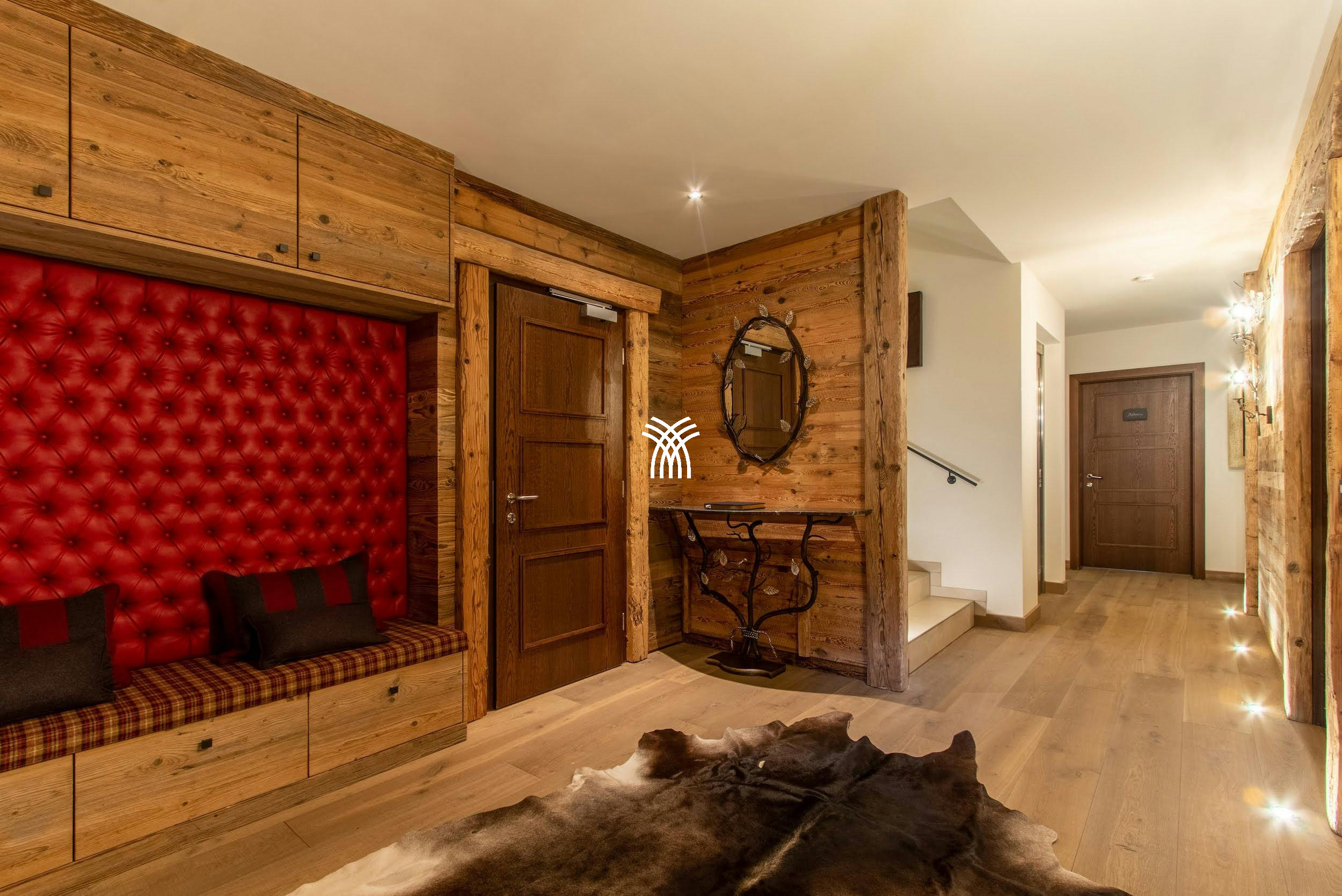 Au niveau du sol, des installations de spa exceptionnelles vous attendent. Profitez d'une piscine de huit mètres, d'une salle humide, d'un sauna, d'un hammam et d'un jacuzzi intérieur, ainsi que d'une salle de traitement privée pour des massages apaisants après une journée sur les pistes. Pour le divertissement, une salle de cinéma privée avec des sièges en velours rouge offre des soirées confortables à l'intérieur.
