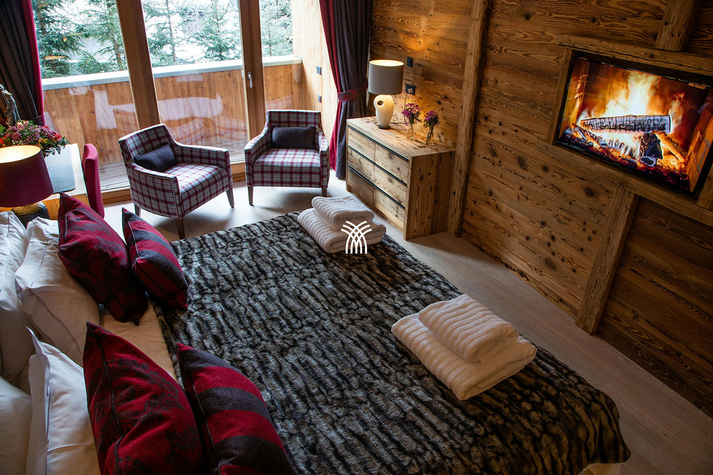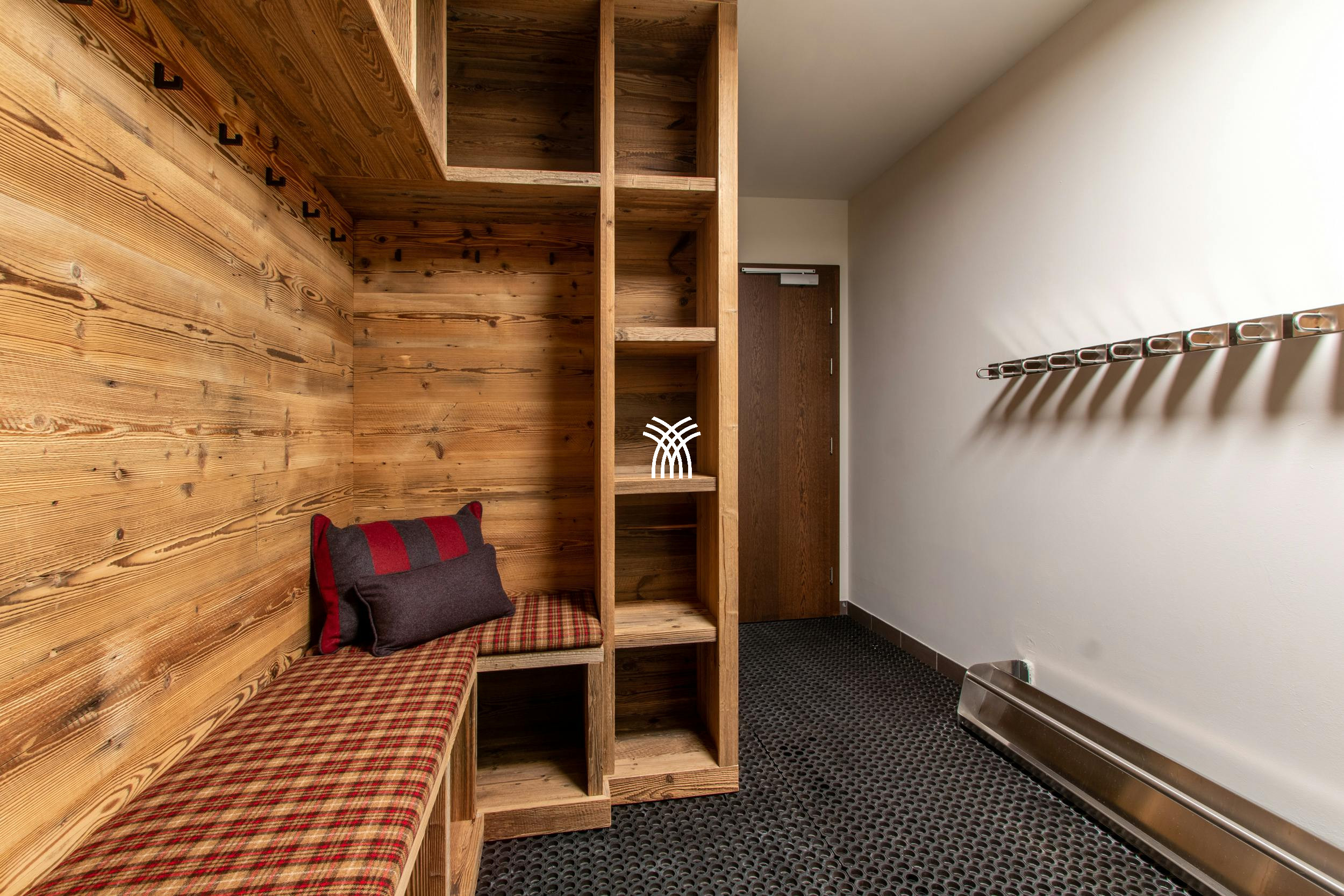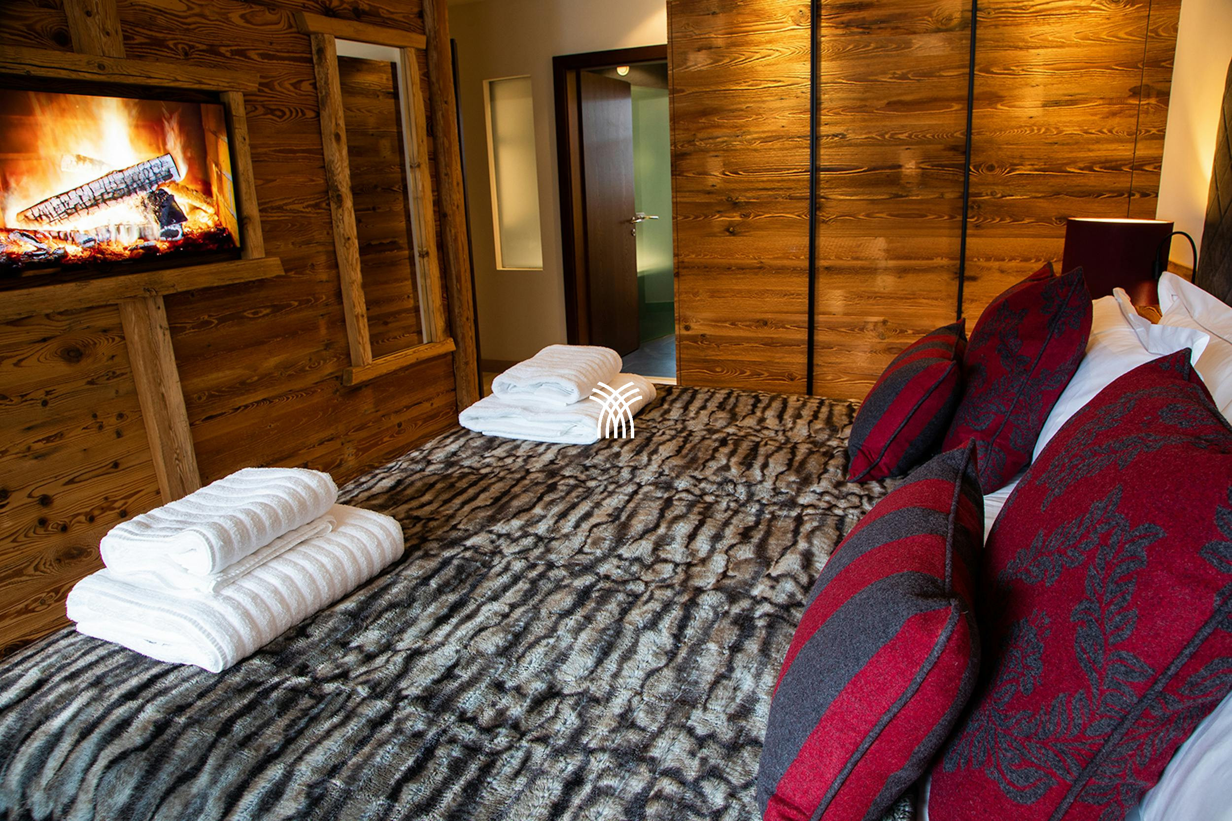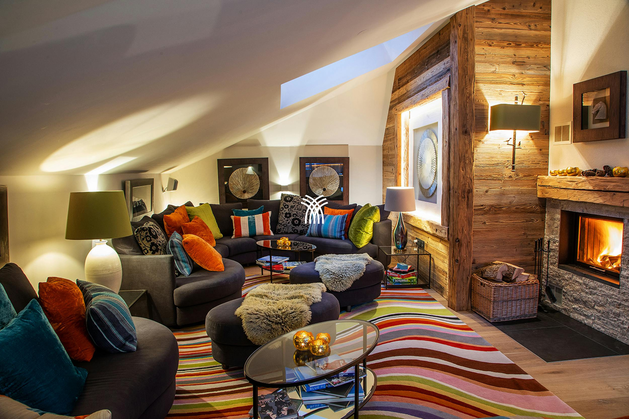 L'étage le plus haut du chalet est dédié à un espace de vie saisissant, où un salon lumineux et ouvert avec des sièges de canapé modulaires se rassemble autour d'un feu de bois ardent. Un espace repas raffiné avec son propre bar et un impressionnant mur de vin crée le cadre parfait pour des soirées mémorables. Sortez sur la terrasse de toit romantique et profitez de vues panoramiques sur les sommets enneigés et les toits pittoresques.
