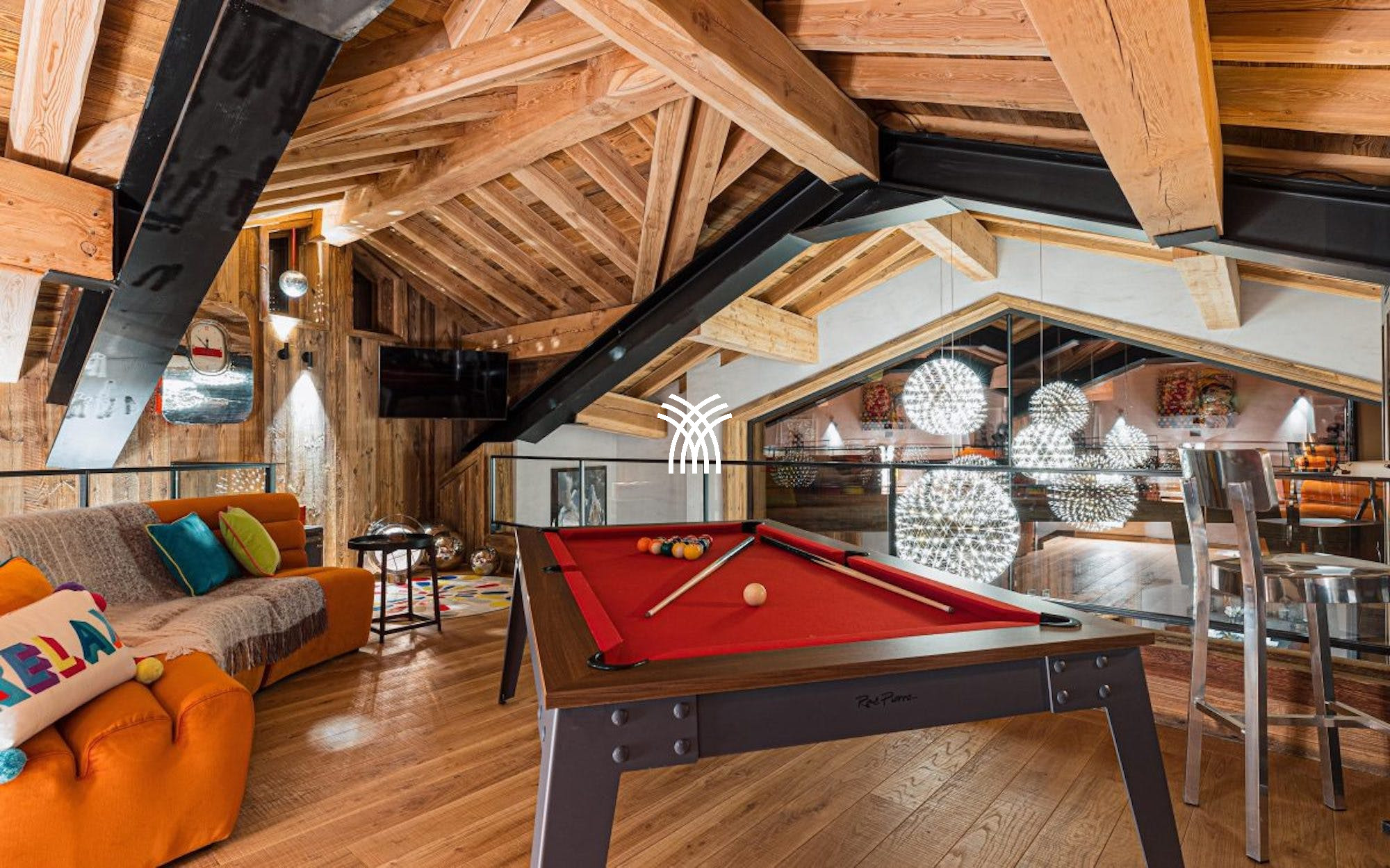 Au niveau inférieur, un spa exceptionnel vous attend. Vous y trouverez une piscine de huit mètres, un sauna, un hammam, un jacuzzi intérieur et une salle de traitement tranquille offrant un sanctuaire de détente et de bien-être. Après une journée sur les pistes, retirez-vous dans la salle de cinéma privée, dotée de sièges en velours moelleux pour une expérience vraiment indulgente.