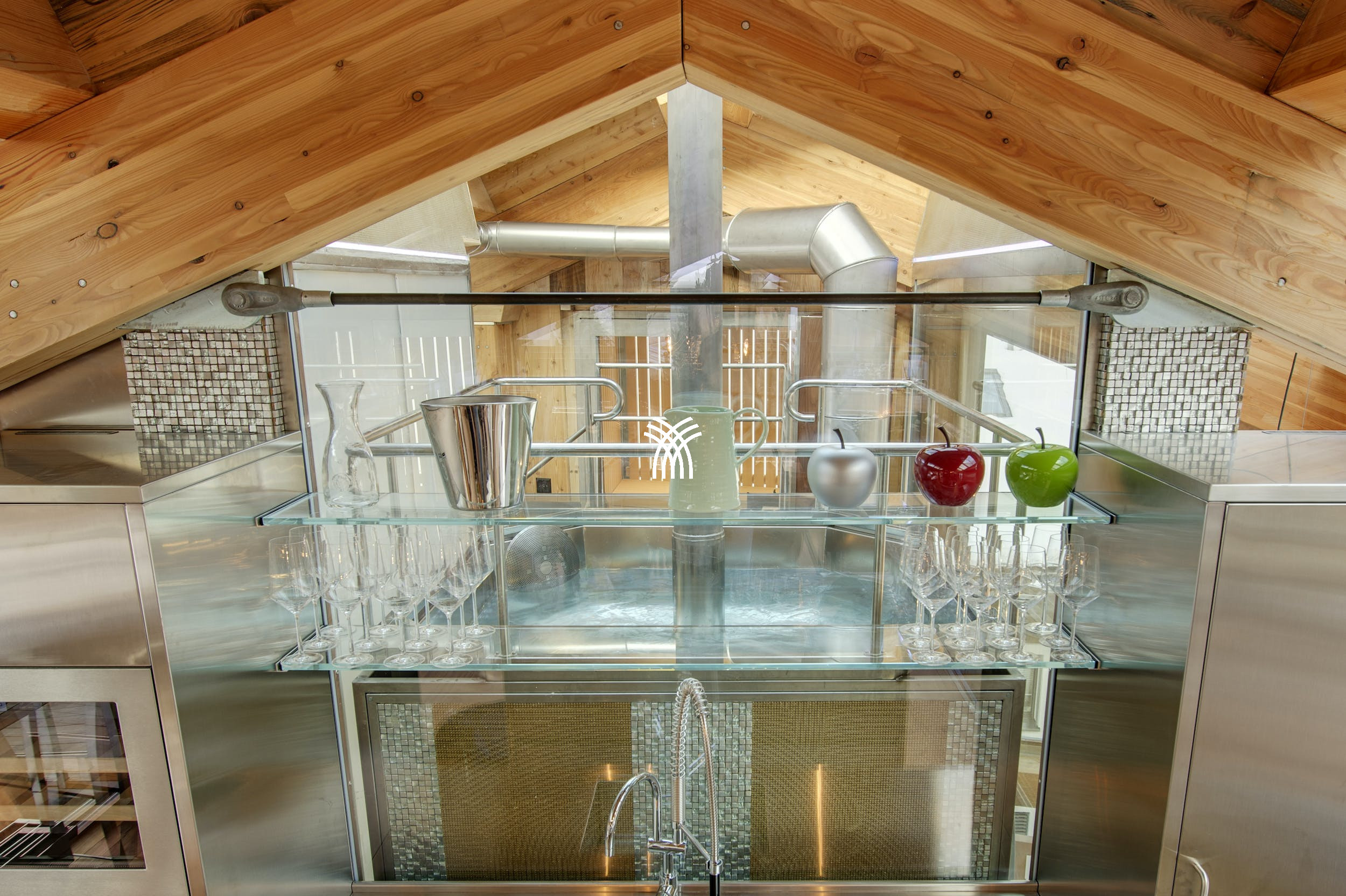 Le joyau couronnant du Chalet Sapphire est son extraordinaire jacuzzi sur le toit — un chef-d'œuvre d'ingénierie sans égal au monde. Pouvant accueillir jusqu'à six invités, cette piscine luxueuse s'élève hydrauliquement au-dessus du toit au simple toucher d'un bouton, révélant un panorama sans pareil de sommets enneigés. Depuis ce point de vue surélevé, les vues panoramiques des Alpes créent une expérience inoubliable.