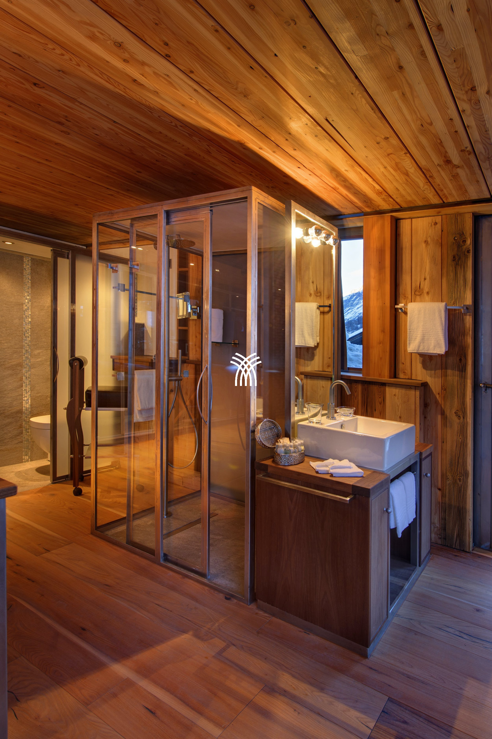 Ce chalet de luxe exceptionnel dans les Alpes suisses allie tradition intemporelle et sophistication moderne. Originellement une maison valaisanne des années 1940, le Chalet Sapphire a été transformé par ses propriétaires avec l'ajout de deux étages contemporains tout en préservant son charme alpin authentique. Le bois de mélèze local et les immenses parois vitrées encadrent des vues à 360 degrés à couper le souffle sur le village et l'emblématique Cervin, immergeant les invités dans la beauté naturelle de Zermatt.