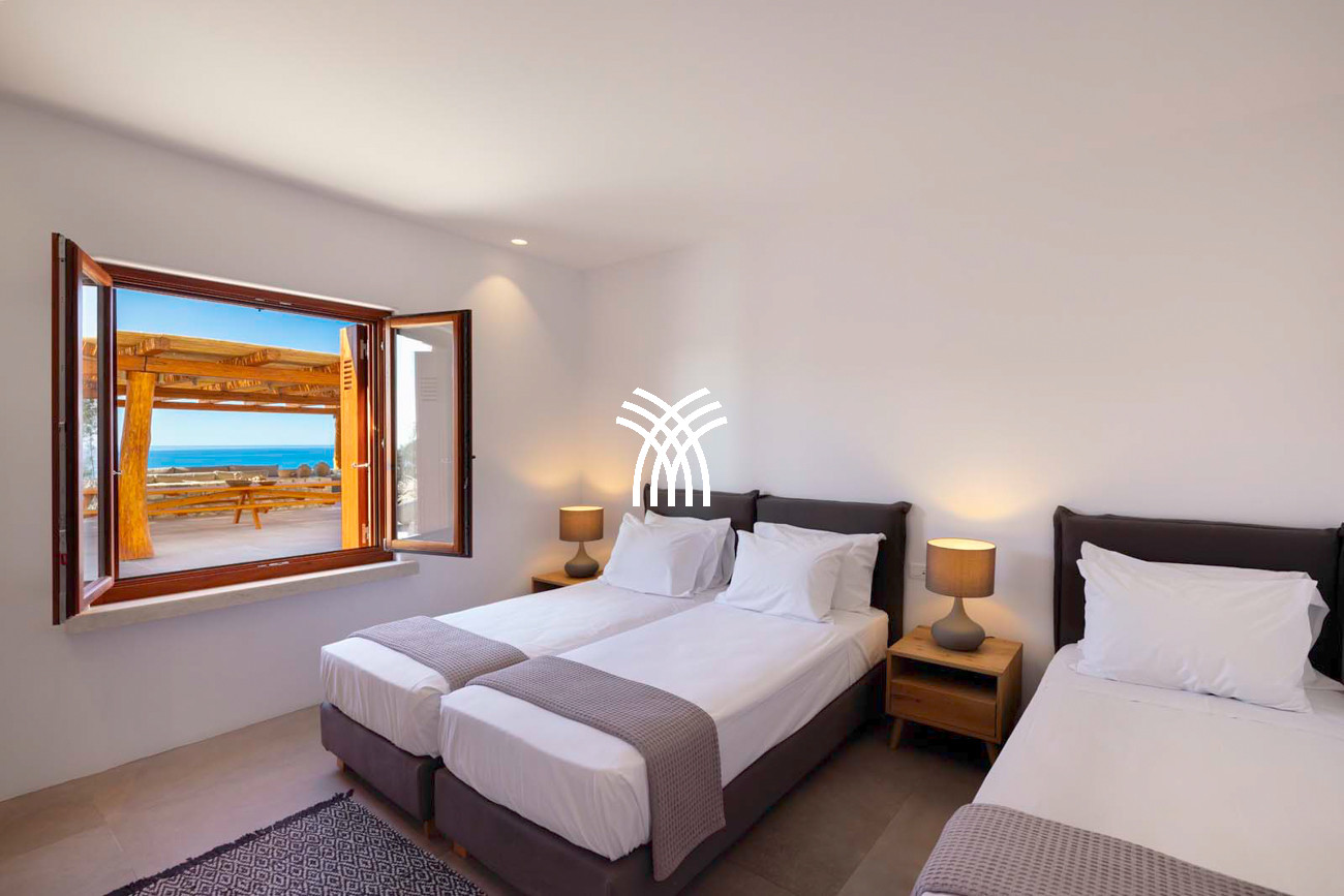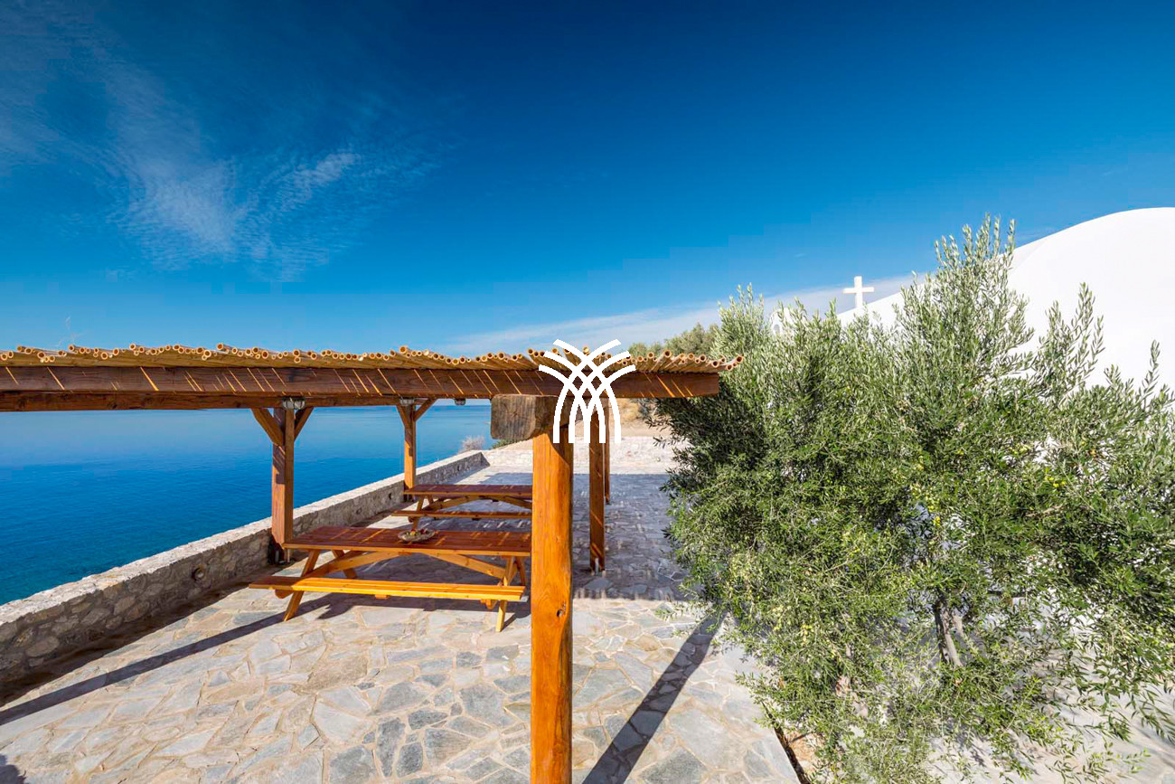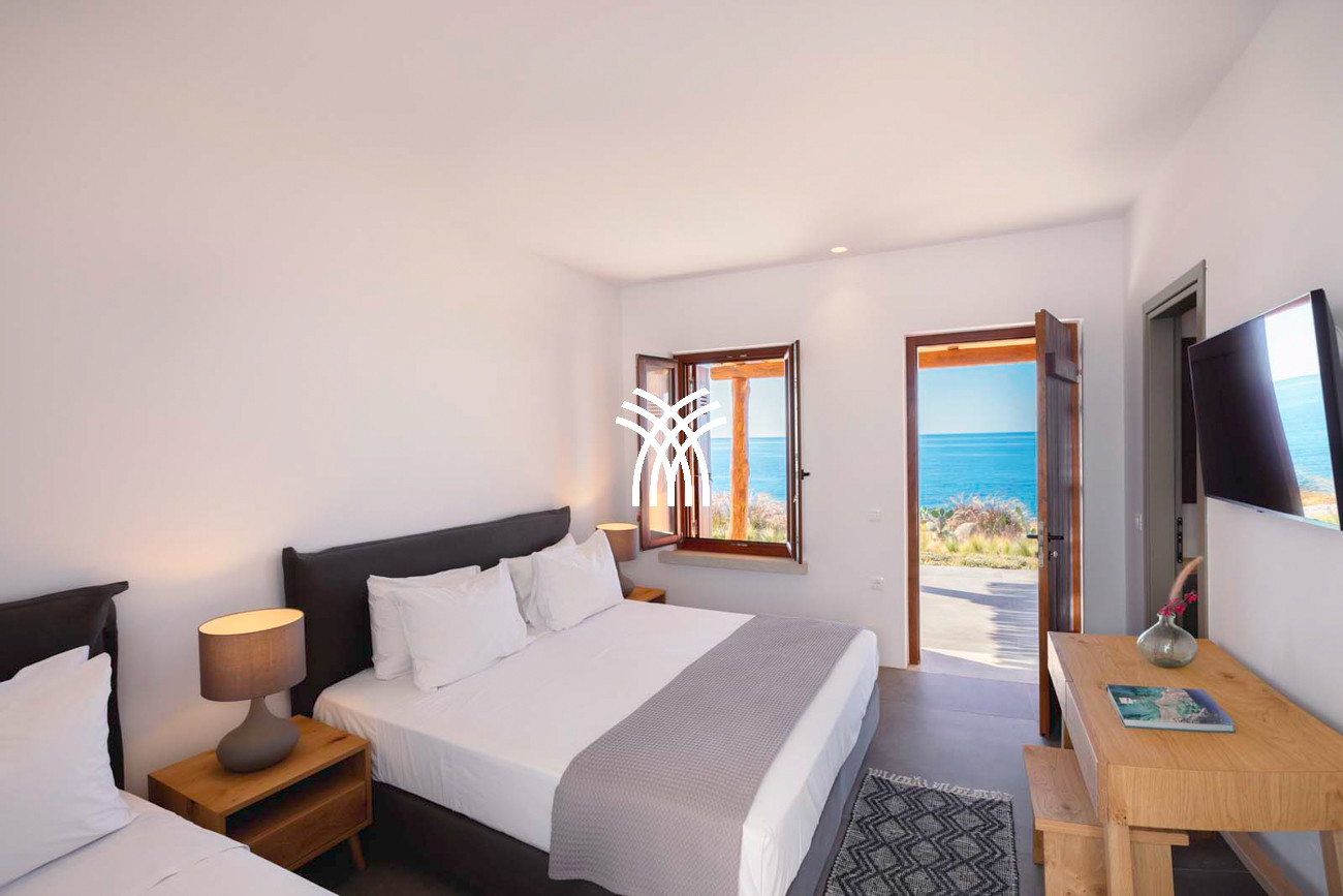 À quelques pas seulement de la plage, cette villa de luxe en bord de mer dévoile des vues ininterrompues sur l’horizon et l’océan, dans un silence absolu seulement rythmé par le ressac des vagues. L’arrivée à la propriété est déjà une expérience en soi : un chemin sinueux traverse une ancienne oliveraie, longe une chapelle dédiée à Saint Dimitrios et mène progressivement vers un promontoire naturel dominant un récif aux nuances turquoise et une plage de sable intacte, révélant peu à peu ce refuge hors du temps .
