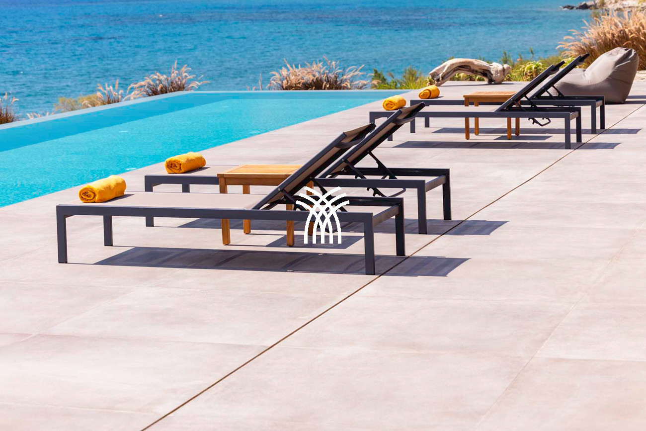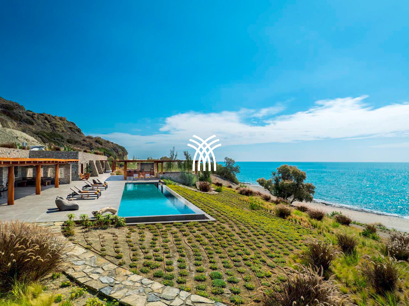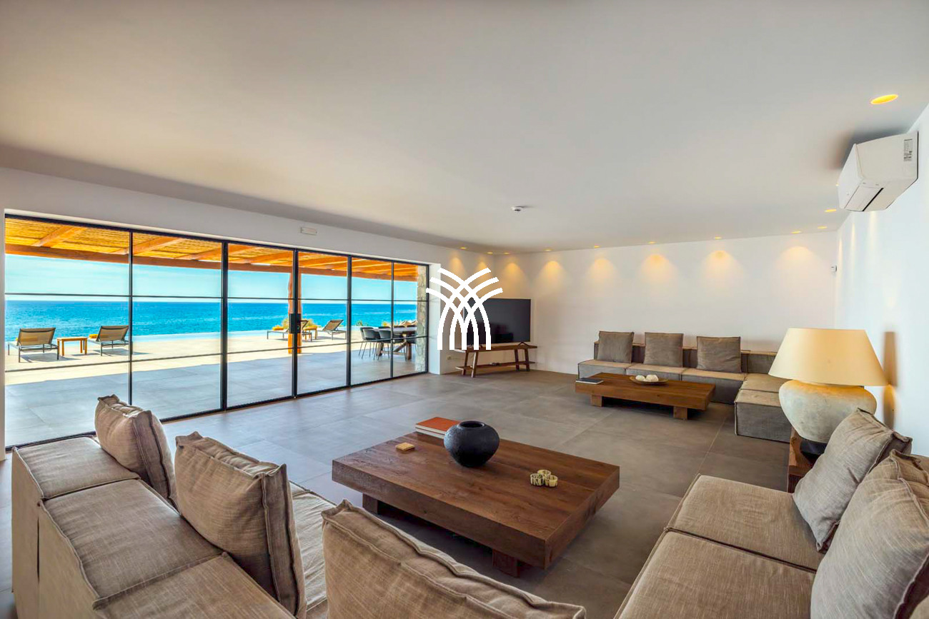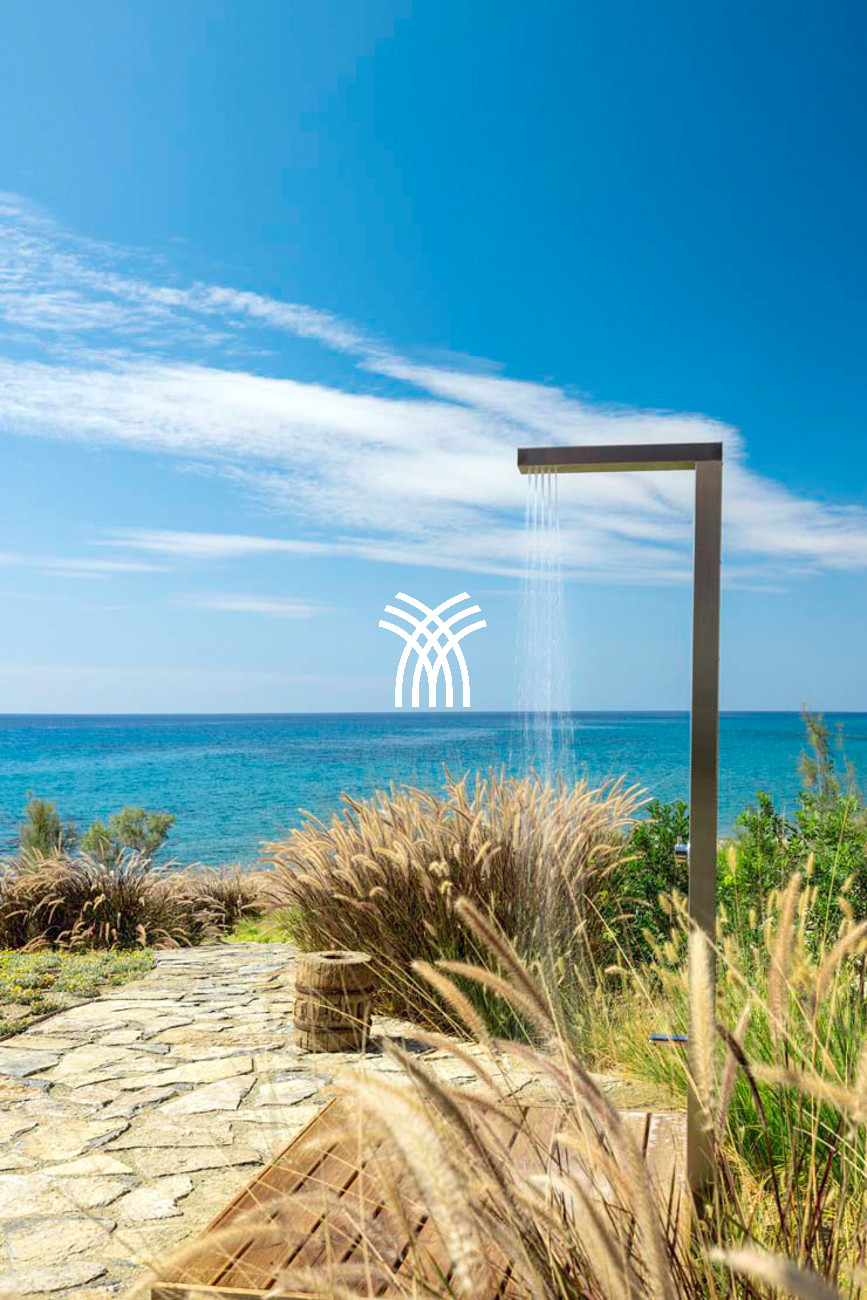Les espaces de vie extérieurs constituent le véritable cœur de la propriété. Une grande pergola principale accueille des espaces de repas en plein air et un salon intégré, faisant face à la mer et à la piscine à débordement de 22 mètres, qui semble se fondre dans l’horizon. Une seconde pergola, dédiée à la cuisine extérieure et au barbecue, prolonge les moments de convivialité dans un cadre spectaculaire, tandis qu’un accès privé mène directement à la plage et à une pergola aménagée en bord de mer .