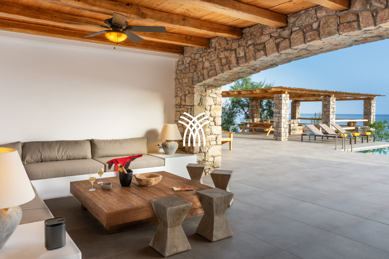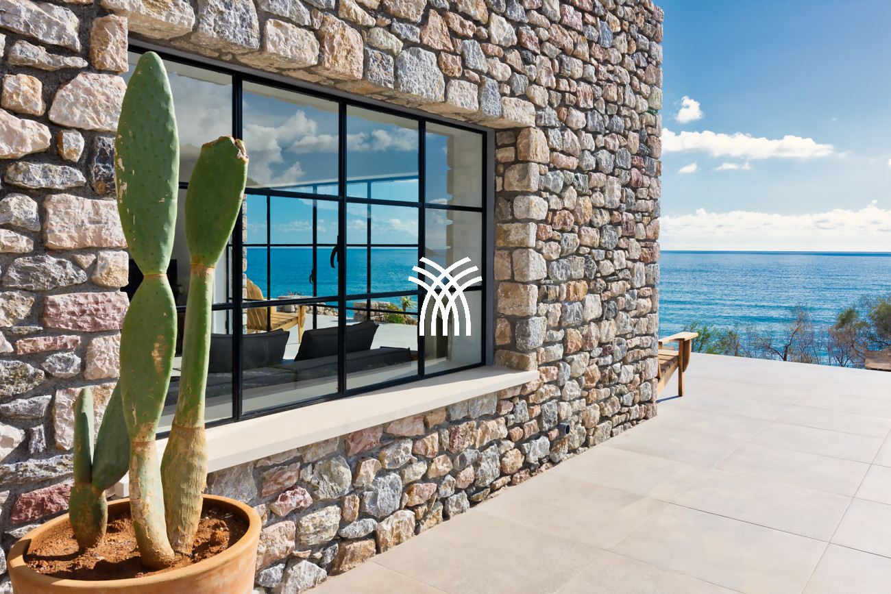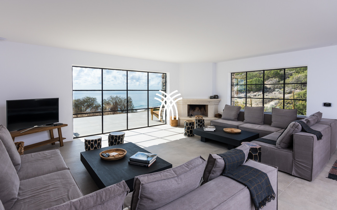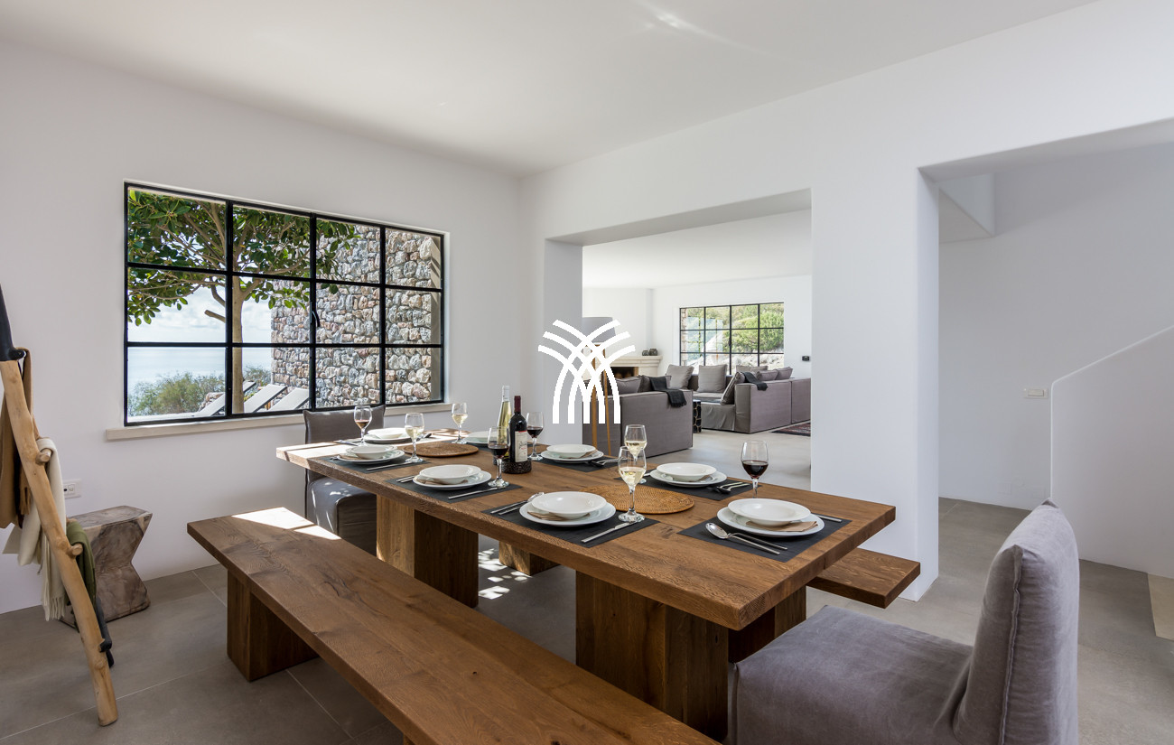 À quelques pas seulement de la plage, cette villa de luxe en bord de mer dévoile des vues ininterrompues sur l’horizon et l’océan, dans un silence absolu seulement rythmé par le ressac des vagues. L’arrivée à la propriété est déjà une expérience en soi : un chemin sinueux traverse une ancienne oliveraie, longe une chapelle dédiée à Saint Dimitrios et mène progressivement vers un promontoire naturel dominant un récif aux nuances turquoise et une plage de sable intacte, révélant peu à peu ce refuge hors du temps .