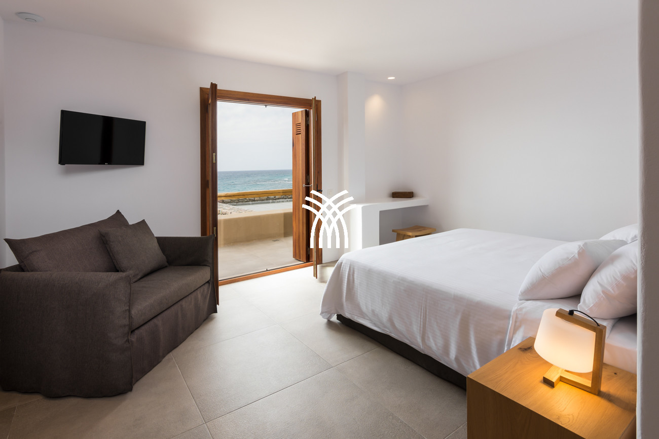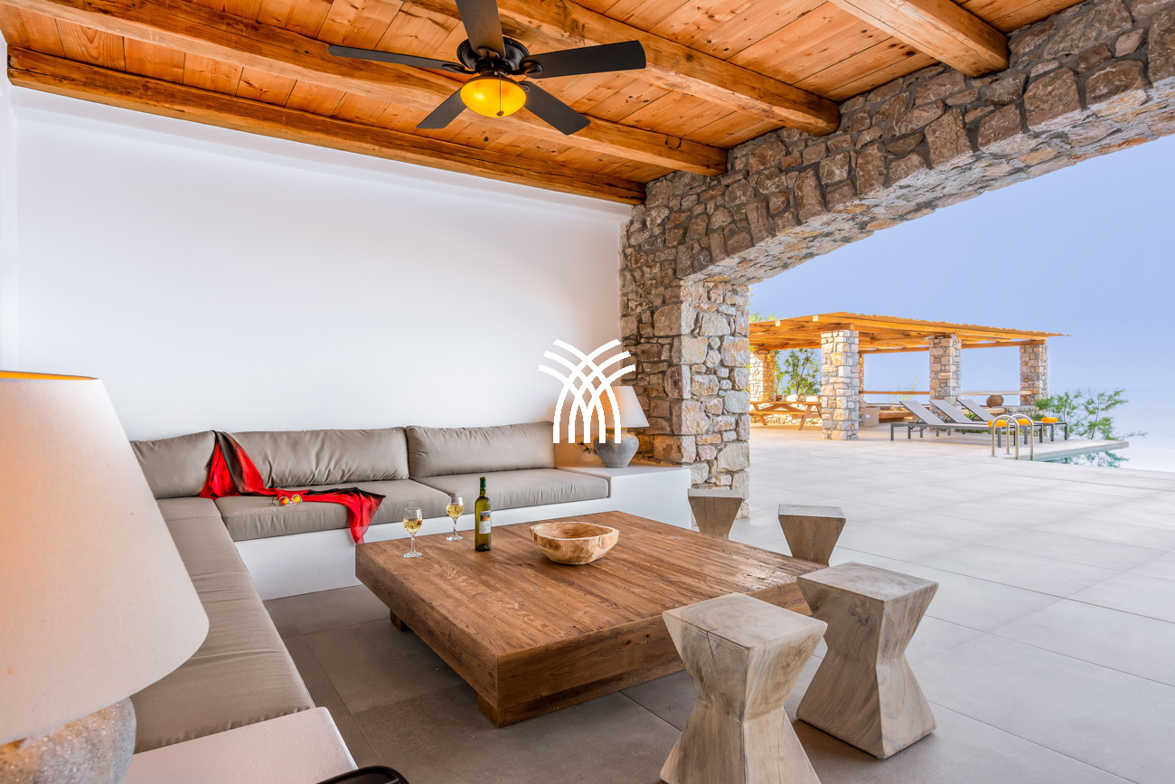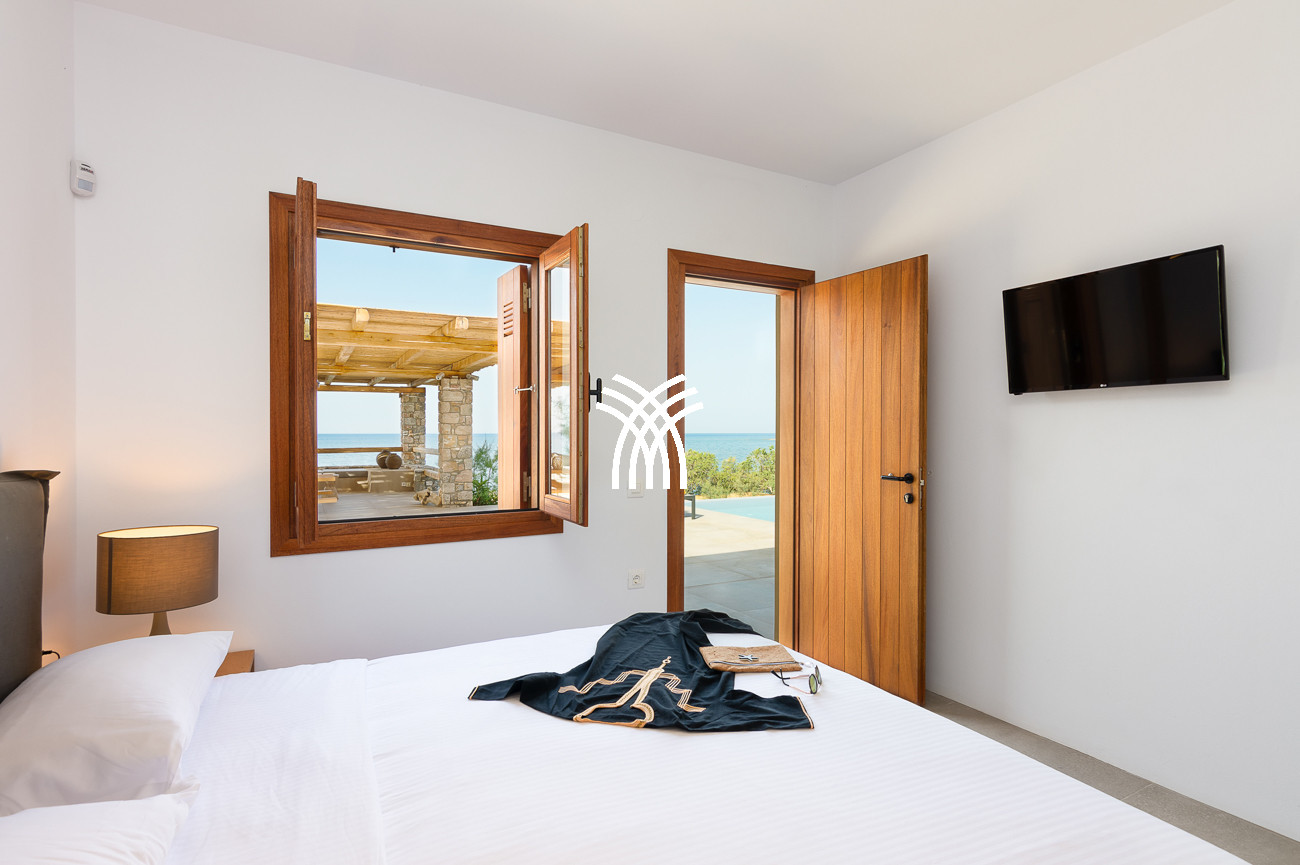 À quelques pas seulement de la plage, cette villa de luxe en bord de mer dévoile des vues ininterrompues sur l’horizon et l’océan, dans un silence absolu seulement rythmé par le ressac des vagues. L’arrivée à la propriété est déjà une expérience en soi : un chemin sinueux traverse une ancienne oliveraie, longe une chapelle dédiée à Saint Dimitrios et mène progressivement vers un promontoire naturel dominant un récif aux nuances turquoise et une plage de sable intacte, révélant peu à peu ce refuge hors du temps .