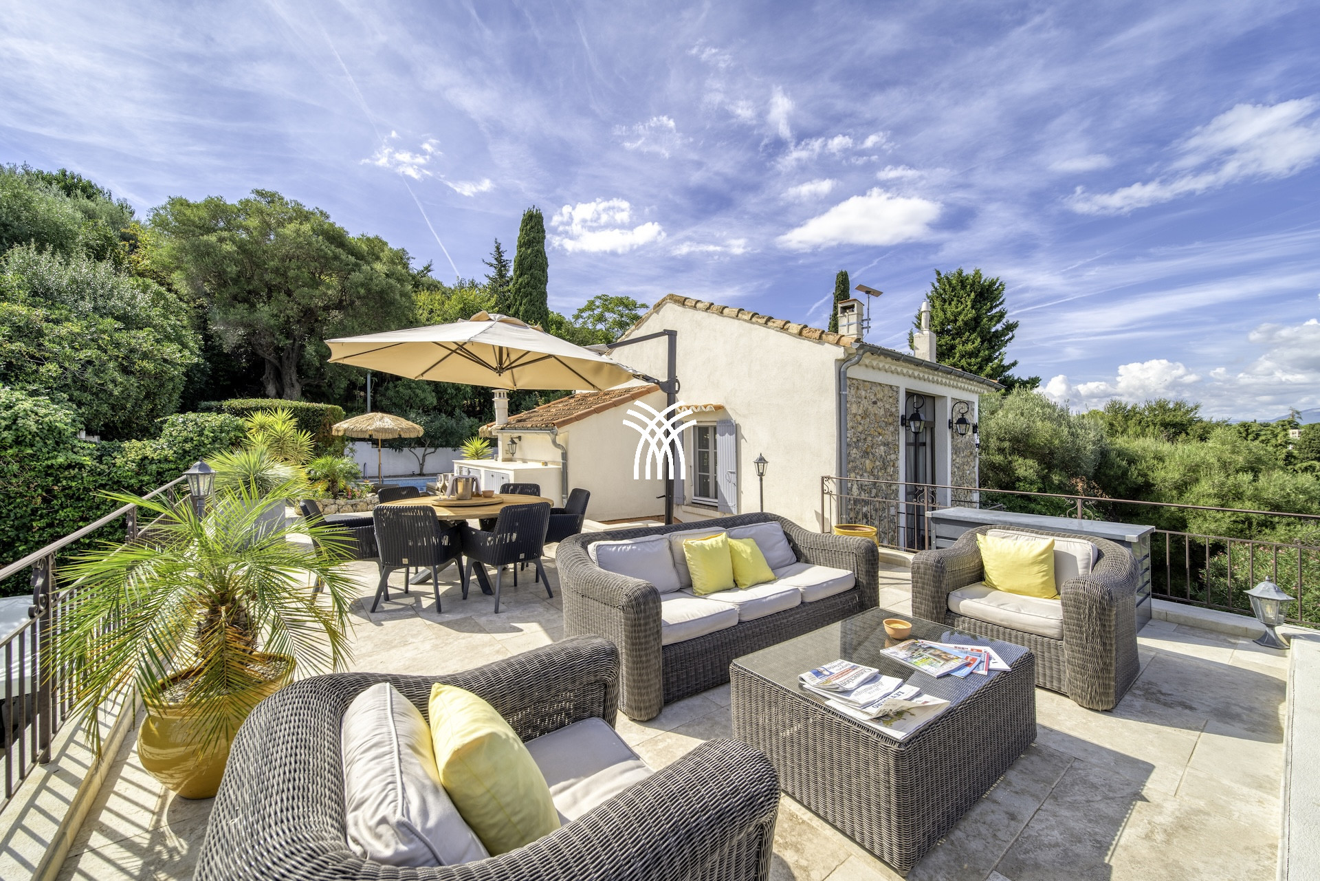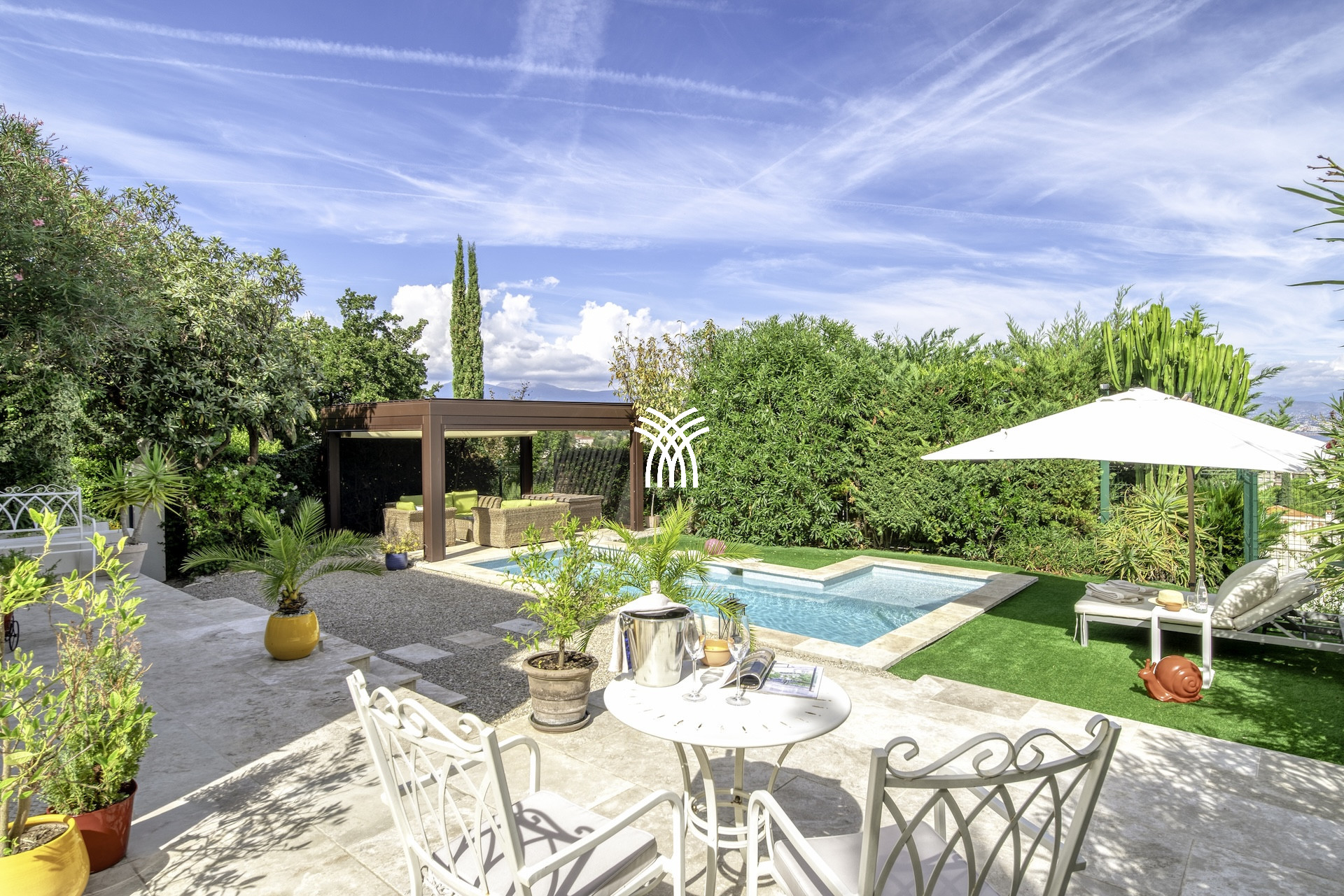 Les espaces extérieurs, parfaitement paysagés, prolongent cette sensation d'exclusivité propre aux plus grandes demeures de la Côte d'Azur. Deux piscines chauffées, un pool house élégant, de vastes terrasses aménagées et plusieurs espaces de réception en plein air composent un véritable sanctuaire dédié à la détente et à la convivialité. Pergolas ombragées et aménagements raffinés permettent de savourer chaque instant, du lever au coucher du soleil.