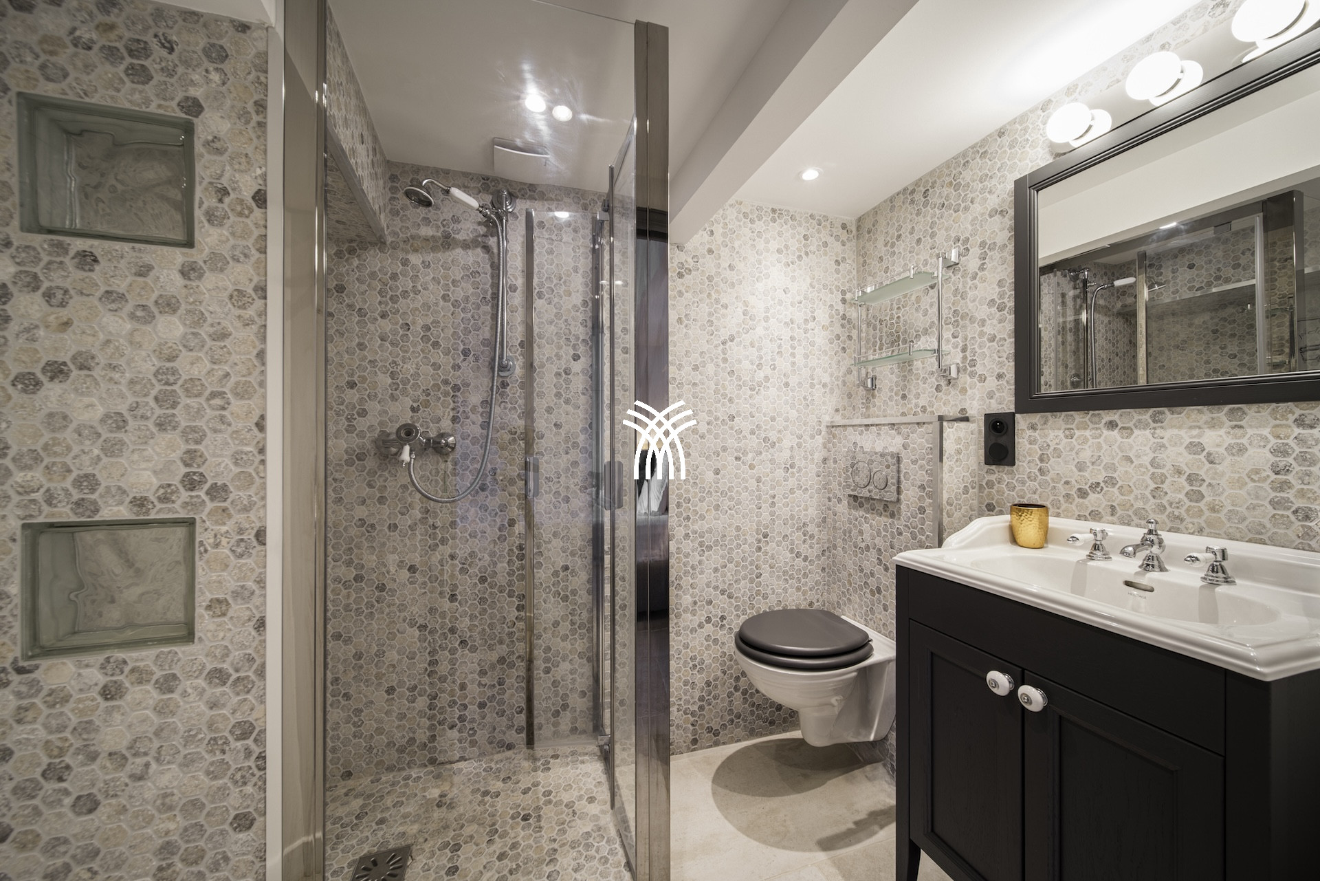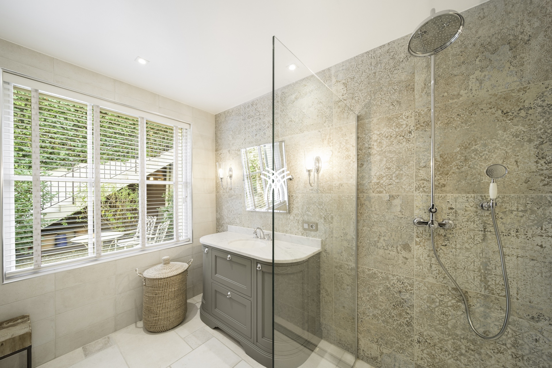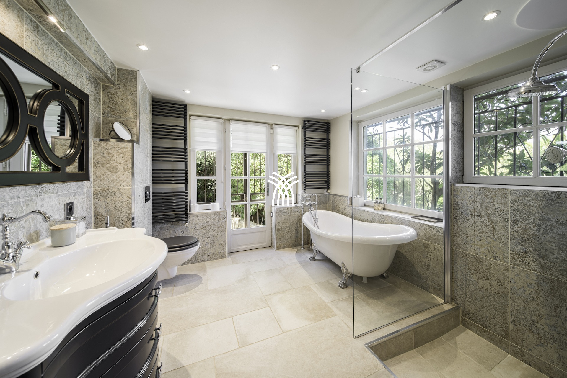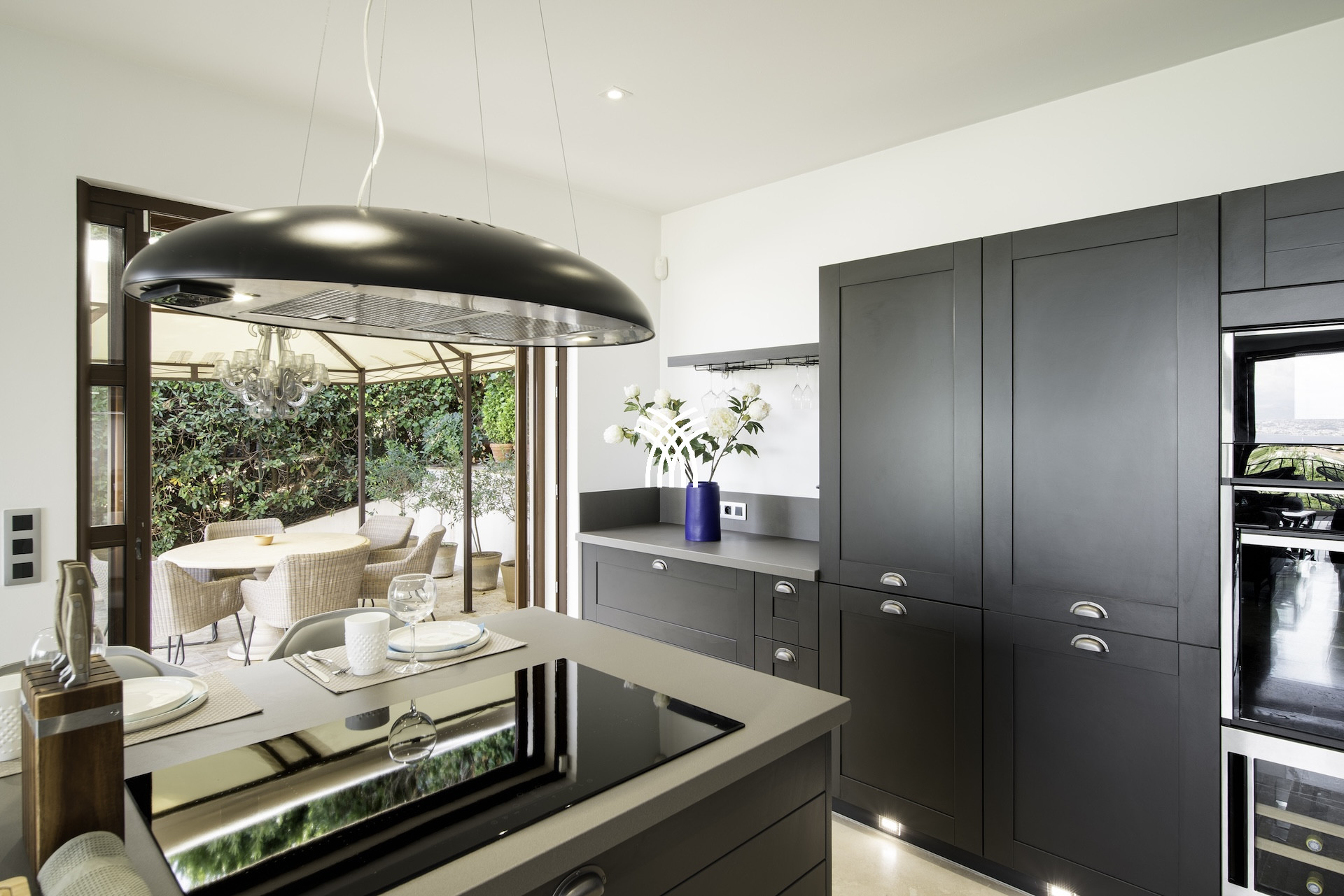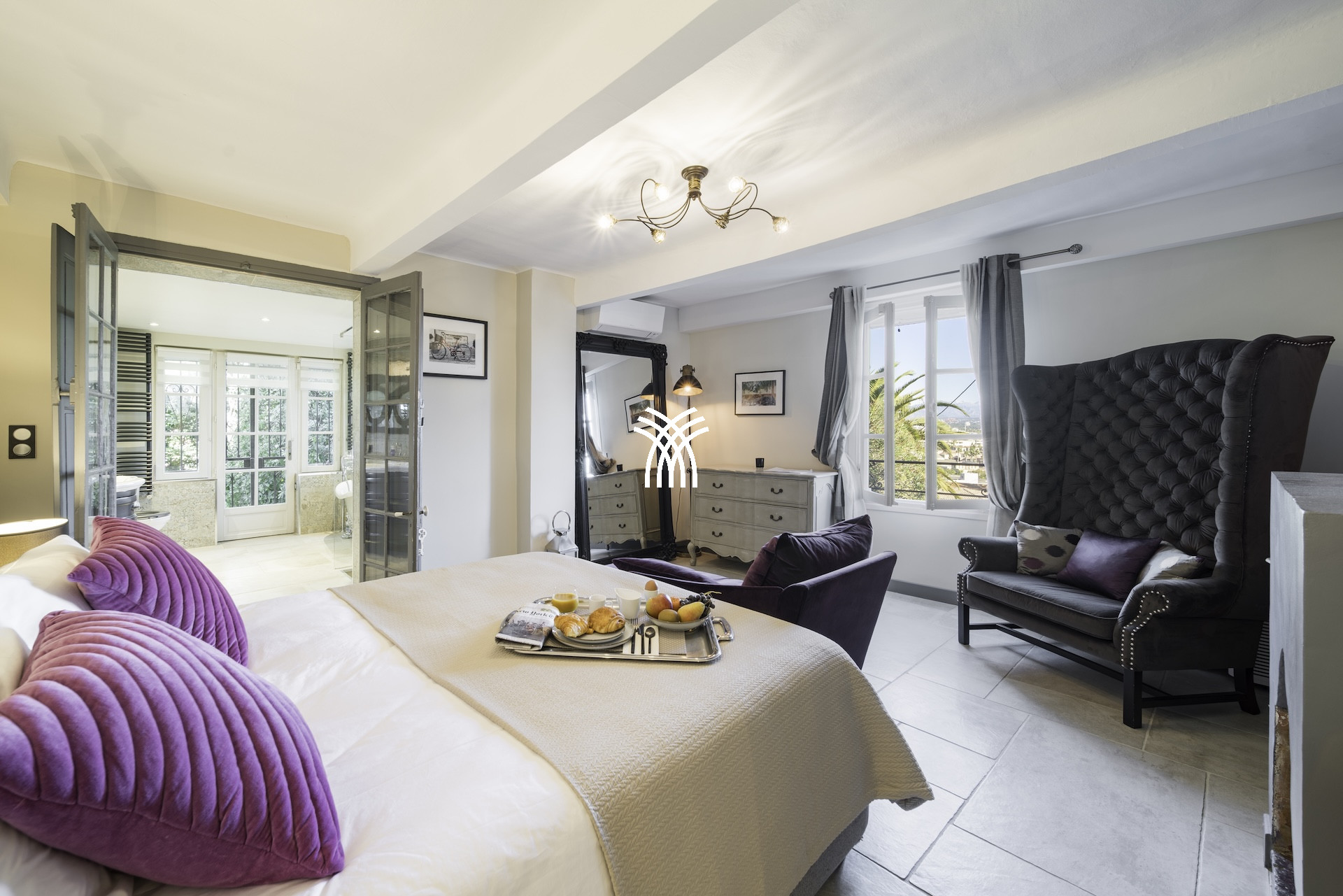 Derrière ses façades en pierres anciennes, la Villa Mayflower dévoile des volumes généreux et une mise en scène intérieure d'une grande sophistication. Le vaste espace de réception, baigné de lumière naturelle, s'ouvre harmonieusement sur les extérieurs grâce à d'imposantes baies vitrées, créant une continuité fluide entre intérieur et paysage méditerranéen. Les matériaux nobles, le mobilier choisi avec soin et les finitions sur mesure confèrent à l'ensemble une signature élégante et intemporelle, à la hauteur des exigences d'une clientèle internationale en quête d'une location de prestige à Antibes.