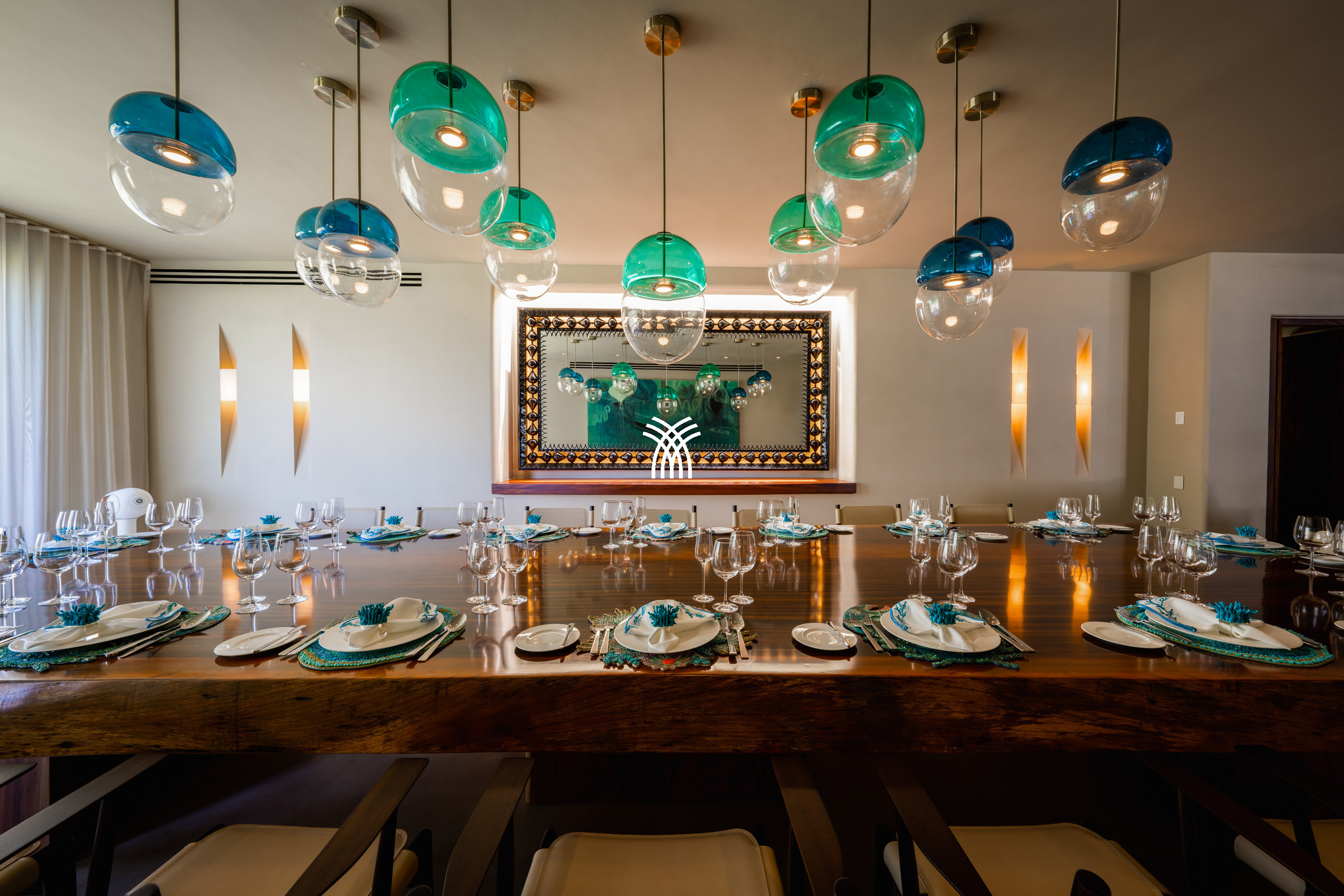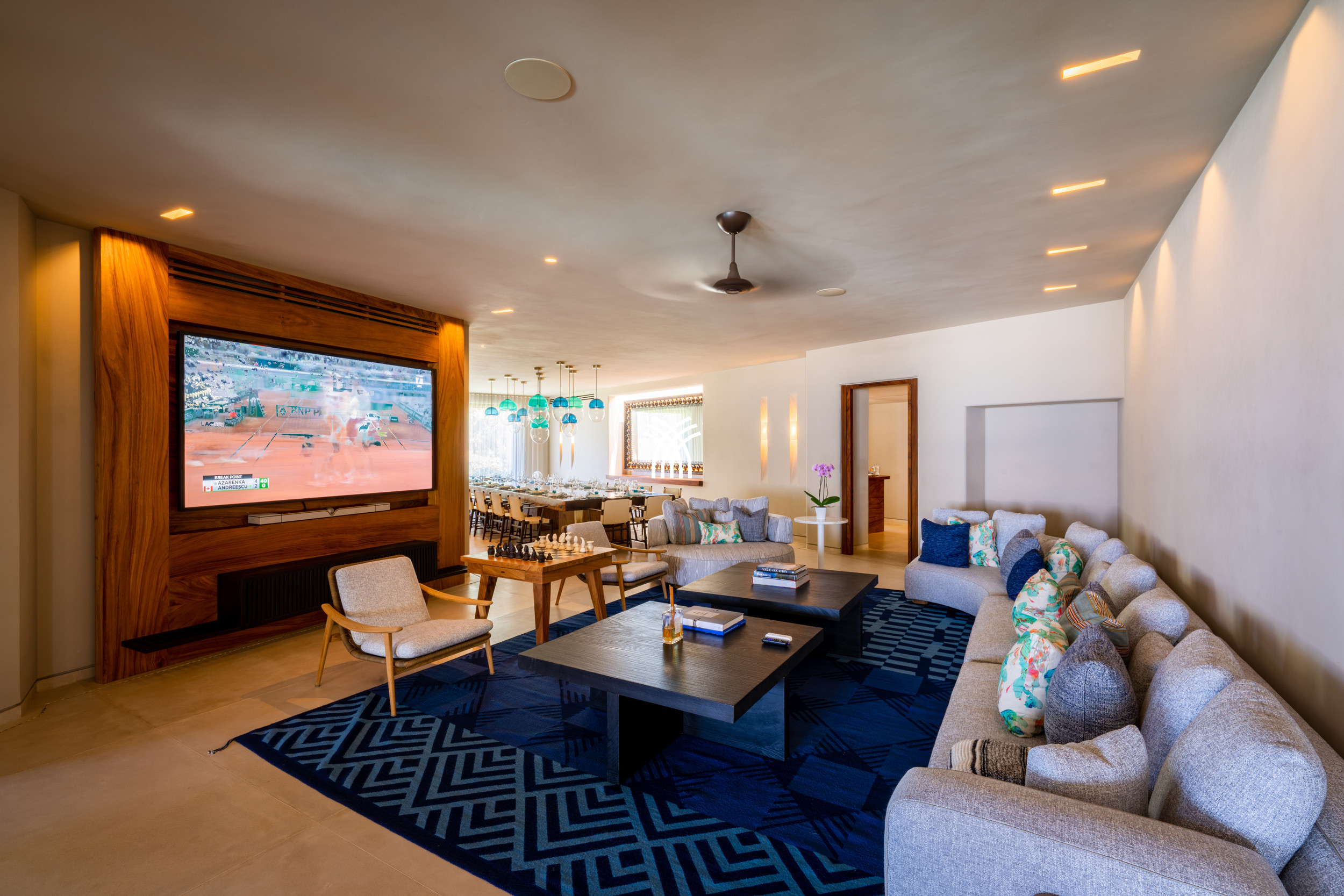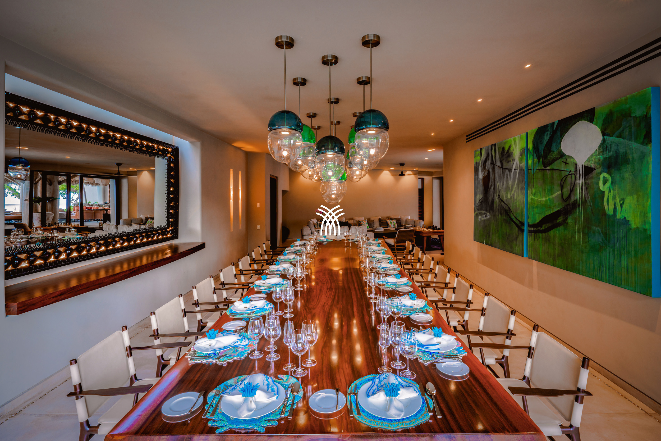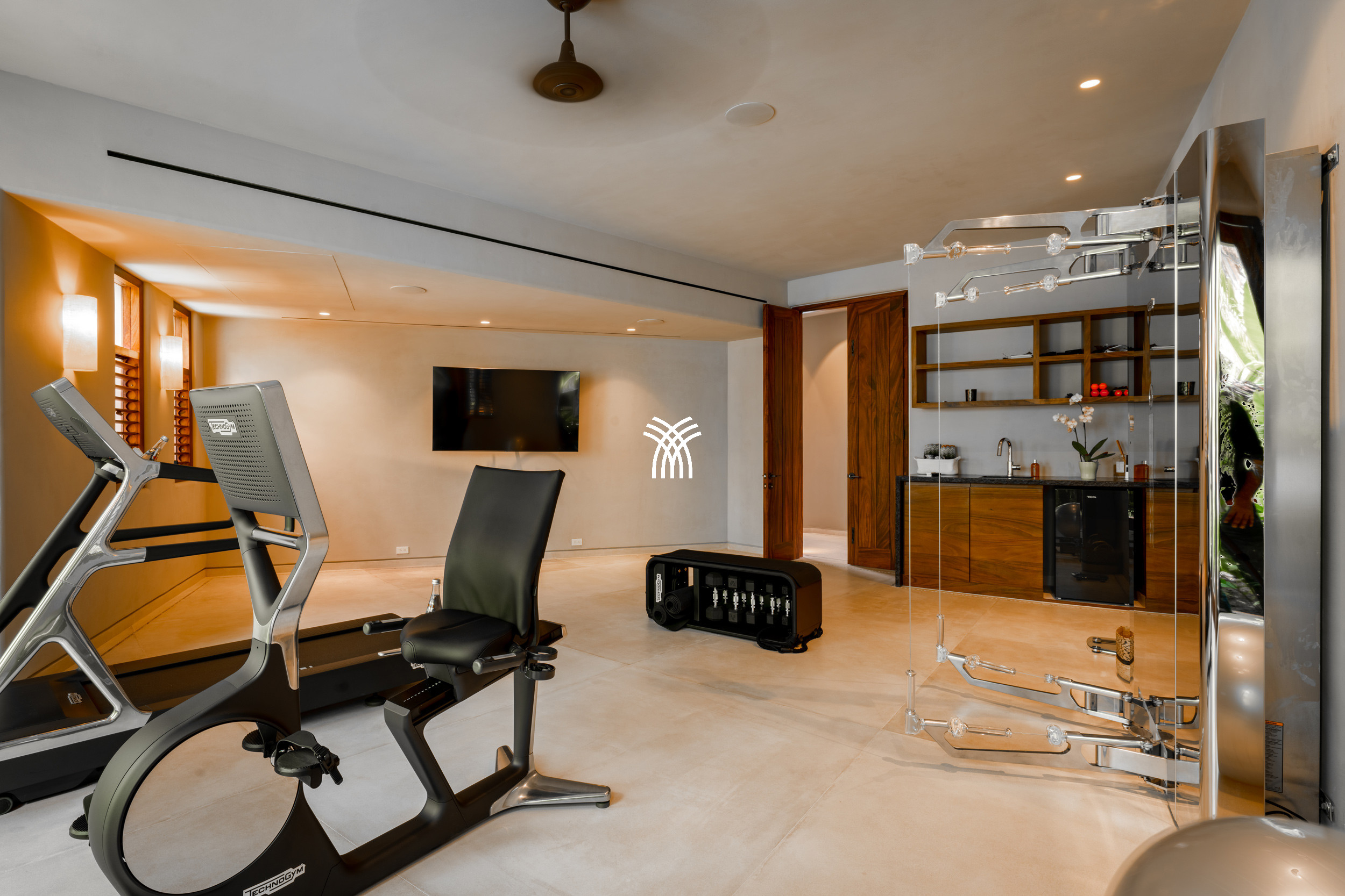 Les installations d'AKAMÁ sont incomparables, avec une salle de cinéma privée équipée de la technologie Dolby Atmos, un spa privé, et une salle de sport moderne avec les équipements Technogym. Les espaces de détente incluent une grande salle à manger intérieure pouvant accueillir 18 personnes, une terrasse en plein air sous une Grand Palapa, un bar, ainsi qu’un Skybar sur le toit pour admirer les couchers de soleil.