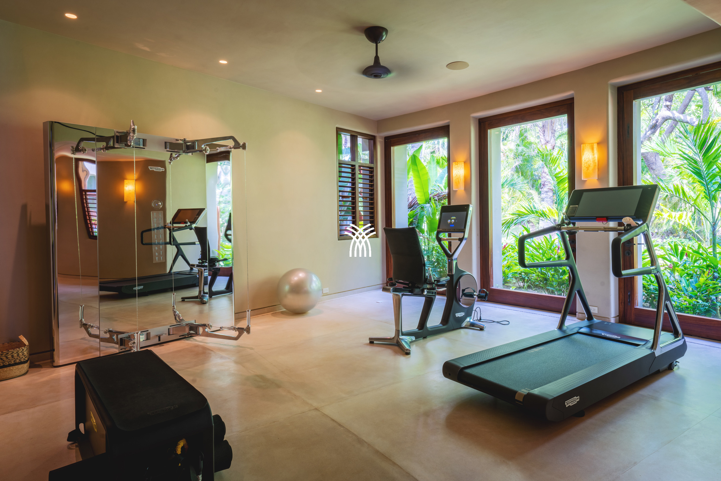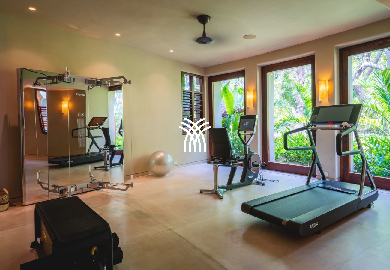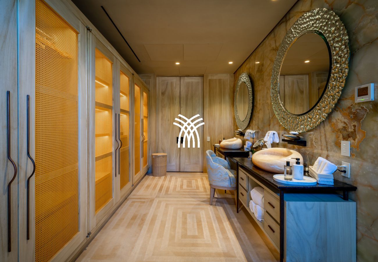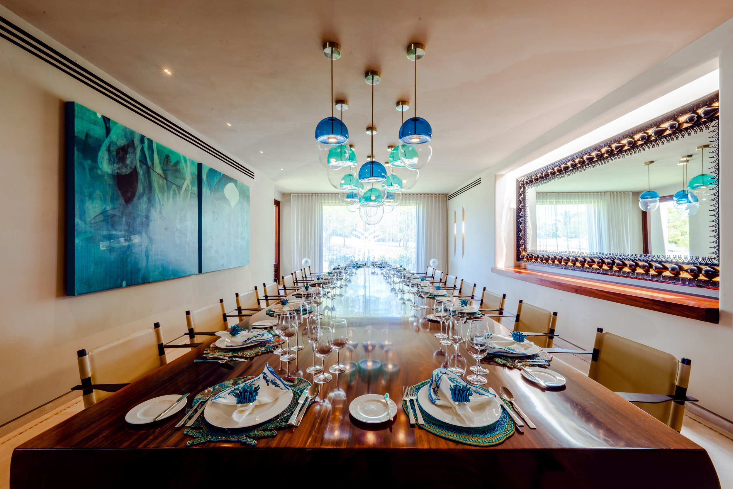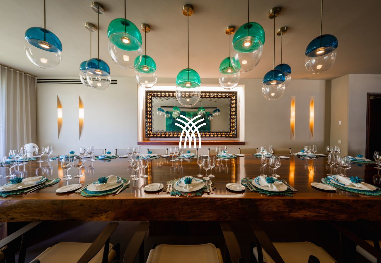 Les installations d'AKAMÁ sont incomparables, avec une salle de cinéma privée équipée de la technologie Dolby Atmos, un spa privé, et une salle de sport moderne avec les équipements Technogym. Les espaces de détente incluent une grande salle à manger intérieure pouvant accueillir 18 personnes, une terrasse en plein air sous une Grand Palapa, un bar, ainsi qu’un Skybar sur le toit pour admirer les couchers de soleil.