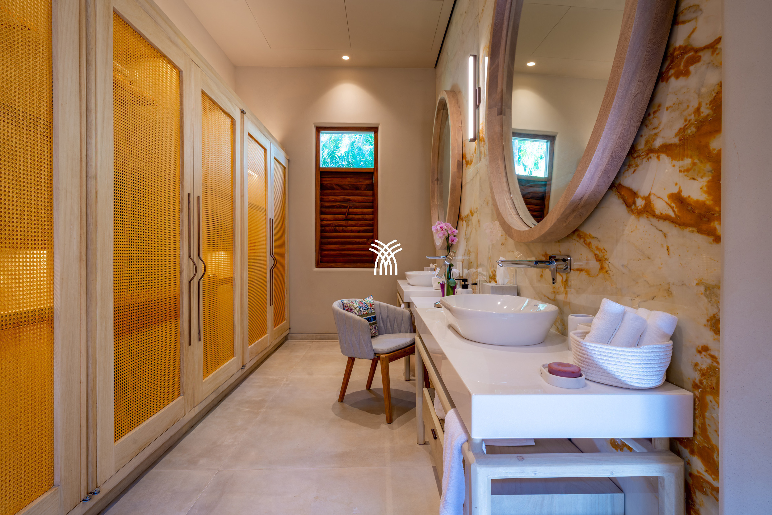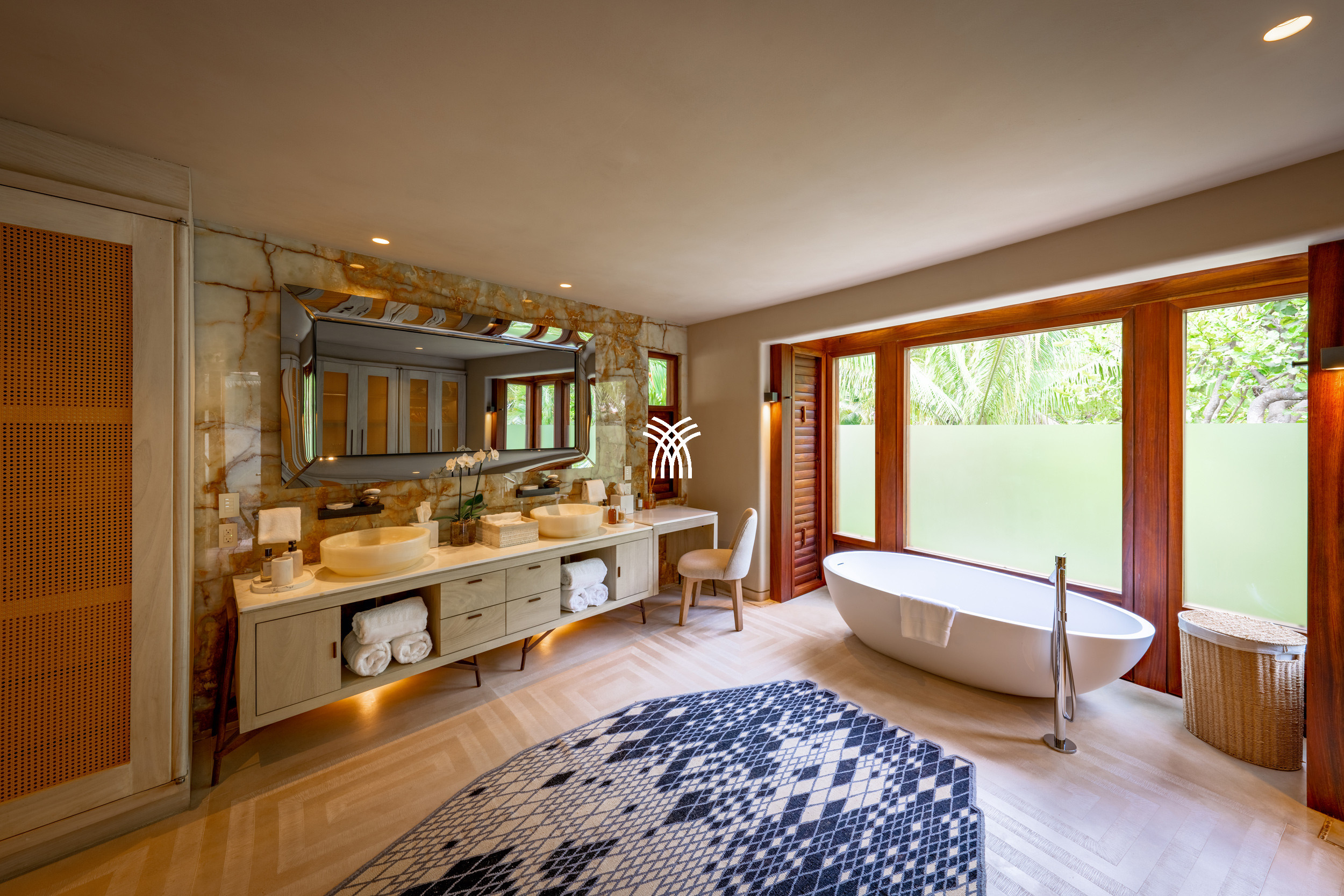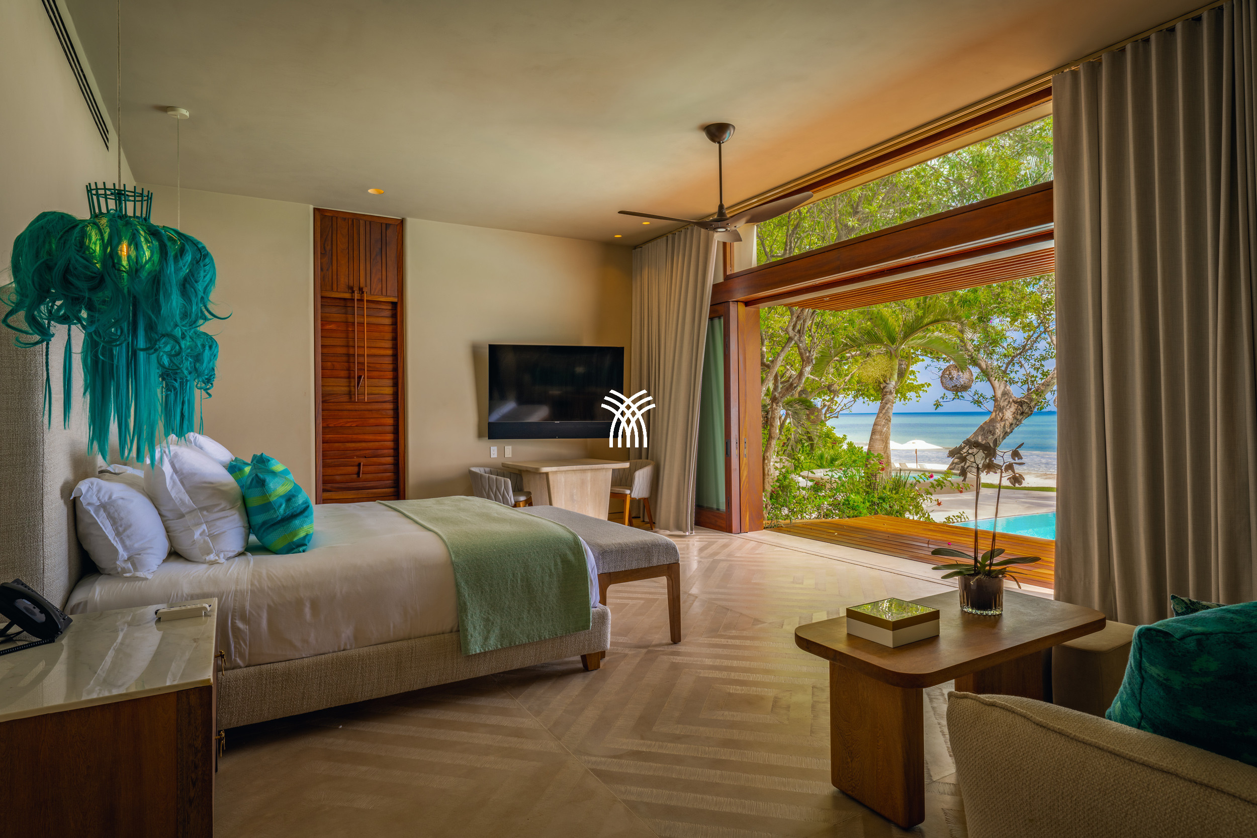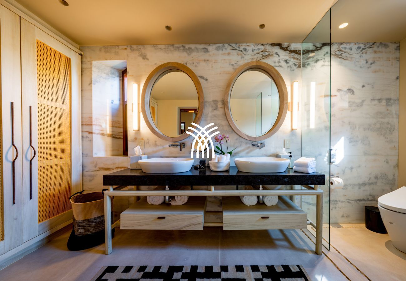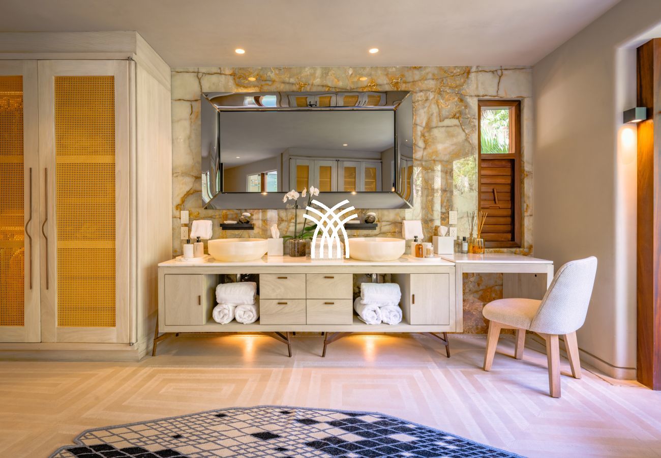 La propriété s'étend sur 2 hectares et comprend 9 suites somptueuses, dont 4 suites principales avec vue directe sur l'océan. Chacune des 5 chambres supplémentaires est équipée de la technologie la plus moderne, avec des lits signature Four Seasons, des téléviseurs intelligents, un système audio Sonos, ainsi qu'une station de café et thé.