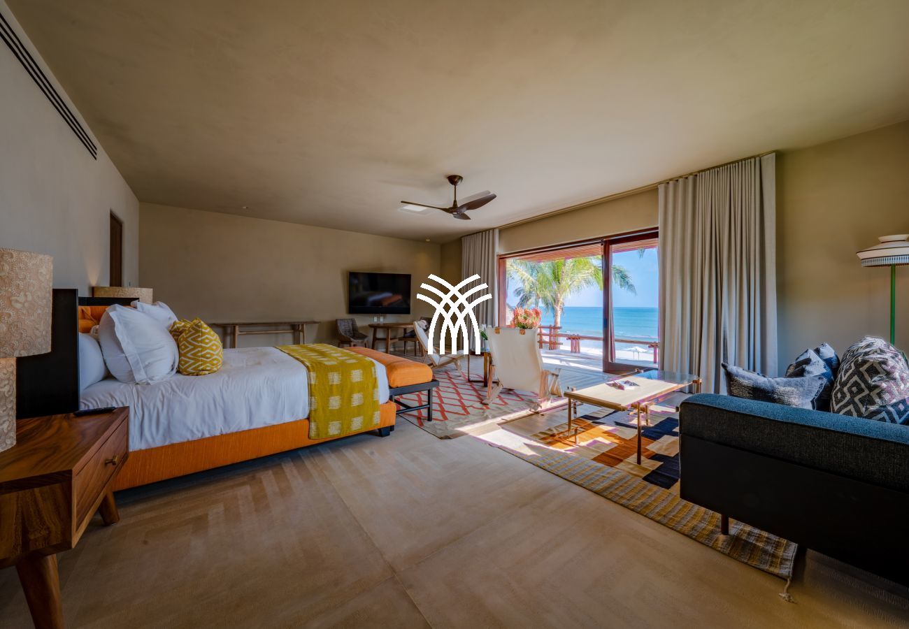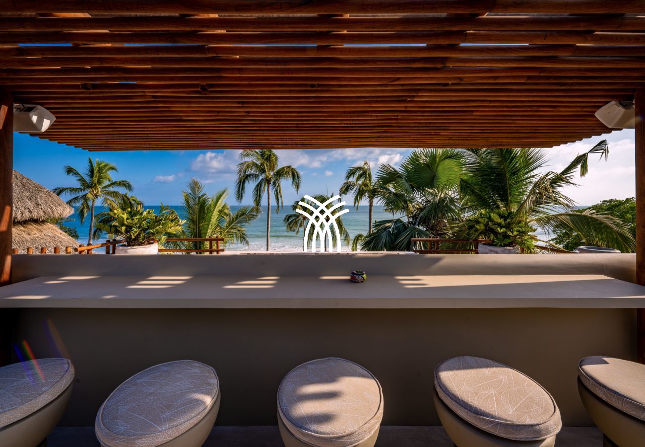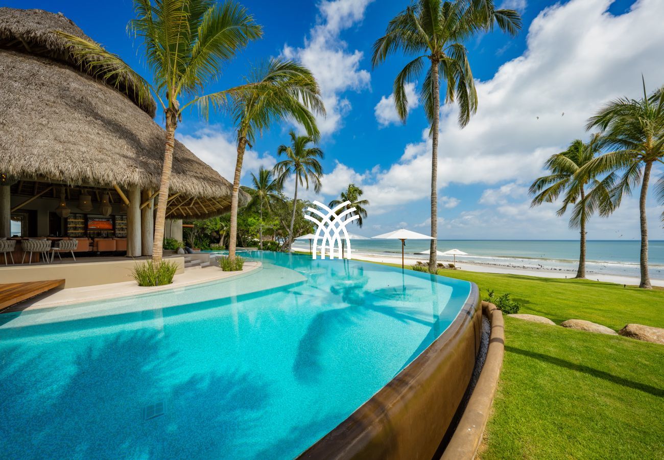 Le cœur de la villa est son immense piscine à débordement chauffée et son bain à remous surdimensionné, offrant une vue imprenable sur la baie de Banderas et les îles Marietas. Avec un accès direct à la meilleure plage de Punta Mita, vous pouvez profiter des eaux chaudes et peu profondes en toute sérénité.