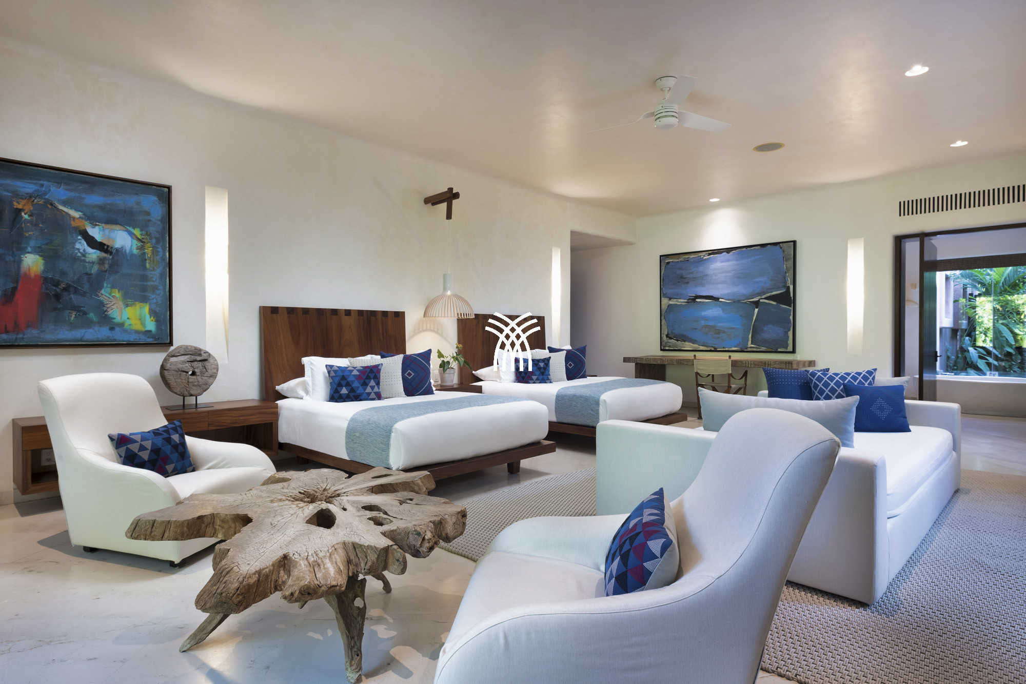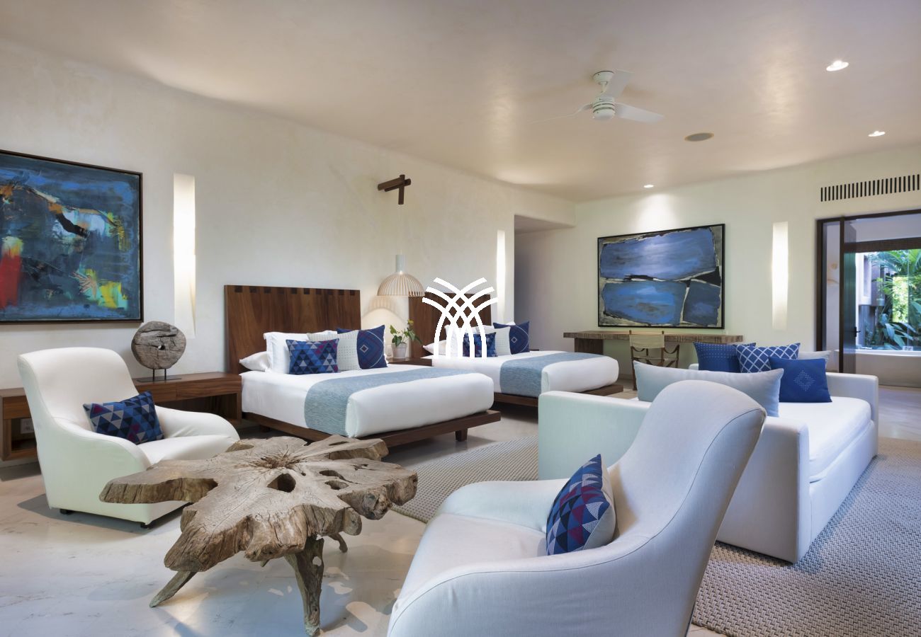 Magistralement conçue par les architectes renommés Juan Collignon Hoff et Manolo Mestre, Casa Tres Soles harmonise l'artisanat mexicain traditionnel avec l'élégance moderne. Son architecture et sa décoration intérieure reflètent une connexion profonde avec le patrimoine culturel mexicain, avec des textiles vibrants, des détails en bois de Huanacaxtle saisissants et des espaces vastes qui se fondent harmonieusement dans l'environnement naturel.