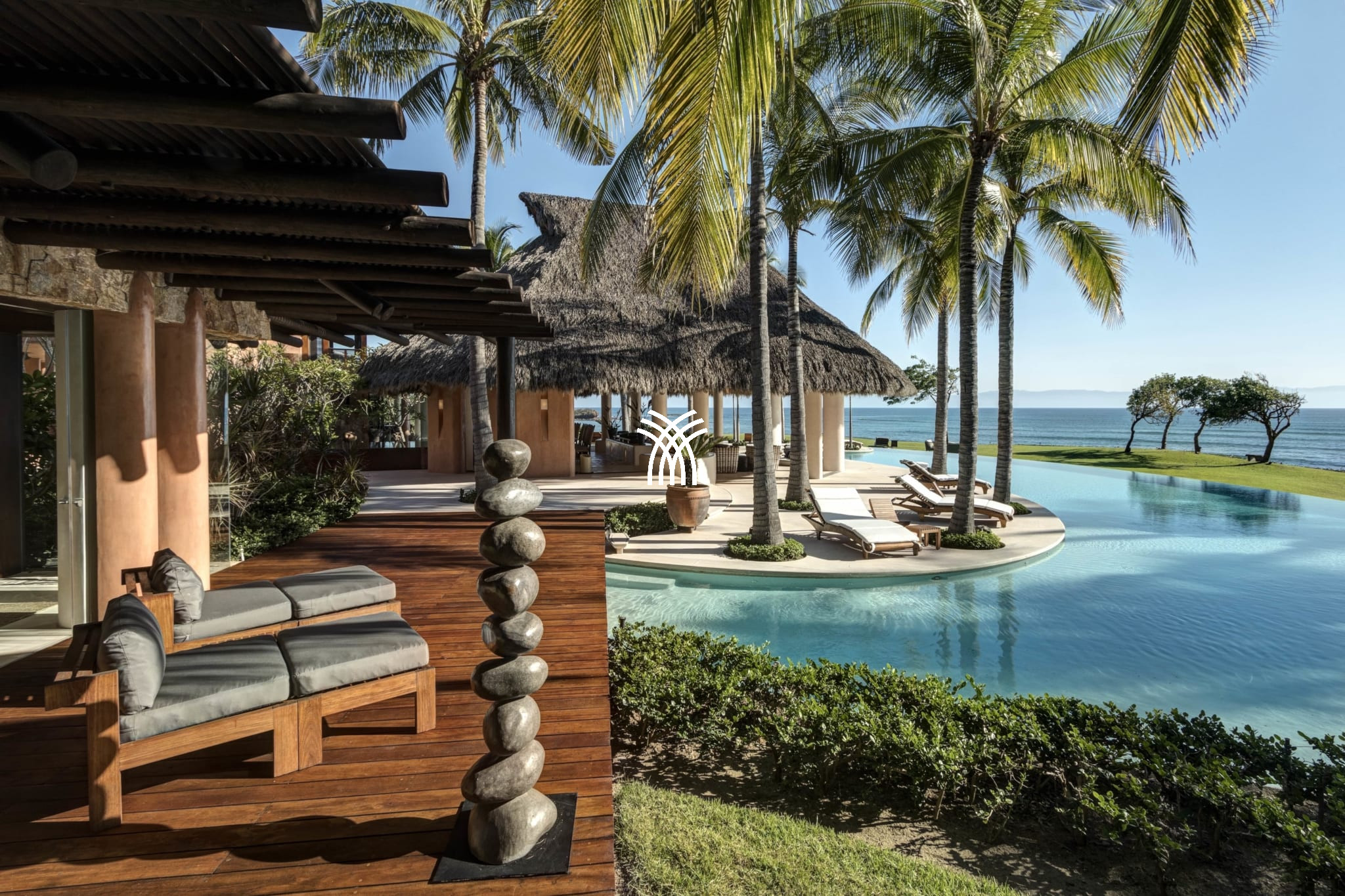 Le cœur de la villa est son immense piscine à débordement chauffée et son bain à remous surdimensionné, offrant une vue imprenable sur la baie de Banderas et les îles Marietas. Avec un accès direct à la meilleure plage de Punta Mita, vous pouvez profiter des eaux chaudes et peu profondes en toute sérénité.