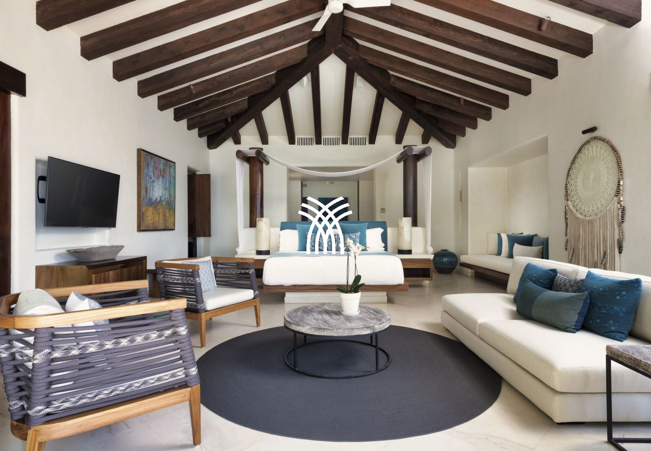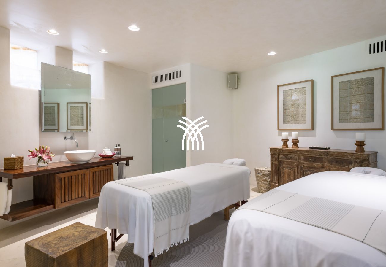 Les installations d'AKAMÁ sont incomparables, avec une salle de cinéma privée équipée de la technologie Dolby Atmos, un spa privé, et une salle de sport moderne avec les équipements Technogym. Les espaces de détente incluent une grande salle à manger intérieure pouvant accueillir 18 personnes, une terrasse en plein air sous une Grand Palapa, un bar, ainsi qu’un Skybar sur le toit pour admirer les couchers de soleil.