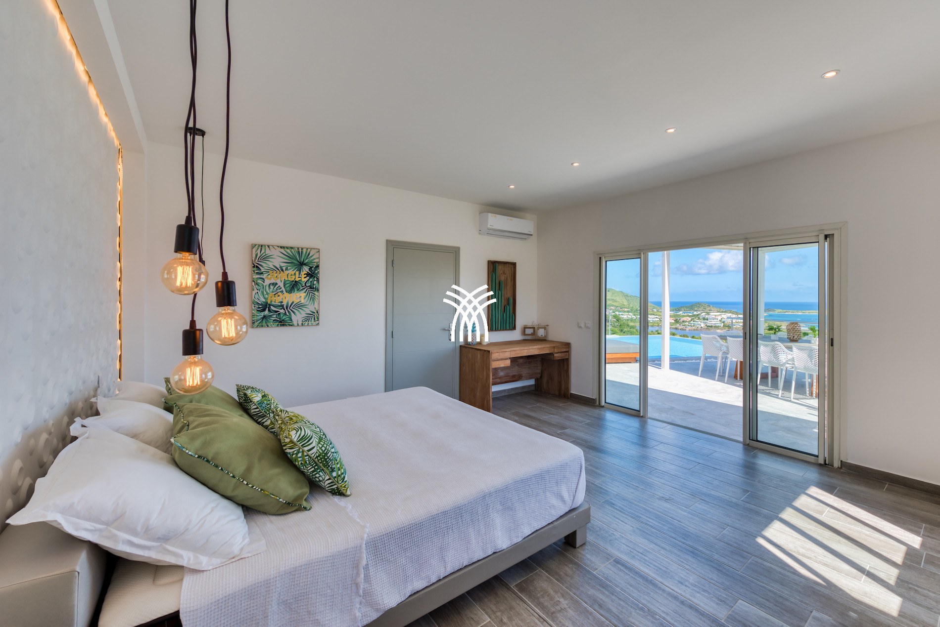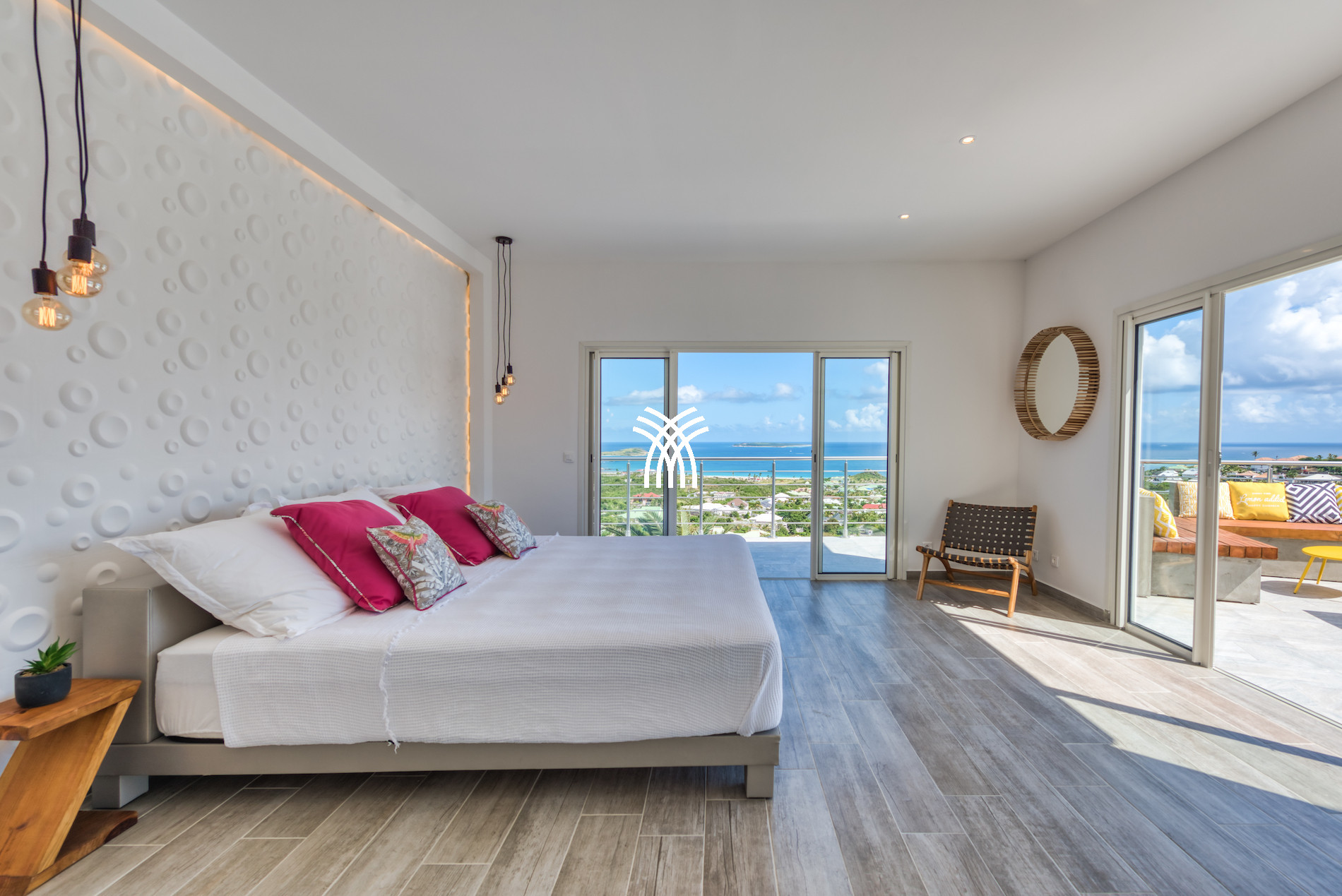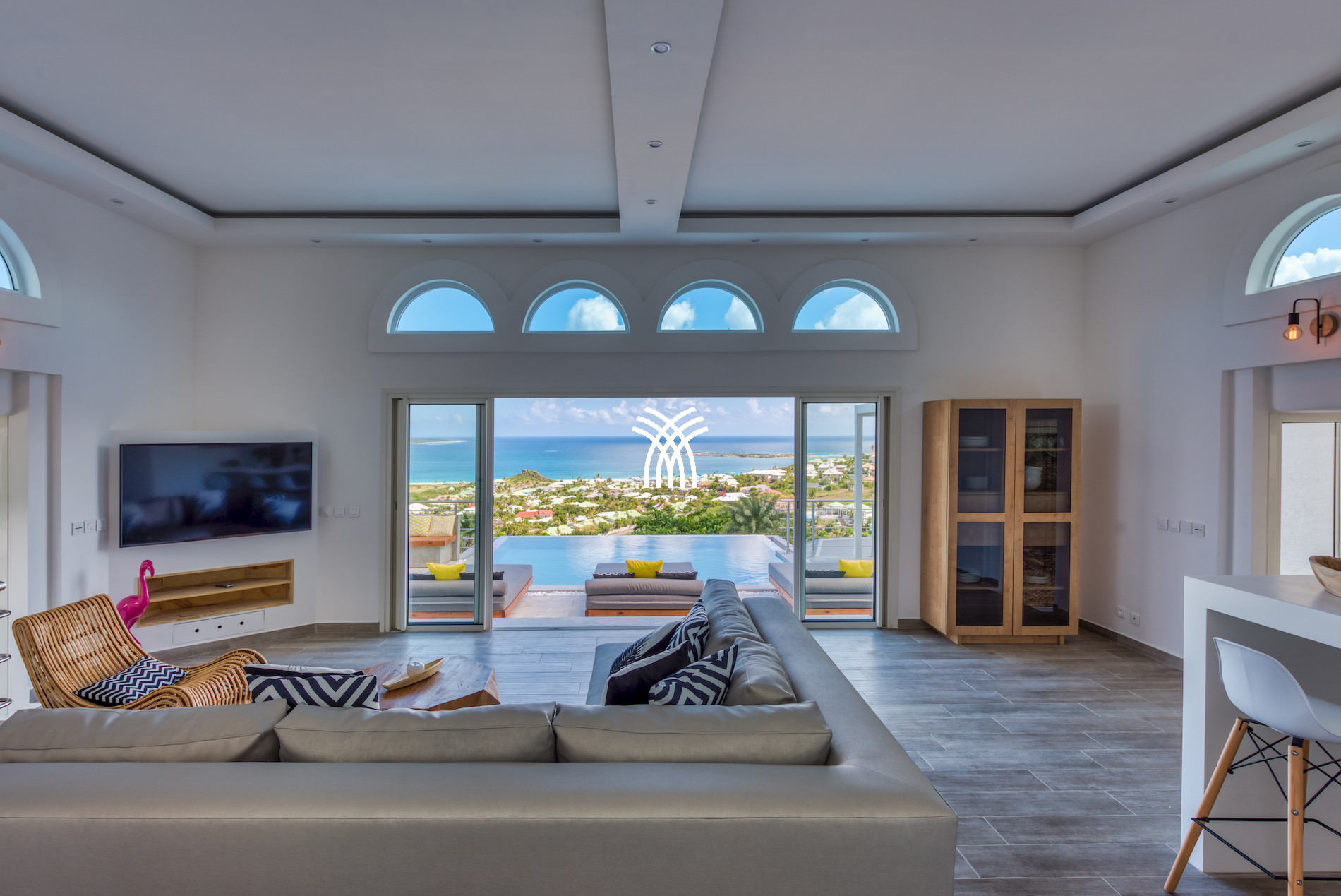 Villa Sunrise St Martin, villa 3 chambres, 3 salles de bains, moderne, située sur les hauteurs de la Baie Orientale vous offre une vue spectaculaire et exceptionnelle sur St Barth, Tintamarre et Pinel.