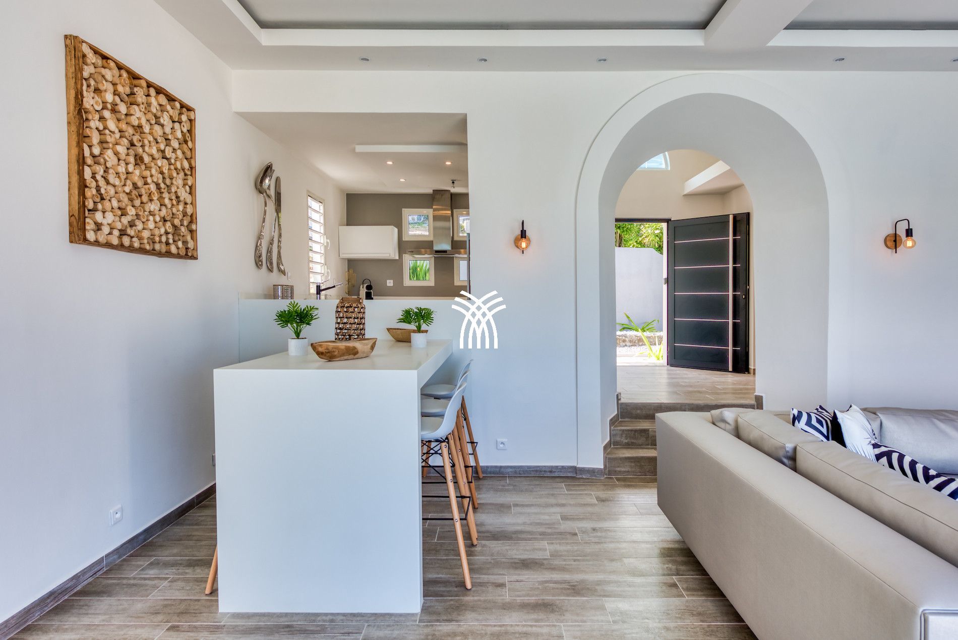 Conçue pour vivre pleinement l’expérience tropicale, la Villa Indigo Pearl séduit par son architecture contemporaine, ses grands espaces lumineux et son atmosphère apaisante. Ses baies vitrées ouvertes sur l’extérieur invitent la lumière naturelle et la vue mer à faire partie intégrante de chaque instant.