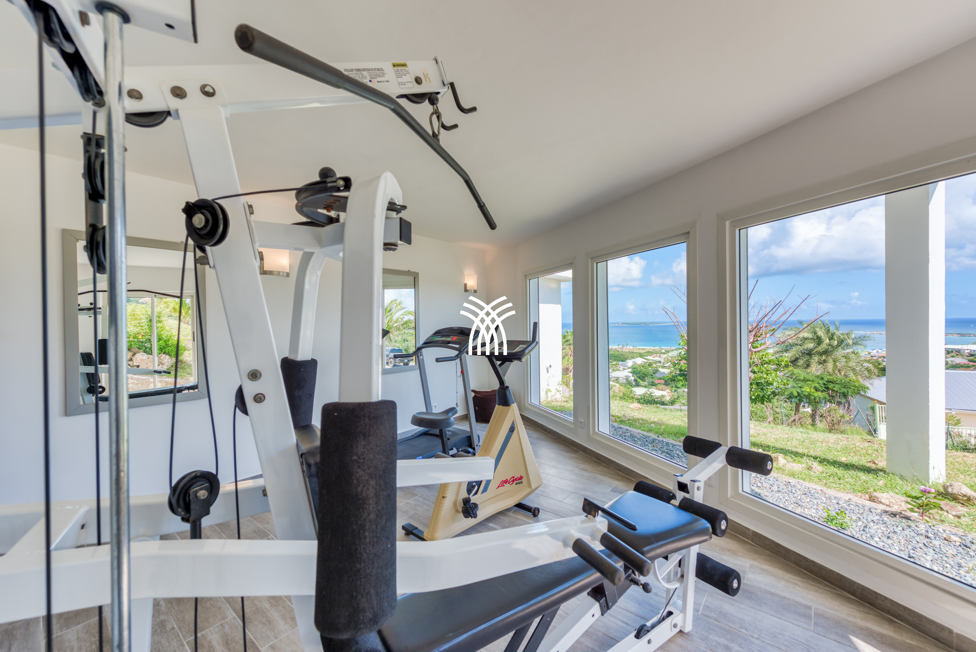 Les amateurs de bien-être et de fitness apprécieront la salle de sport entièrement équipée, offrant une vue spectaculaire sur l’océan. Quoi de mieux que de s’entraîner avec un paysage aussi inspirant ? Après une séance de sport ou une journée d’exploration sur l’île, les espaces de détente de la villa invitent à savourer des instants de pur bonheur, que ce soit en famille ou entre amis.