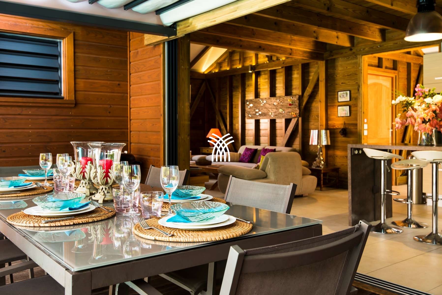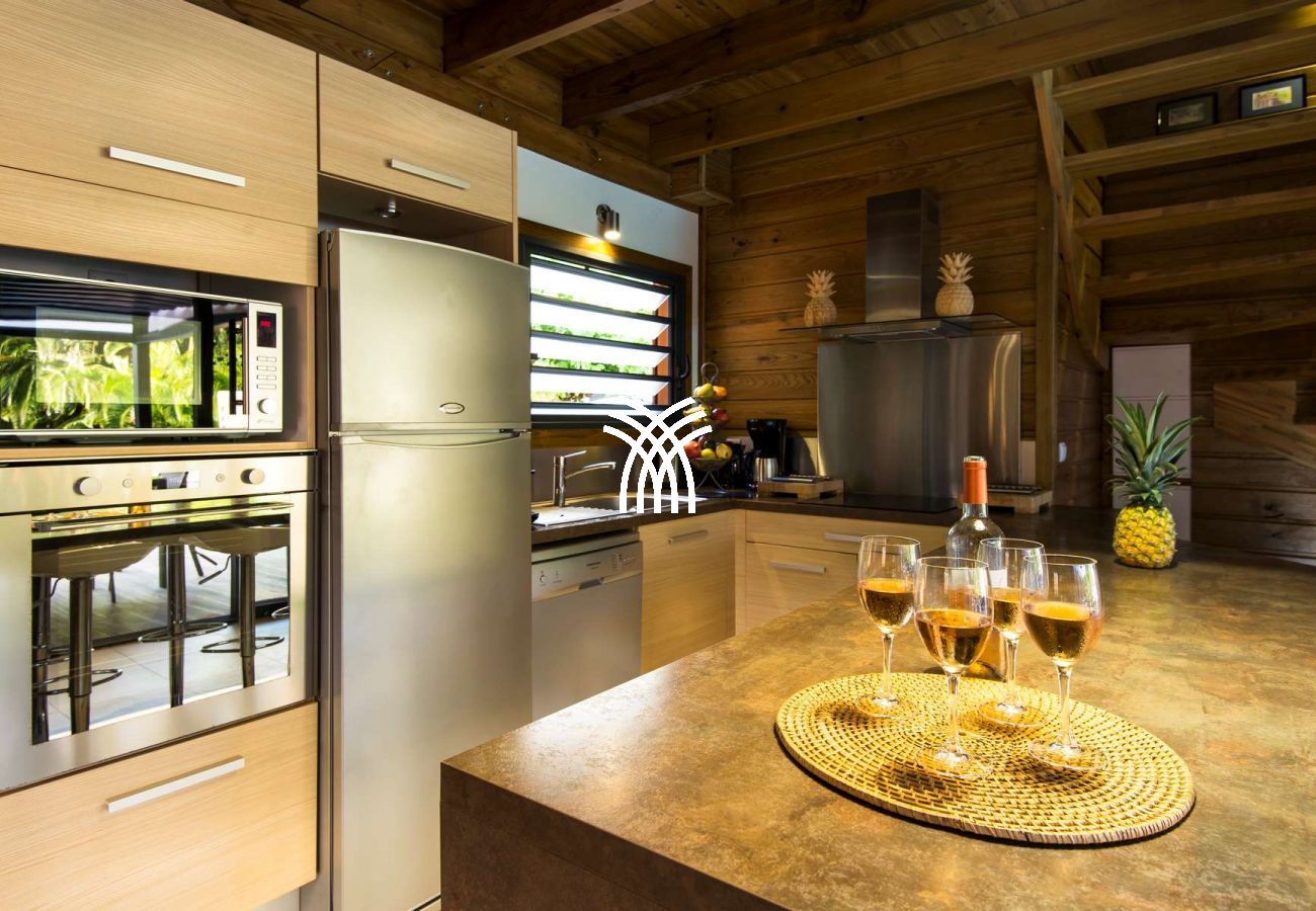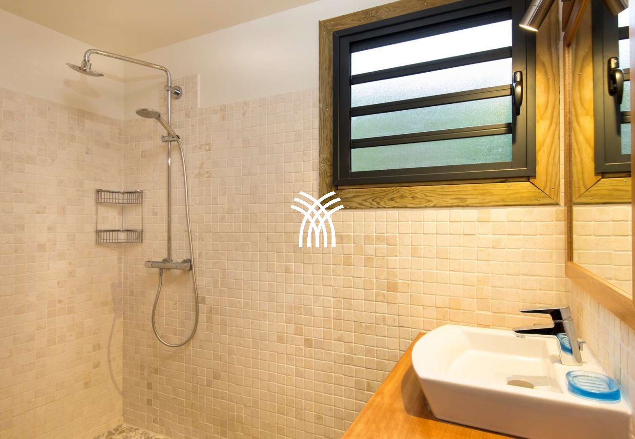 Le vaste espace de vie de la Villa Sunset Bay vous invite à la détente. La cuisine américaine moderne, entièrement équipée, s’ouvre sur un salon lumineux et convivial, idéal pour partager des moments privilégiés. À l’extérieur, le charme opère immédiatement : une terrasse en bois élégante entoure une piscine à débordement miroir et un jacuzzi, offrant des panoramas époustouflants sur les couchers de soleil tropicaux. Un barbecue, une table de billard et un coin ping-pong complètent cet espace dédié à la convivialité et aux loisirs.