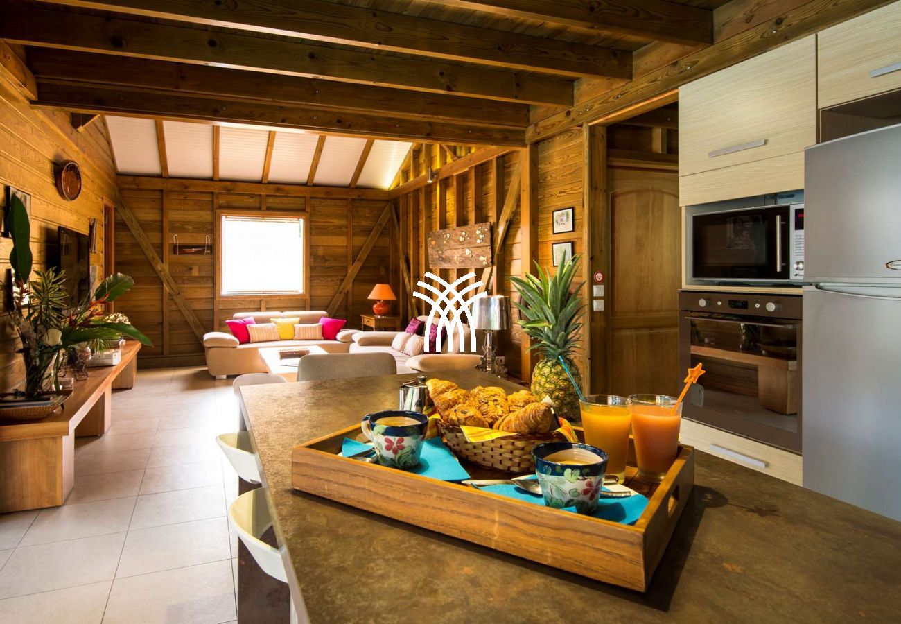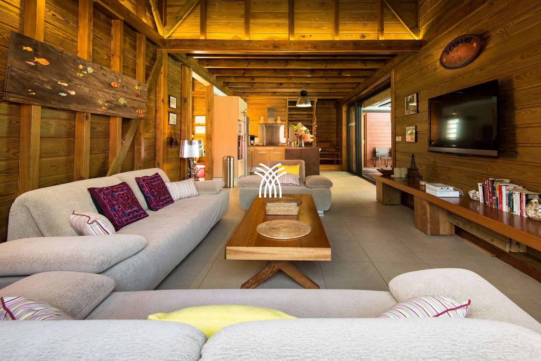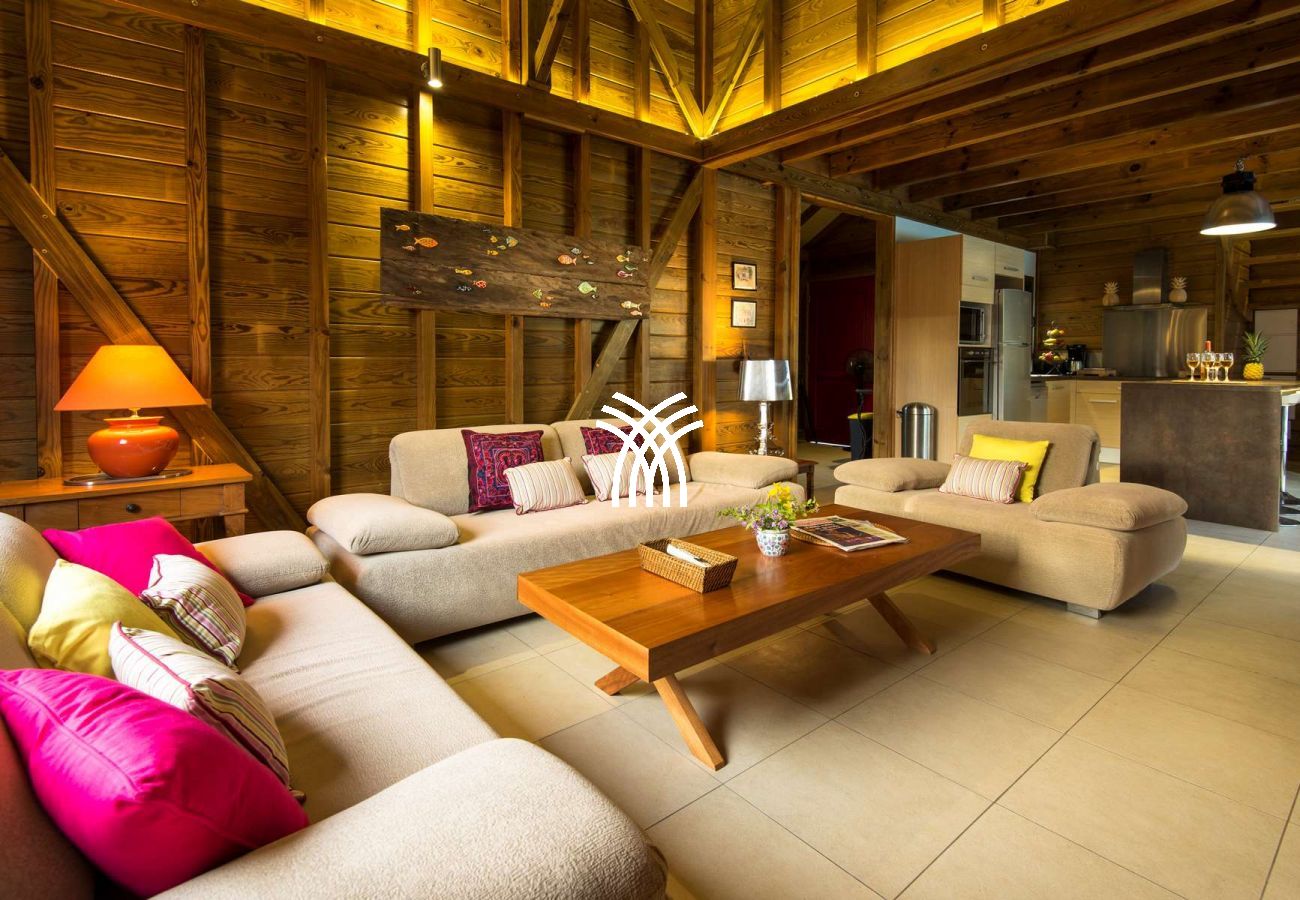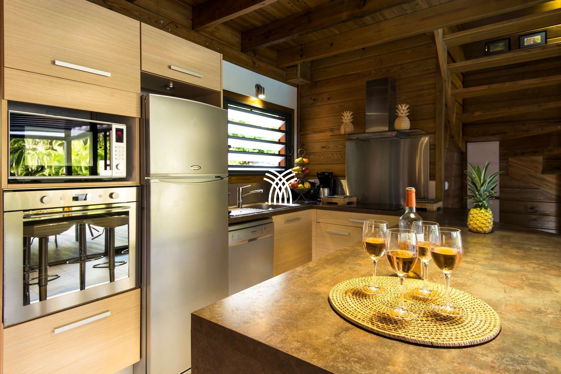Le vaste espace de vie de la Villa Sunset Bay vous invite à la détente. La cuisine américaine moderne, entièrement équipée, s’ouvre sur un salon lumineux et convivial, idéal pour partager des moments privilégiés. À l’extérieur, le charme opère immédiatement : une terrasse en bois élégante entoure une piscine à débordement miroir et un jacuzzi, offrant des panoramas époustouflants sur les couchers de soleil tropicaux. Un barbecue, une table de billard et un coin ping-pong complètent cet espace dédié à la convivialité et aux loisirs.