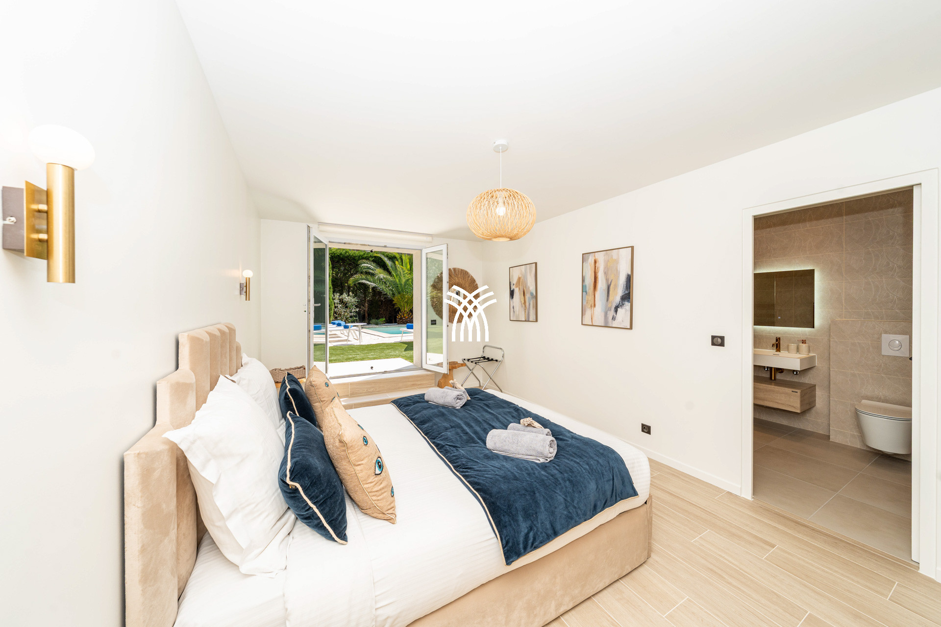 Elle accueille jusqu’à 12 personnes grâce à ses 6 suites élégantes, toutes dotées de salles de bain privatives, dont un studio indépendant parfaitement adapté pour les invités ou le personnel. Le vaste séjour baigné de lumière naturelle s’ouvre sur une terrasse plein sud, où un piano à queue ajoute une touche d’élégance et de convivialité. La cuisine haut de gamme, entièrement équipée, ravira les amateurs de gastronomie et les chefs privés.