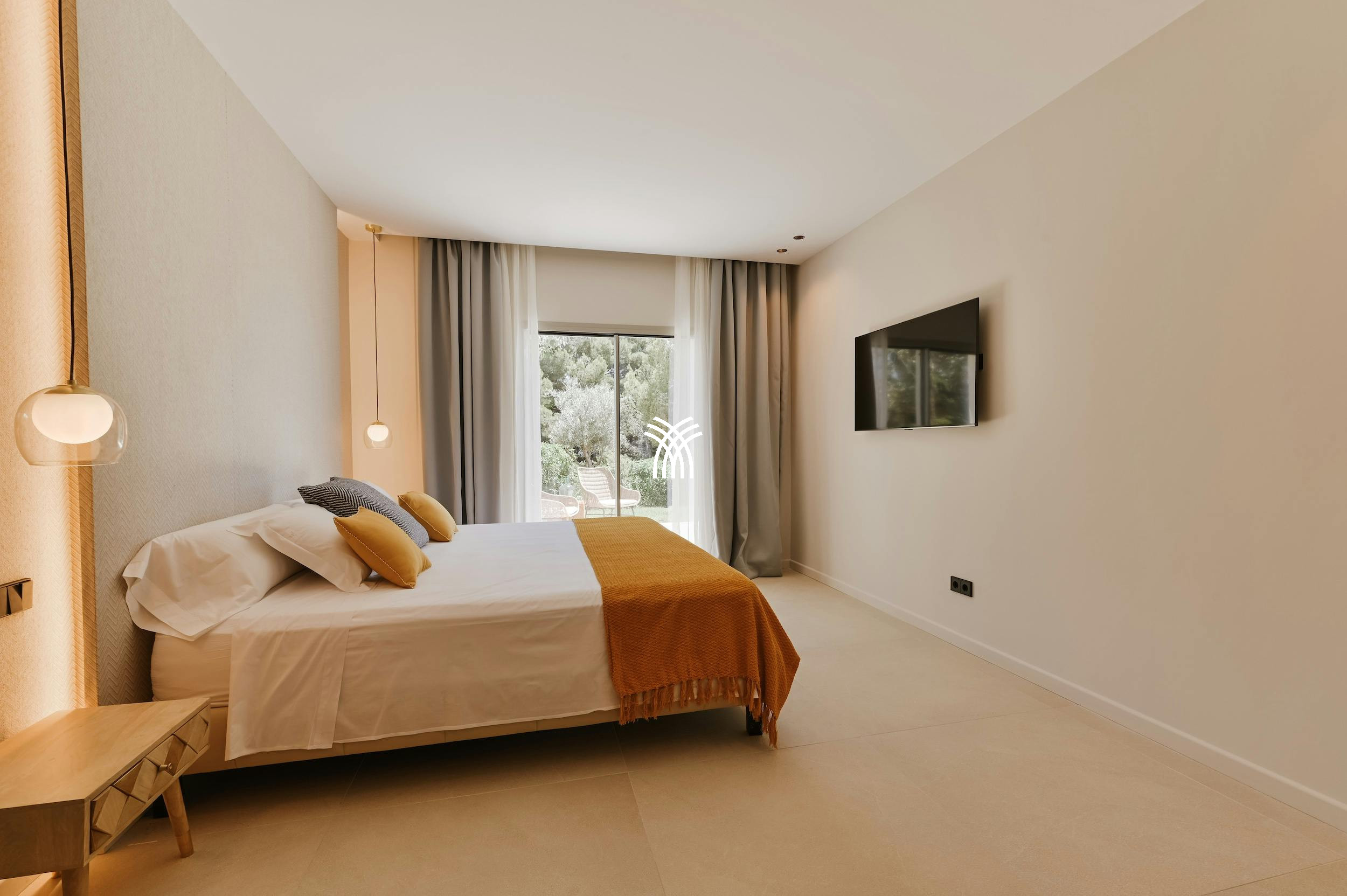 Située à Calviá, l'une des municipalités les plus aisées de l'île, cette Location de Villa de Luxe à Ibiza offre un accès facile aux loisirs haut de gamme et aux activités de plein air. Des criques isolées et des plages à proximité comme Cala Mayor et Playa de Illetes au golf de classe mondiale du Real Golf de Bendinat et aux sports nautiques passionnants, chaque expérience est à portée de main. Les restaurants gastronomiques, les boutiques et les bars animés ne sont qu'à quelques minutes.
