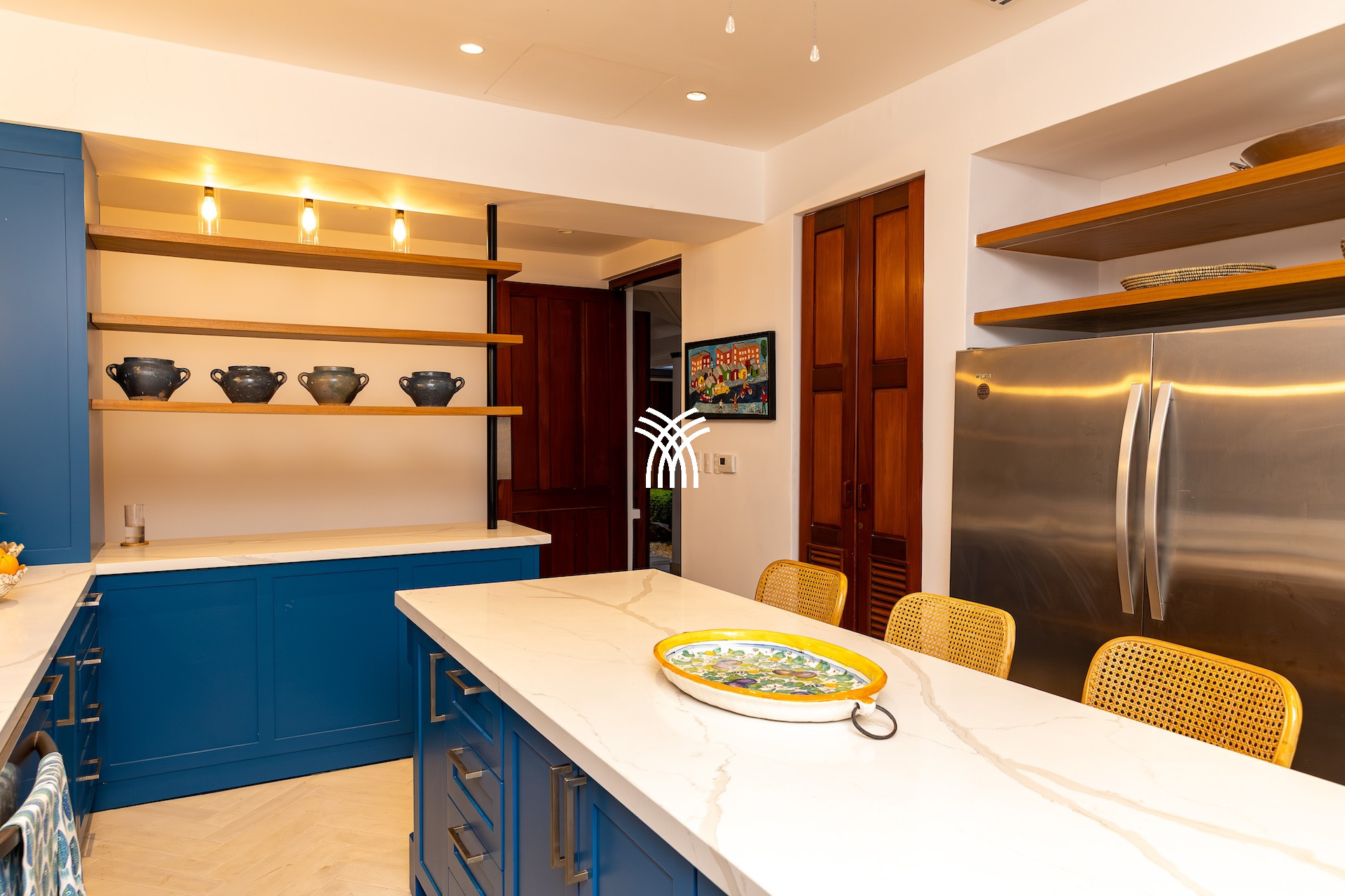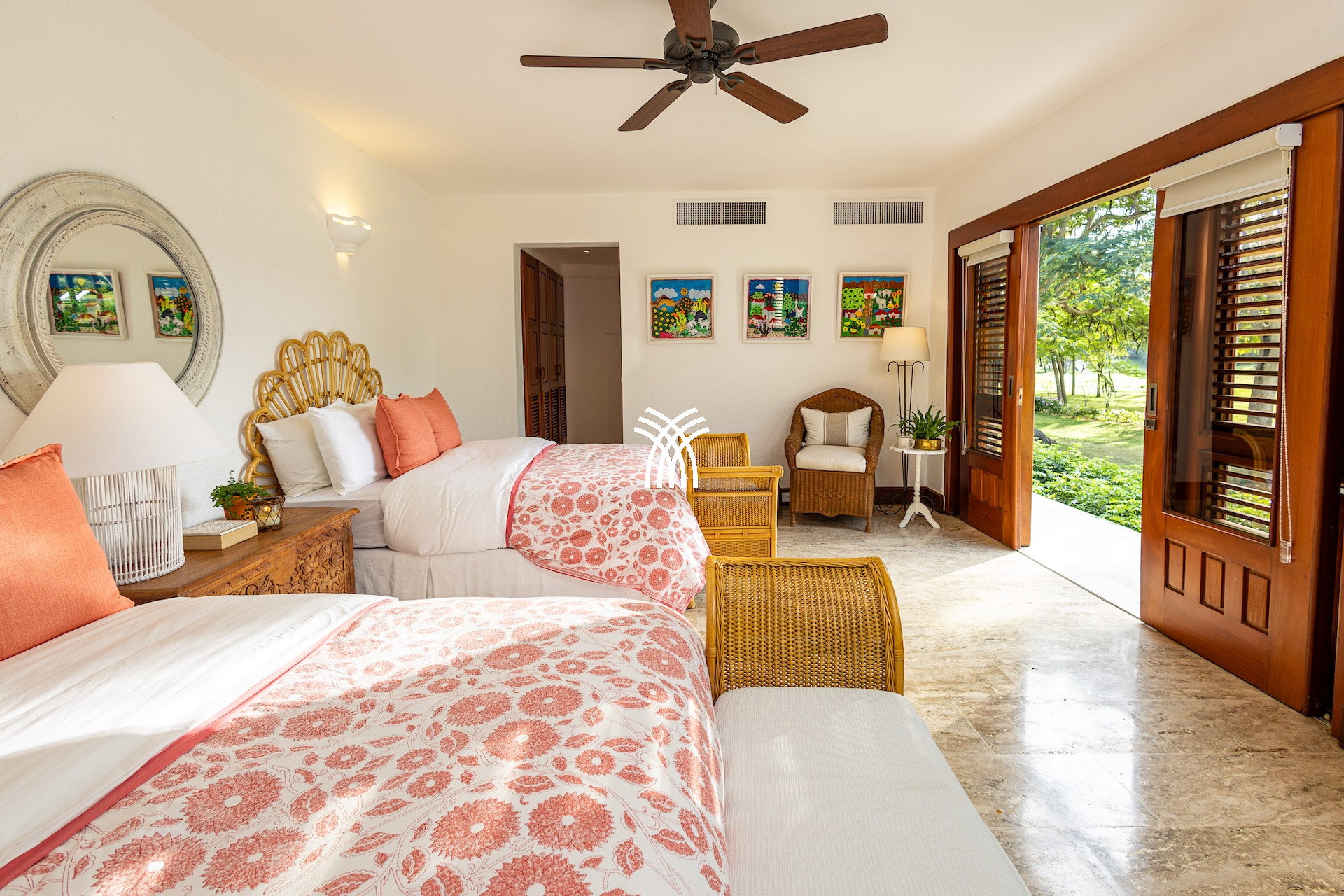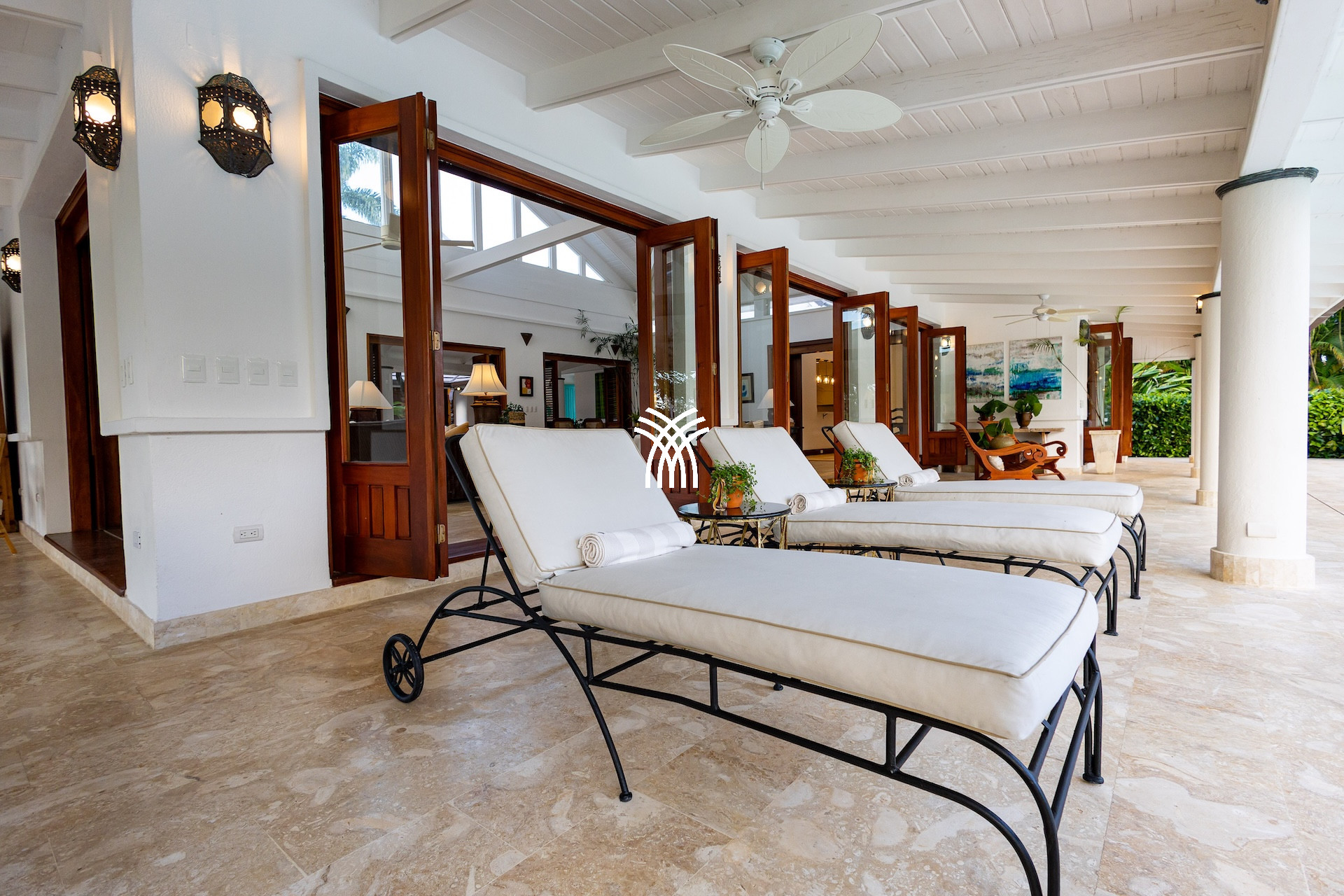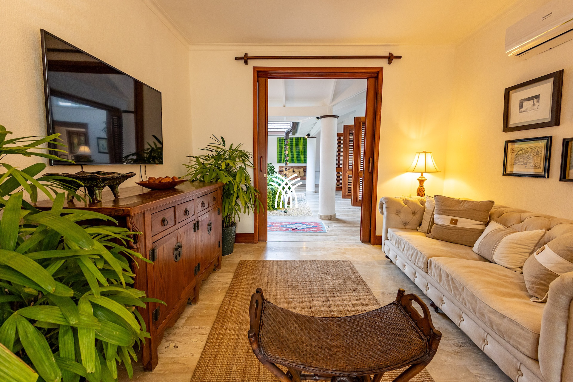 Dès l’entrée, un patio à ciel ouvert planté de végétation luxuriante et orné d’une élégante chaîne d’eau vous accueille comme un havre de paix. Les volumes généreux, les plafonds voûtés et les boiseries nobles diffusent une atmosphère lumineuse et chaleureuse. De grandes portes en bois s’ouvrent sur une vaste terrasse qui capte la brise tropicale et invite à vivre pieds nus entre intérieur raffiné et nature préservée.