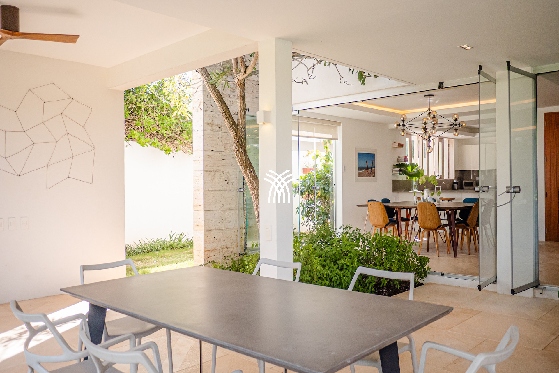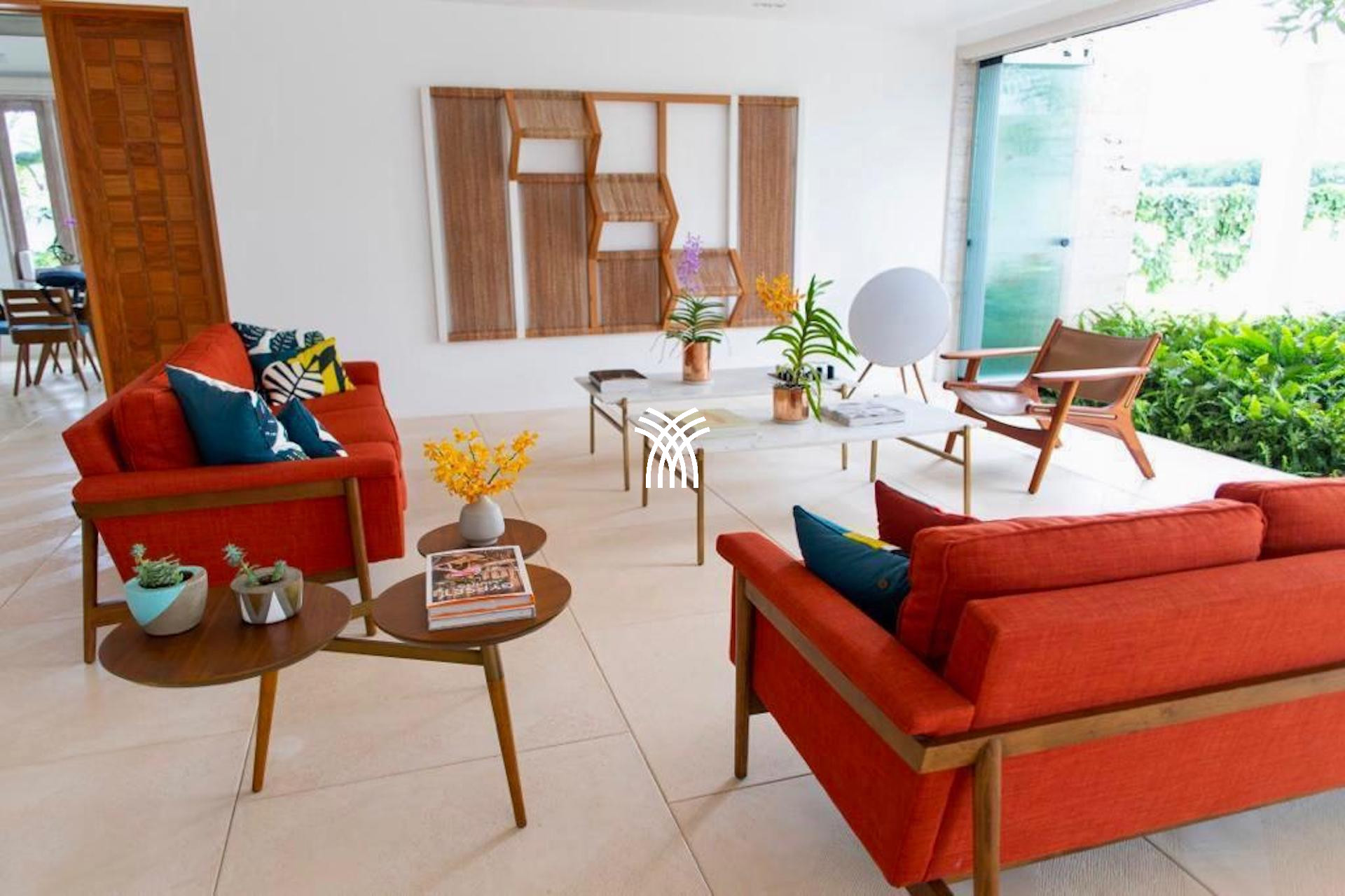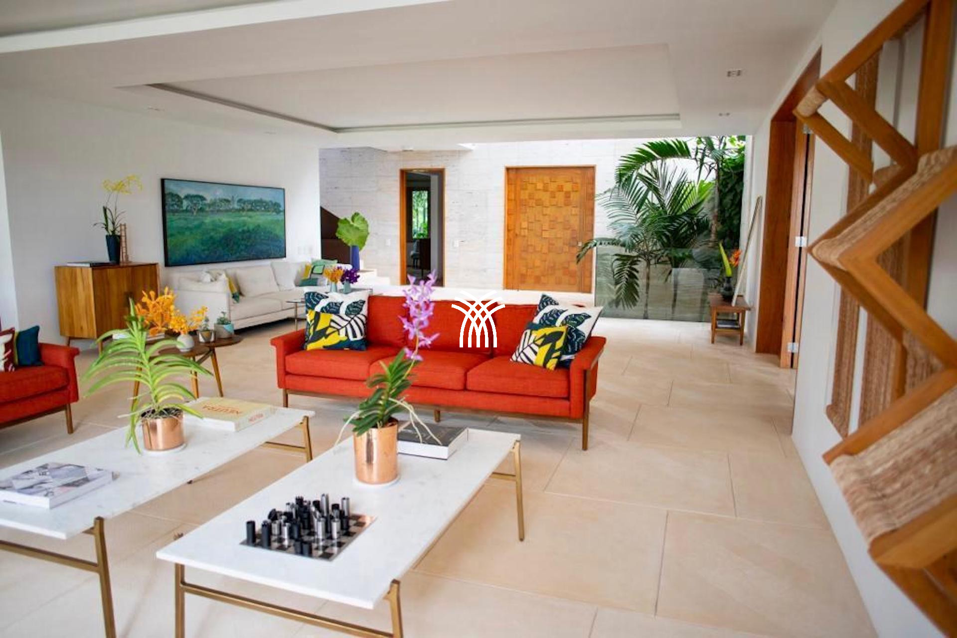Dès votre arrivée par l'allée majestueuse bordée d'arbres, Casa Saman vous invite dans un monde où sérénité et sophistication coexistent. La conception ouverte et aérée de la villa crée une connexion harmonieuse entre le confort intérieur et l'environnement extérieur vibrant. Le salon spacieux s'étend avec grâce sur une terrasse baignée de soleil, révélant des vues panoramiques sur les jardins tropicaux et la piscine scintillante au-delà—un cadre parfait pour une réflexion tranquille ou des moments de joie avec la famille et les amis.