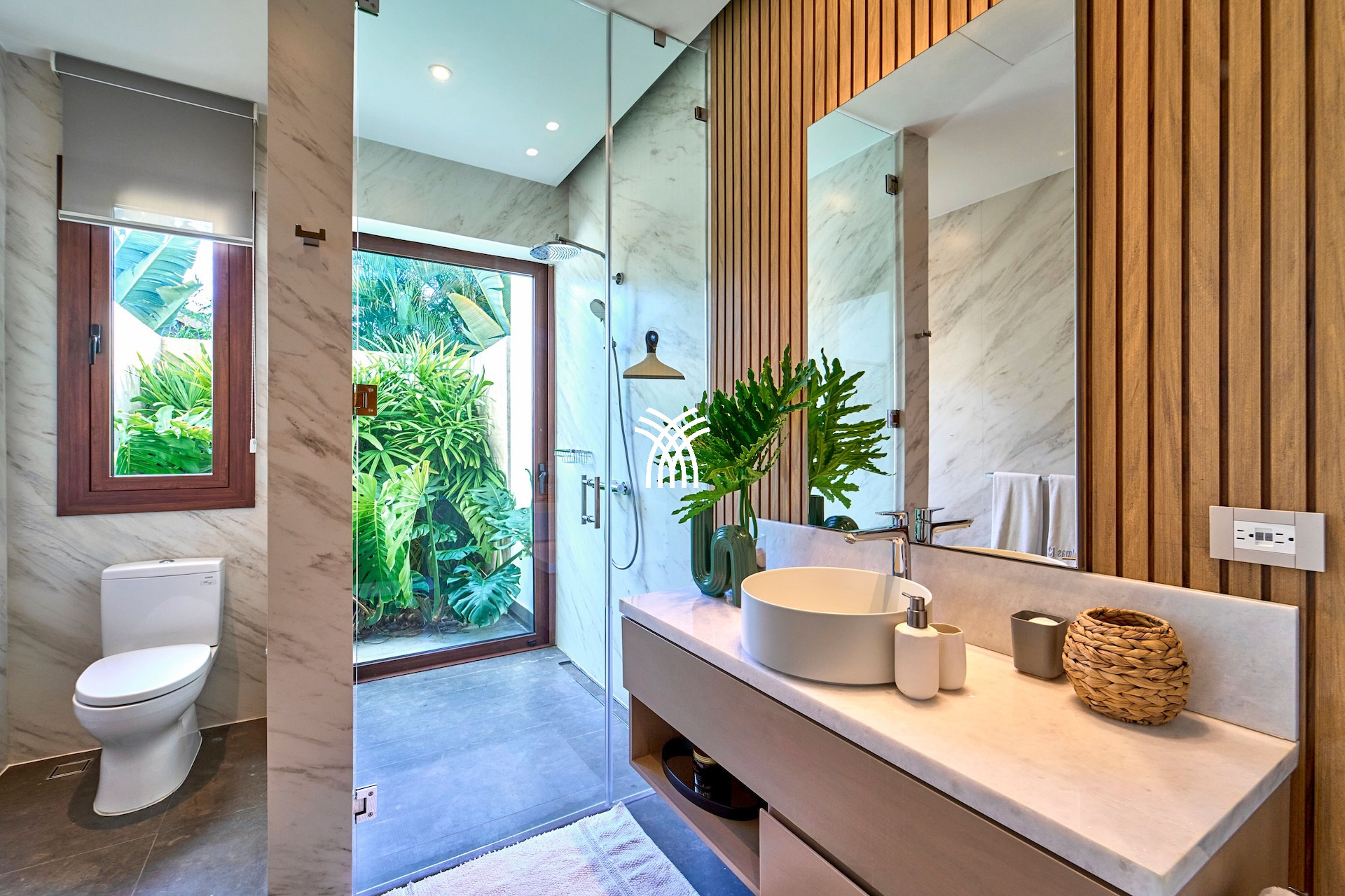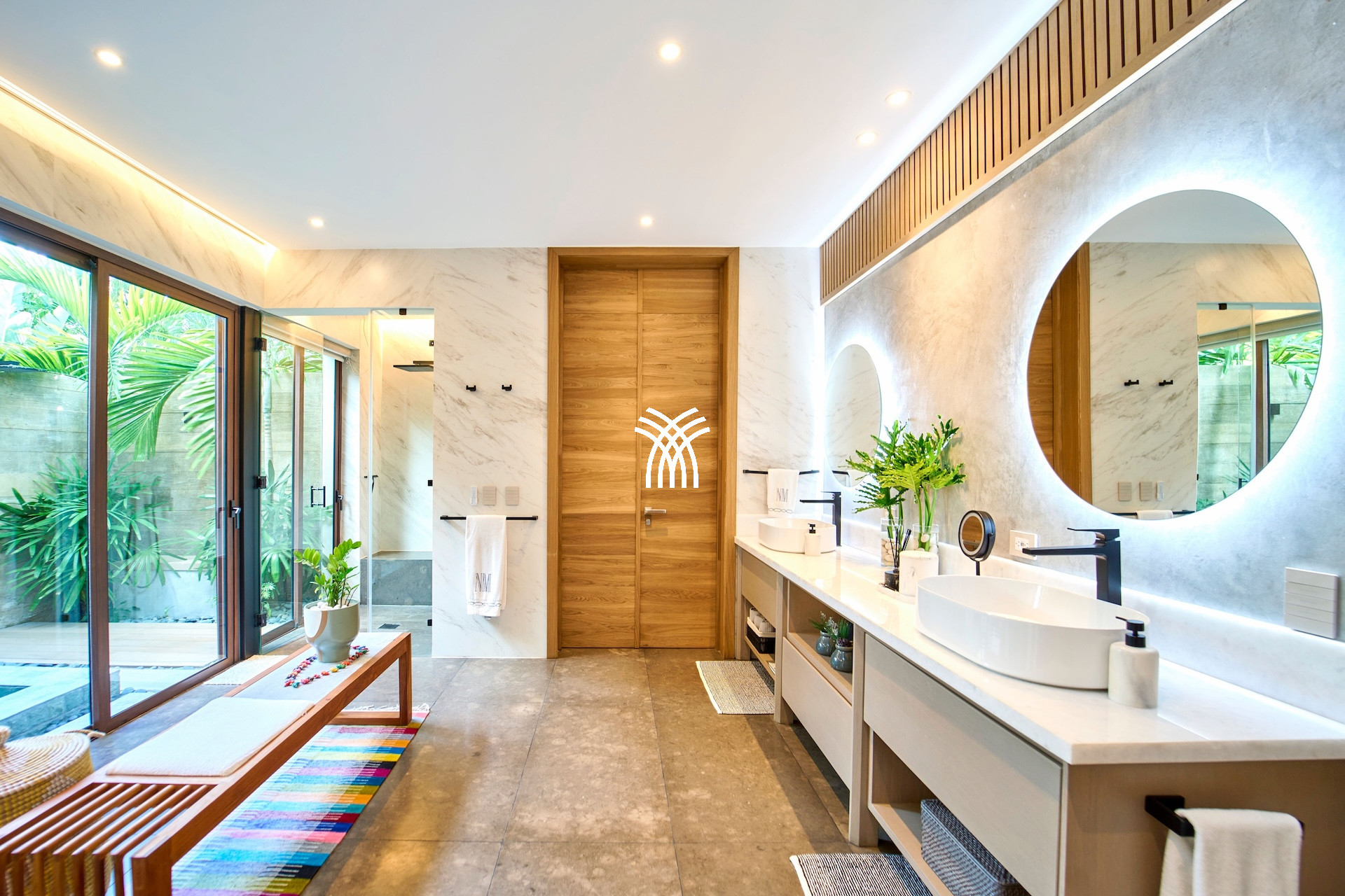 De ses lignes architecturales élégantes aux intérieurs minimalistes chaleureux baignés de lumière naturelle, Palm West dégage une sophistication discrète. Chaque espace est soigneusement composé, avec des textures de bois riches et des vues sur des jardins luxuriants adoucissant le design épuré. Le flux transparent entre la vie intérieure et extérieure de la villa vous invite à ralentir et à savourer chaque moment, que ce soit lors d'une promenade matinale le long des espaces verts, une baignade rafraîchissante sous les palmiers, ou une pause silencieuse où l'on n'entend que le bruissement des feuilles et le chant lointain des oiseaux.