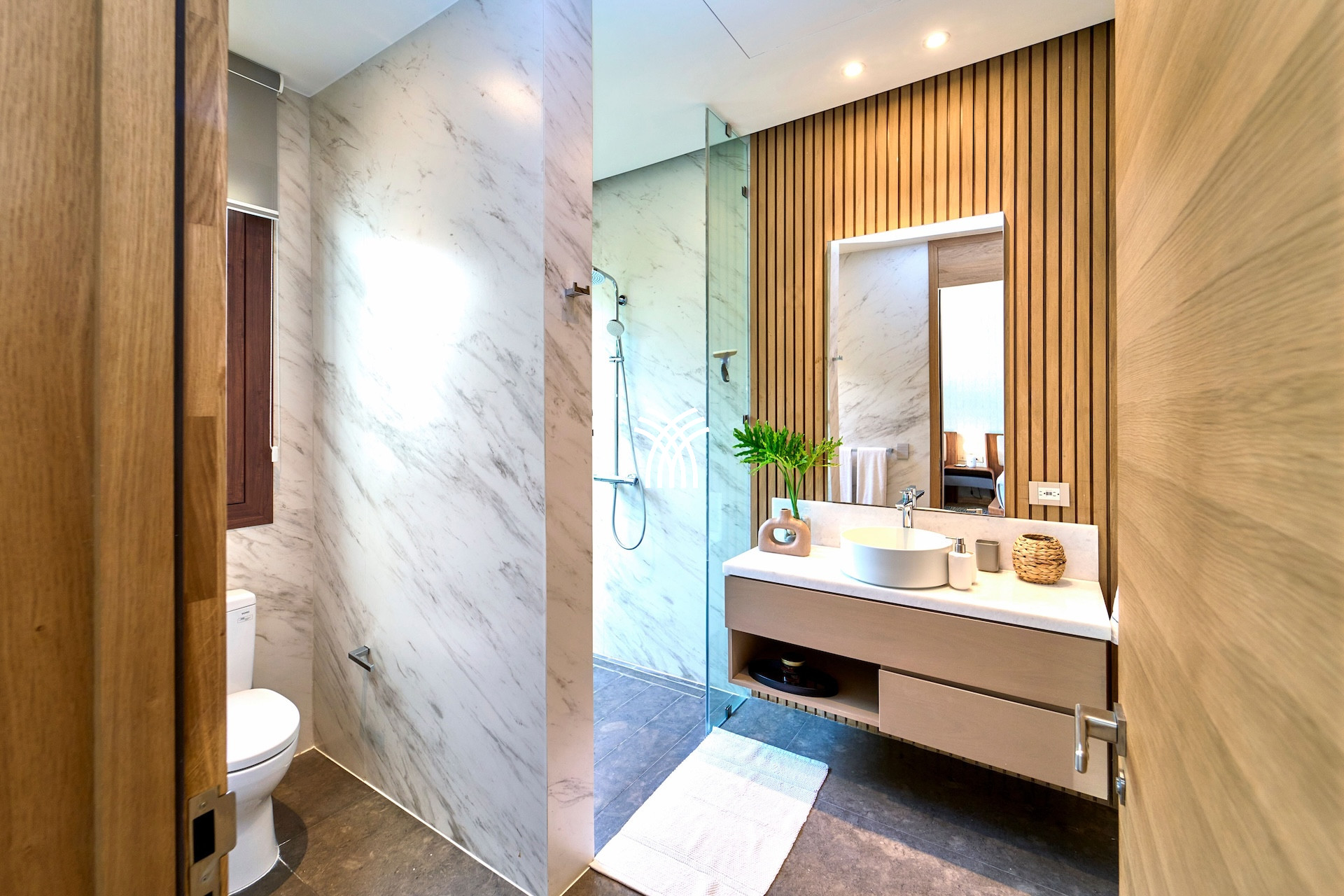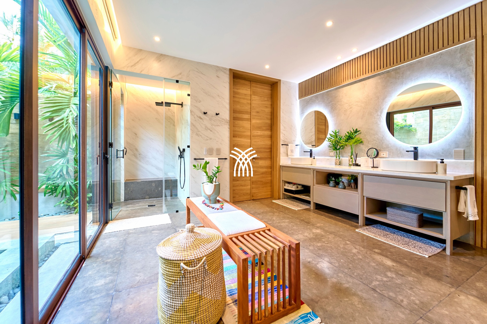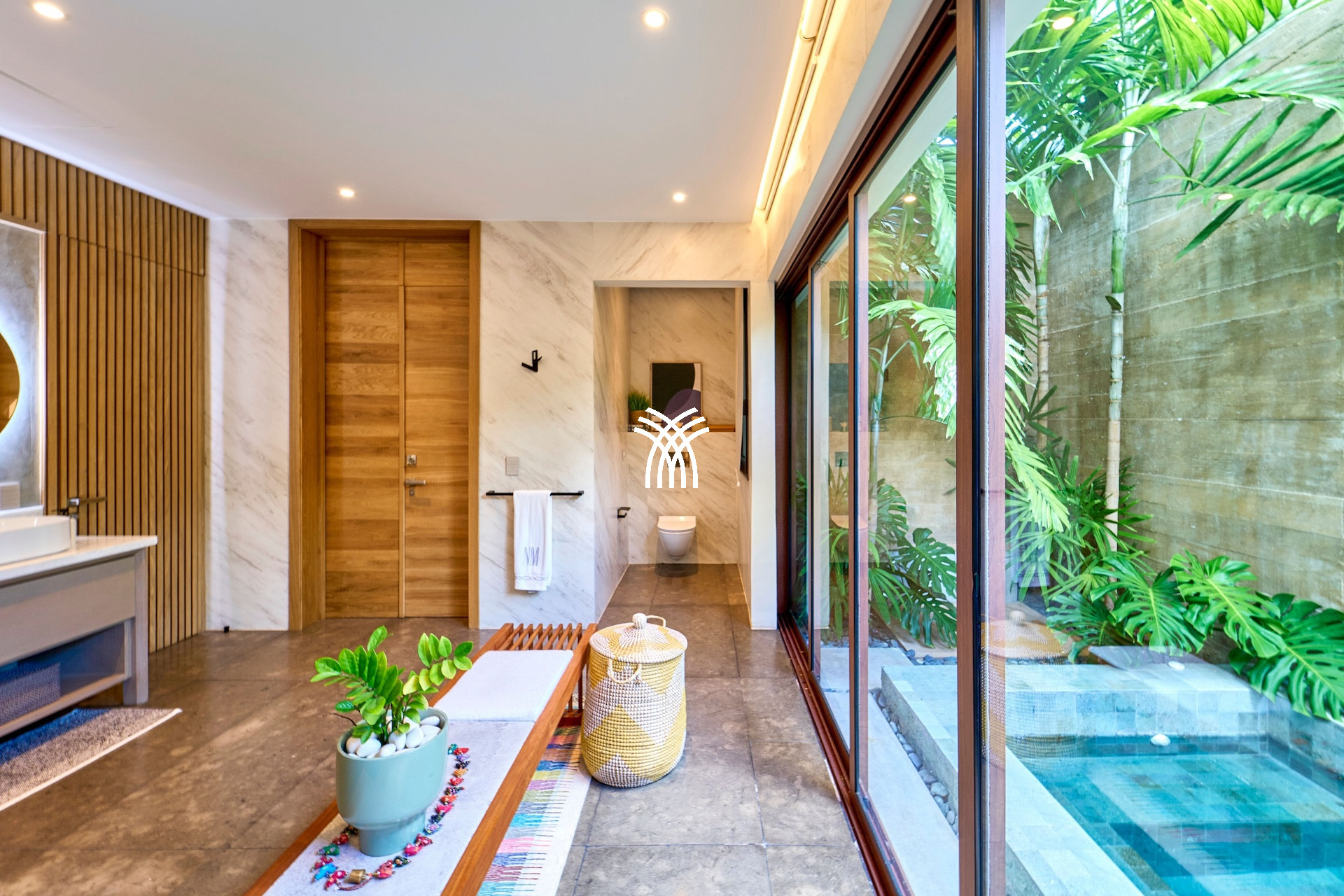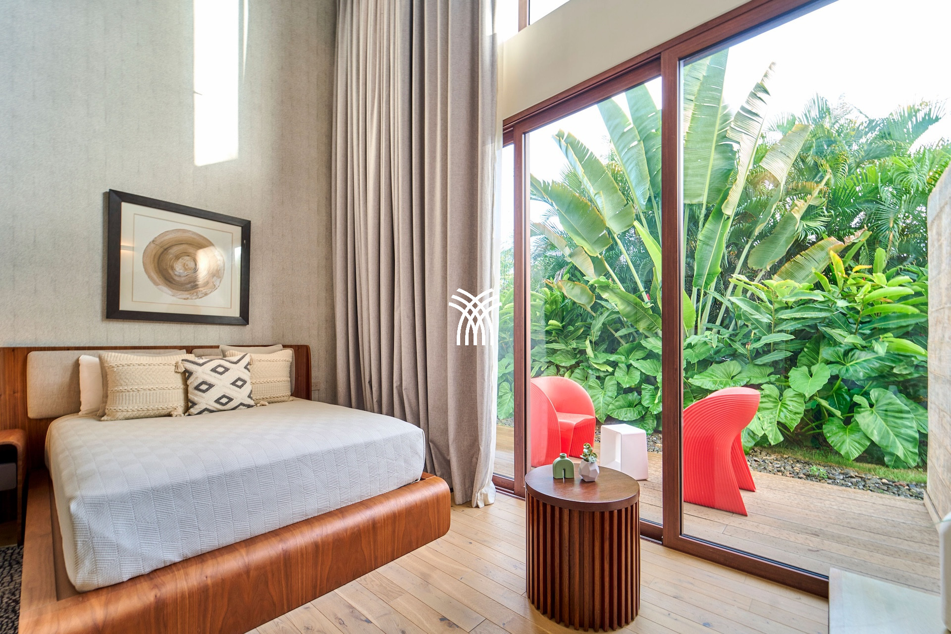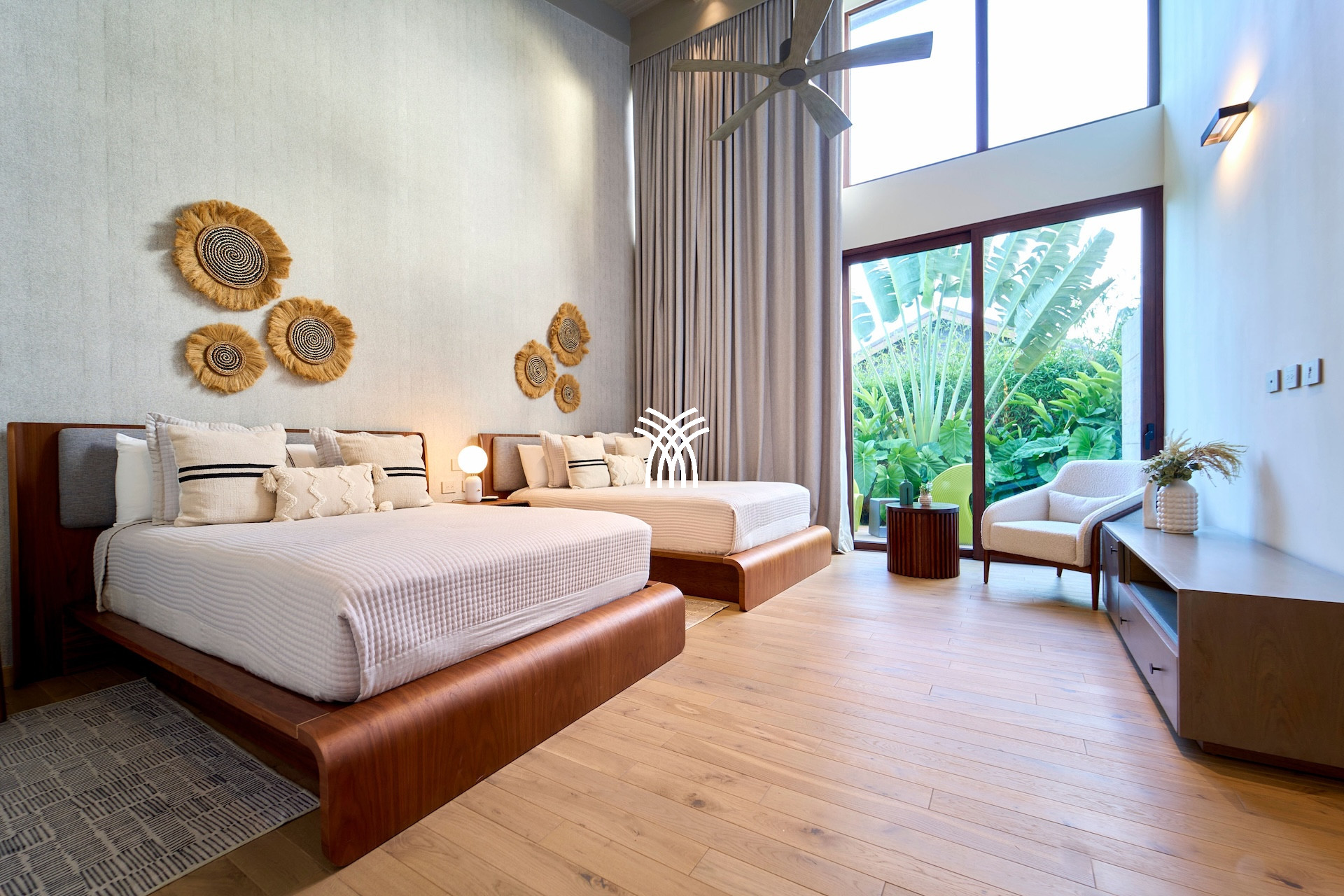 Au cœur du Tropical Modern se trouvent deux suites principales spacieuses, chacune un sanctuaire privé doté de salles de bains ouvertes et d'espaces de studio sereins. Parfaitement conçues pour les familles ou les groupes, les suites offrent à la fois intimité et connexion. Une cinquième chambre s'ouvre directement sur le jardin verdoyant et les abords de la piscine, garantissant un mélange harmonieux de luxe et de commodité.
