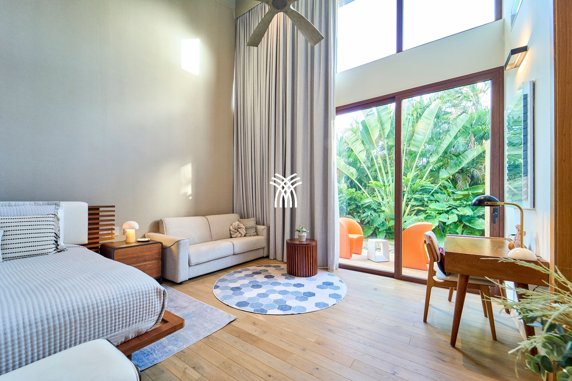 Chacune des cinq chambres de la villa est un refuge privé, où des plafonds à hauteur vertigineuse, des terrasses de jardin et une élégante simplicité créent une atmosphère de repos profond. Avec une disposition conçue à la fois pour l'intimité et la convivialité, la villa accueille familles, couples ou groupes d'amis avec aisance, garantissant à chaque invité le même niveau de soin et de confort.
