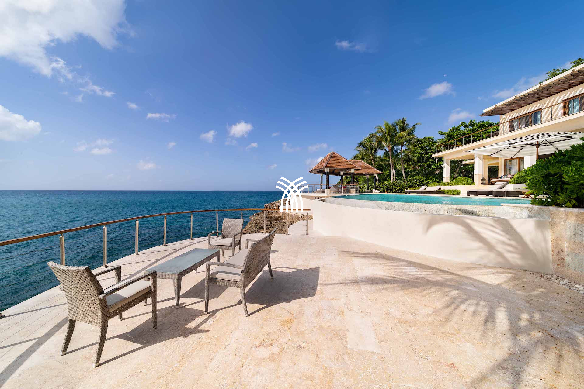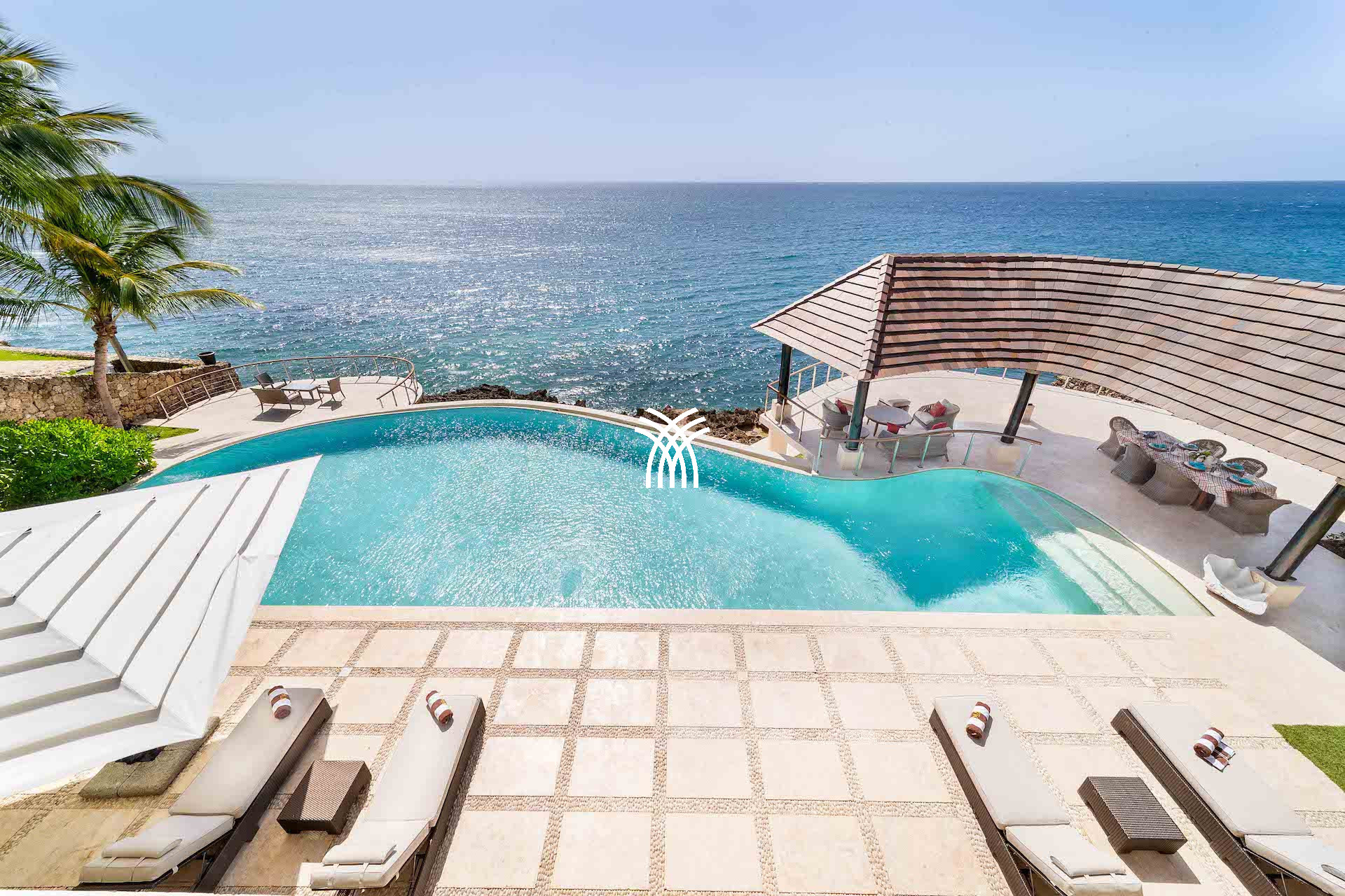 L'architecture de la villa célèbre l'art de la vie intérieure-extérieure, mélangeant harmonieusement des intérieurs raffinés avec la beauté naturelle de la mer. Des brises légères traversent les espaces ouverts, tandis que les vues panoramiques sur l'horizon des Caraïbes deviennent une compagne constante. Les espaces de vie et de salle à manger climatisés offrent un refuge frais et élégant, ornés de touches réfléchies qui rehaussent l'atmosphère chaleureuse et accueillante de la villa.