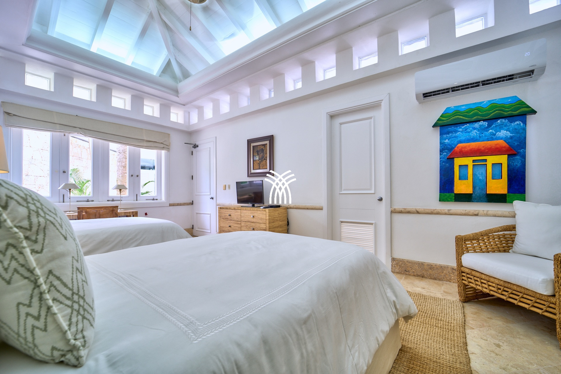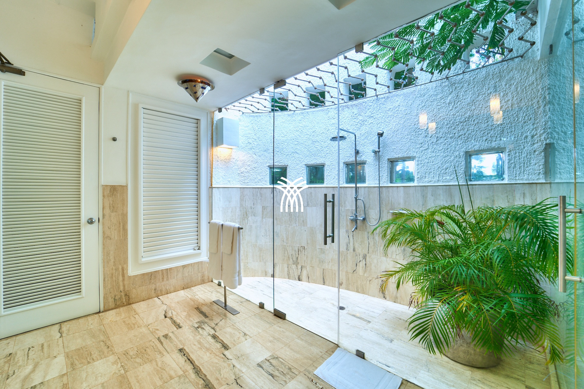 Baignée de lumière naturelle, la conception en plan ouvert de la villa crée une harmonie parfaite entre les espaces intérieurs et extérieurs. Les espaces climatisés, comprenant la salle à manger raffinée et le studio tranquille, offrent un refuge frais par rapport à la chaleur des Caraïbes, vous invitant à vous détendre dans un confort absolu.