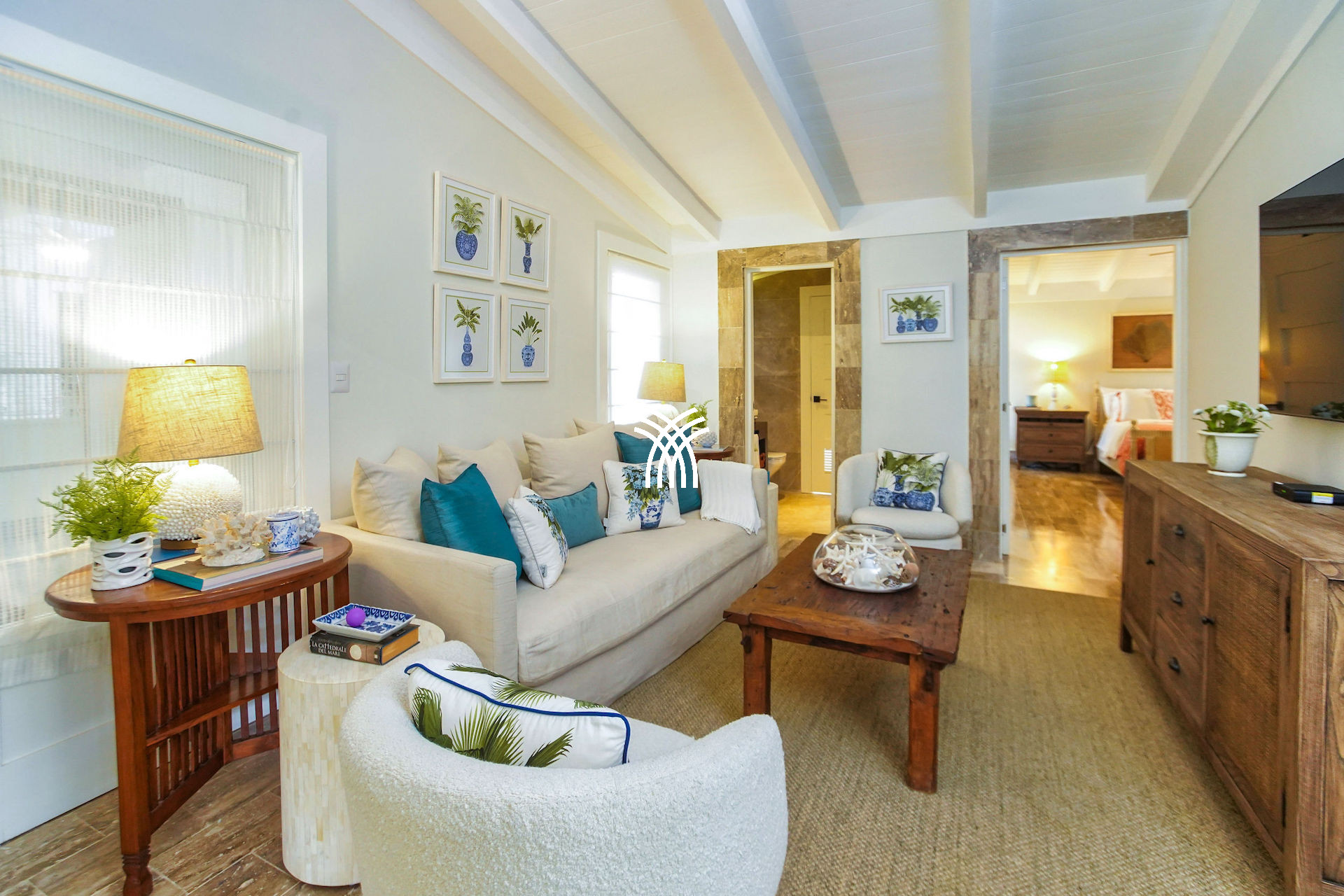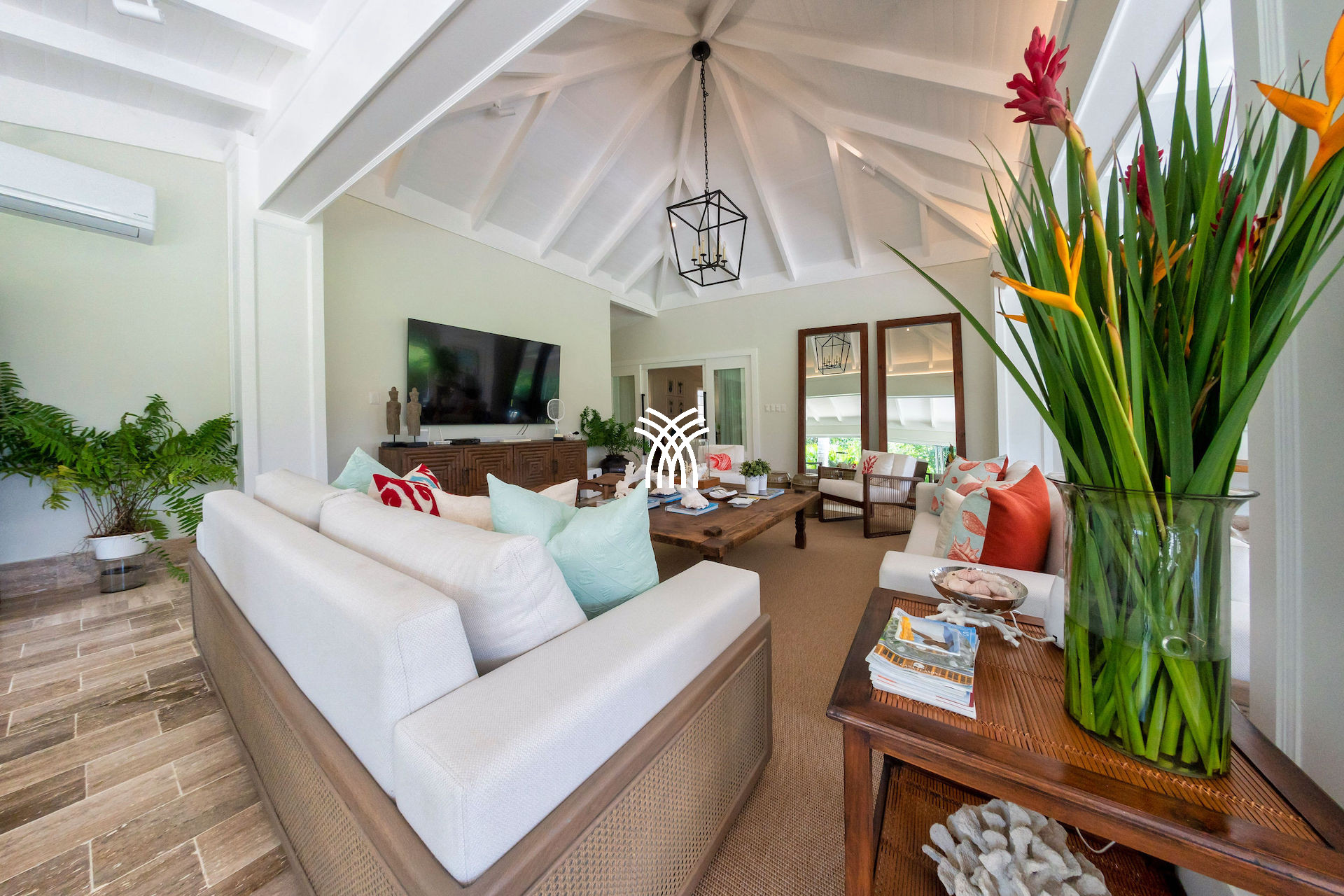 Dès votre arrivée par l'allée majestueuse bordée d'arbres, Casa Saman vous invite dans un monde où sérénité et sophistication coexistent. La conception ouverte et aérée de la villa crée une connexion harmonieuse entre le confort intérieur et l'environnement extérieur vibrant. Le salon spacieux s'étend avec grâce sur une terrasse baignée de soleil, révélant des vues panoramiques sur les jardins tropicaux et la piscine scintillante au-delà—un cadre parfait pour une réflexion tranquille ou des moments de joie avec la famille et les amis.