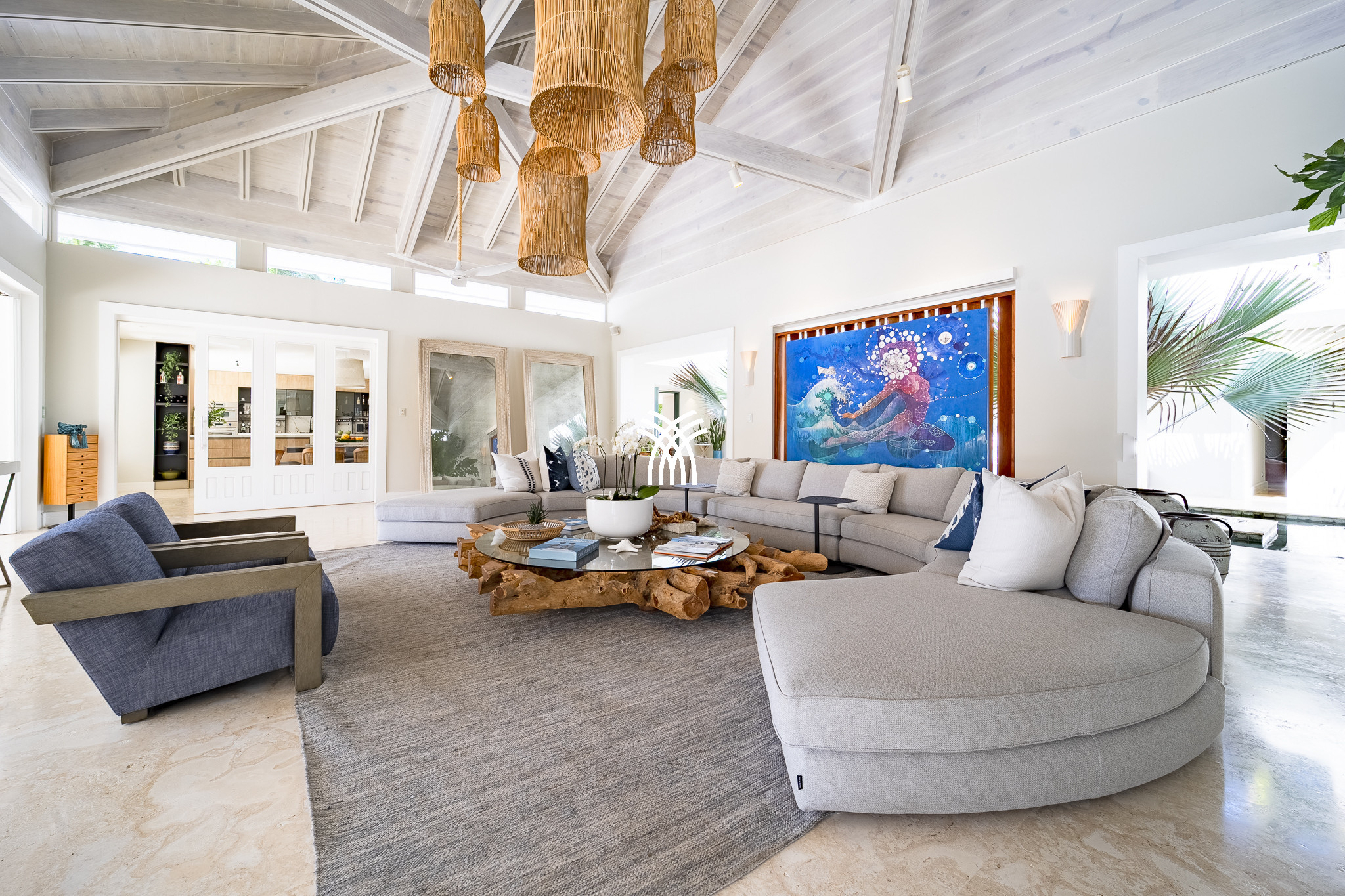 Baignée de lumière naturelle, la conception en plan ouvert de la villa crée une harmonie parfaite entre les espaces intérieurs et extérieurs. Les espaces climatisés, comprenant la salle à manger raffinée et le studio tranquille, offrent un refuge frais par rapport à la chaleur des Caraïbes, vous invitant à vous détendre dans un confort absolu.