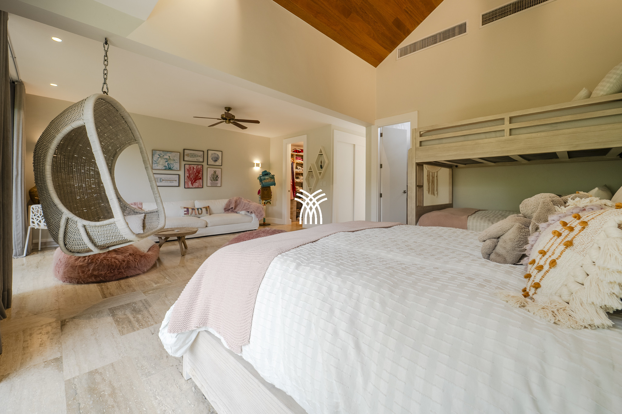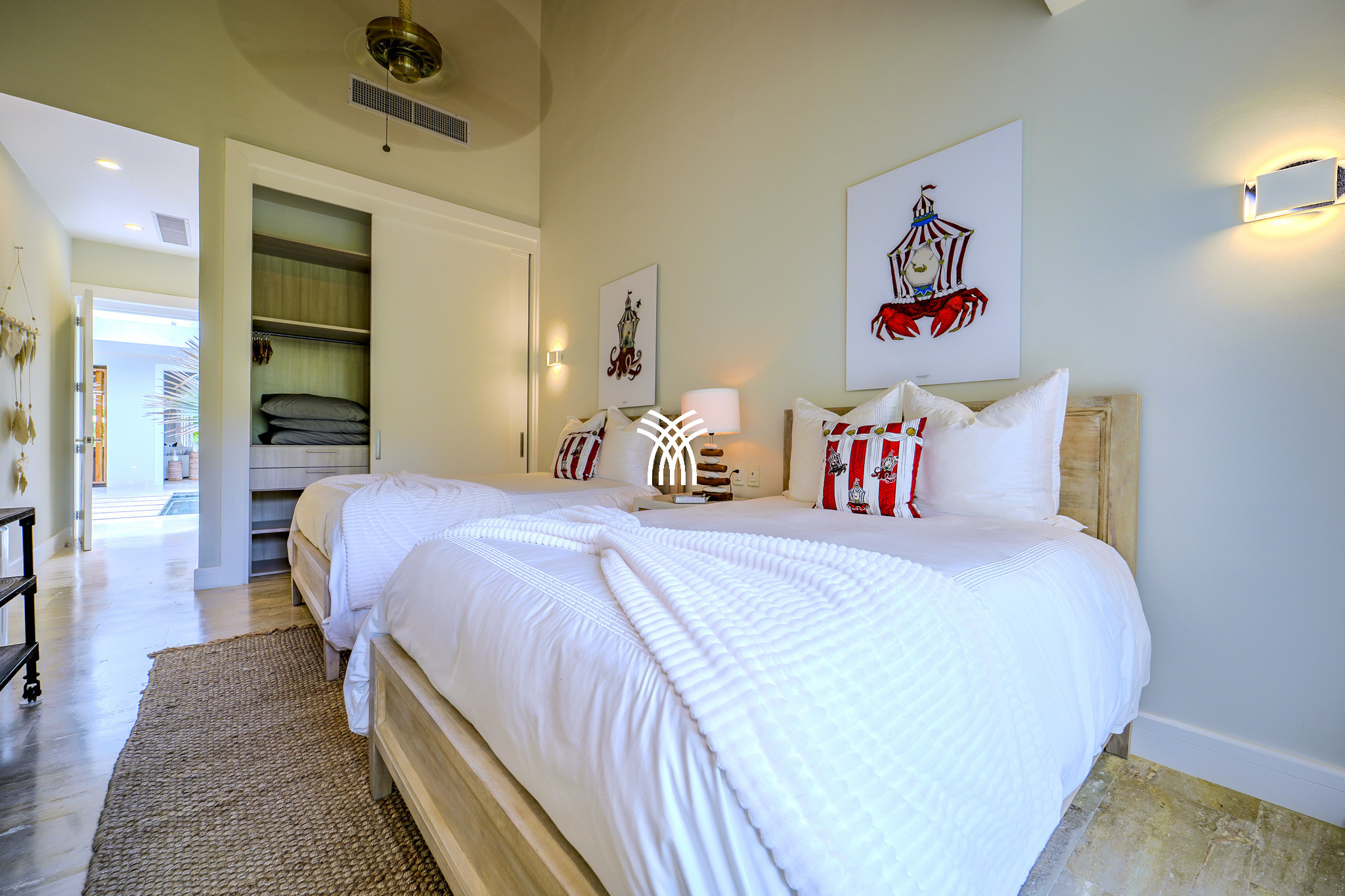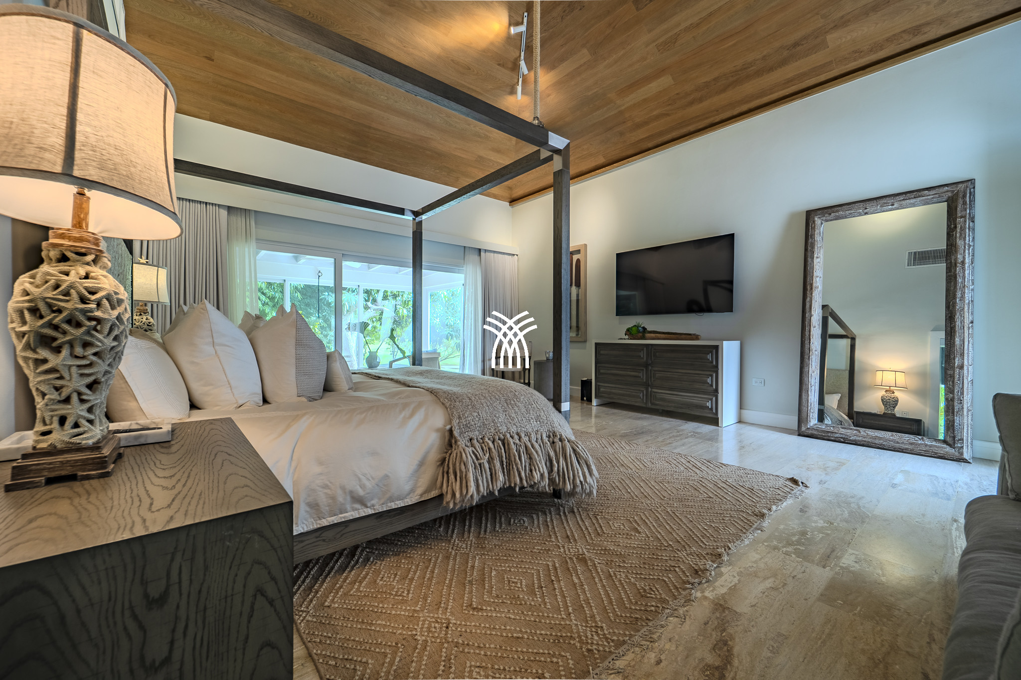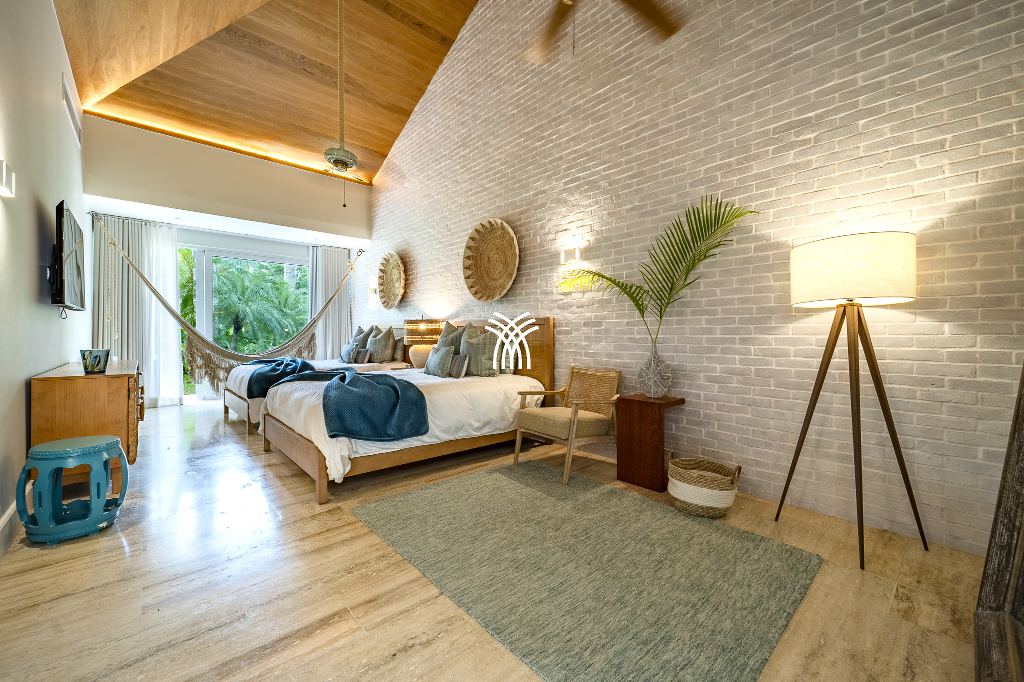 Au cœur du Tropical Modern se trouvent deux suites principales spacieuses, chacune un sanctuaire privé doté de salles de bains ouvertes et d'espaces de studio sereins. Parfaitement conçues pour les familles ou les groupes, les suites offrent à la fois intimité et connexion. Une cinquième chambre s'ouvre directement sur le jardin verdoyant et les abords de la piscine, garantissant un mélange harmonieux de luxe et de commodité.