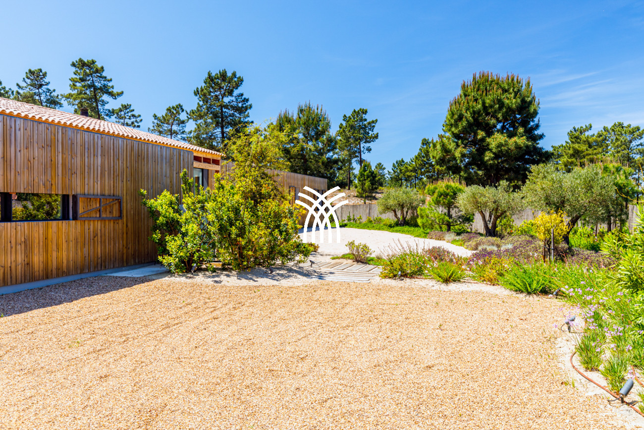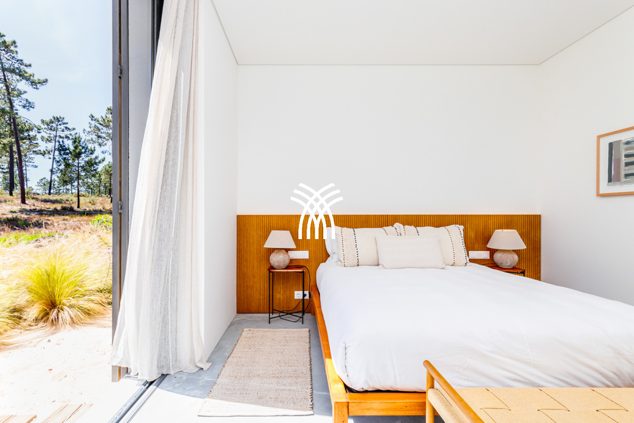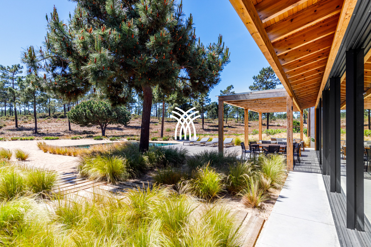 À l'extérieur, la villa s'ouvre sur une piscine privée encadrée par un jardin soigneusement aménagé, où le temps semble ralentir sous le soleil de Comporta. L'interaction entre l'architecture et la nature crée un mode de vie intérieur-extérieur harmonieux, invitant les invités à savourer de longues après-midis au bord de la piscine, des soirées douces sur la terrasse et des moments de tranquillité entourés des senteurs et des sons du paysage environnant. Depuis la terrasse privée, des vues panoramiques s'étendent vers l'horizon, offrant un cadre serein pour des couchers de soleil inoubliables et des nuits étoilées.