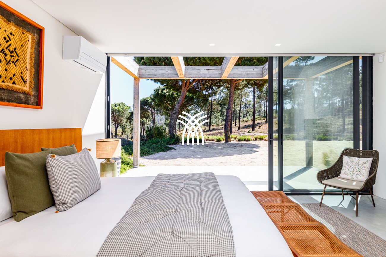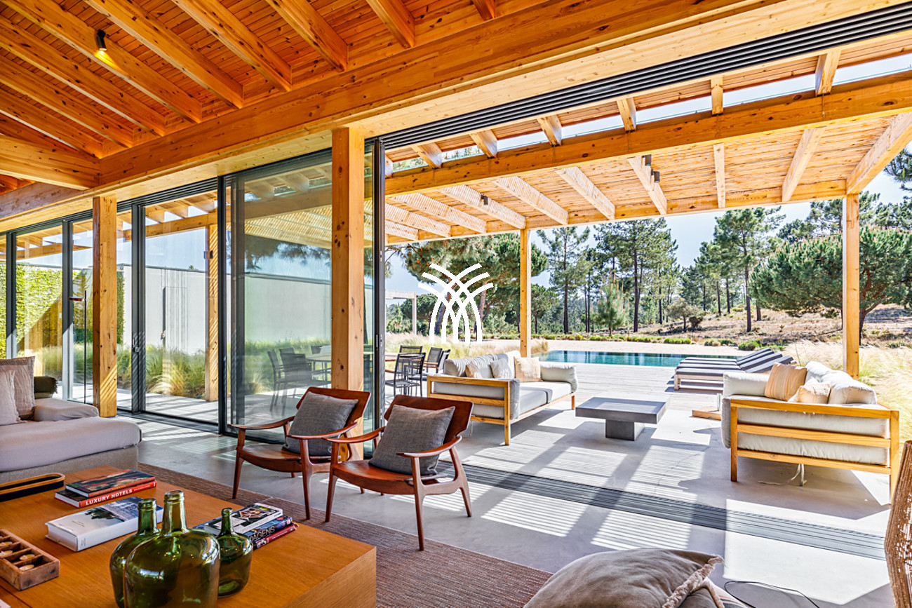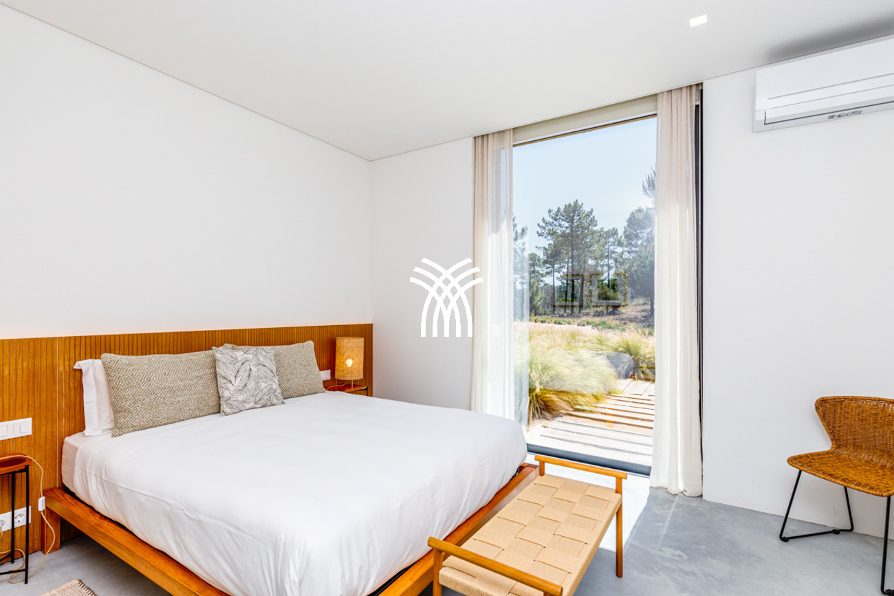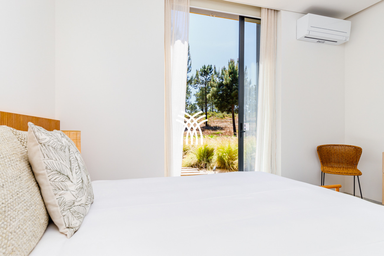 À l'extérieur, la villa s'ouvre sur une piscine privée encadrée par un jardin soigneusement aménagé, où le temps semble ralentir sous le soleil de Comporta. L'interaction entre l'architecture et la nature crée un mode de vie intérieur-extérieur harmonieux, invitant les invités à savourer de longues après-midis au bord de la piscine, des soirées douces sur la terrasse et des moments de tranquillité entourés des senteurs et des sons du paysage environnant. Depuis la terrasse privée, des vues panoramiques s'étendent vers l'horizon, offrant un cadre serein pour des couchers de soleil inoubliables et des nuits étoilées.