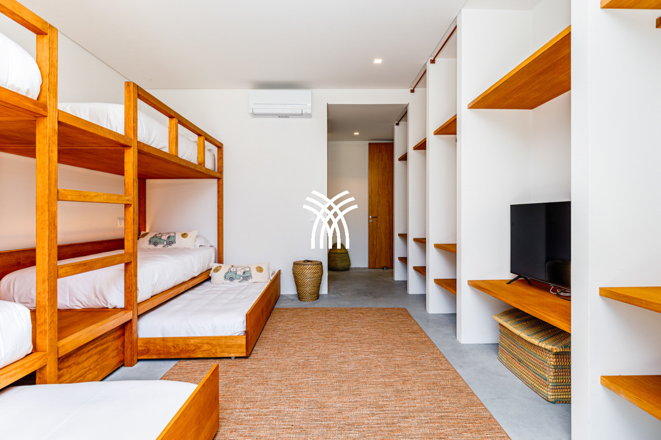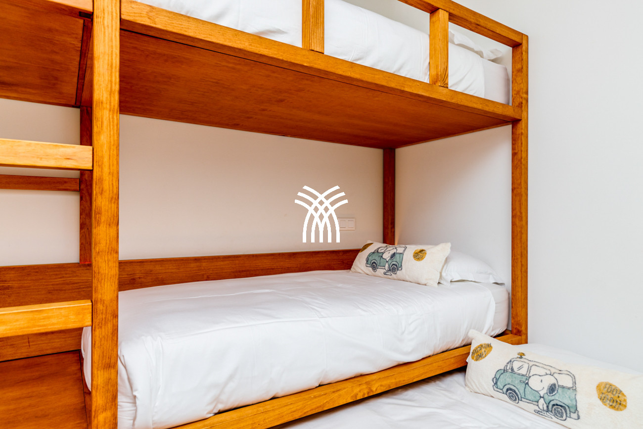 Créée pour accueillir jusqu'à 12 invités, dont 8 adultes et 4 enfants, la villa dispose de cinq chambres magnifiquement aménagées, chacune avec sa propre salle de bain attenante pour garantir le confort et la discrétion de chaque invité. La disposition comprend deux chambres doubles, deux chambres avec lits jumeaux et une chambre d'enfants dédiée avec deux lits superposés, ce qui fait de cette résidence un lieu parfaitement adapté aux familles et aux groupes recherchant une retraite à la fois élégante et intimiste.
