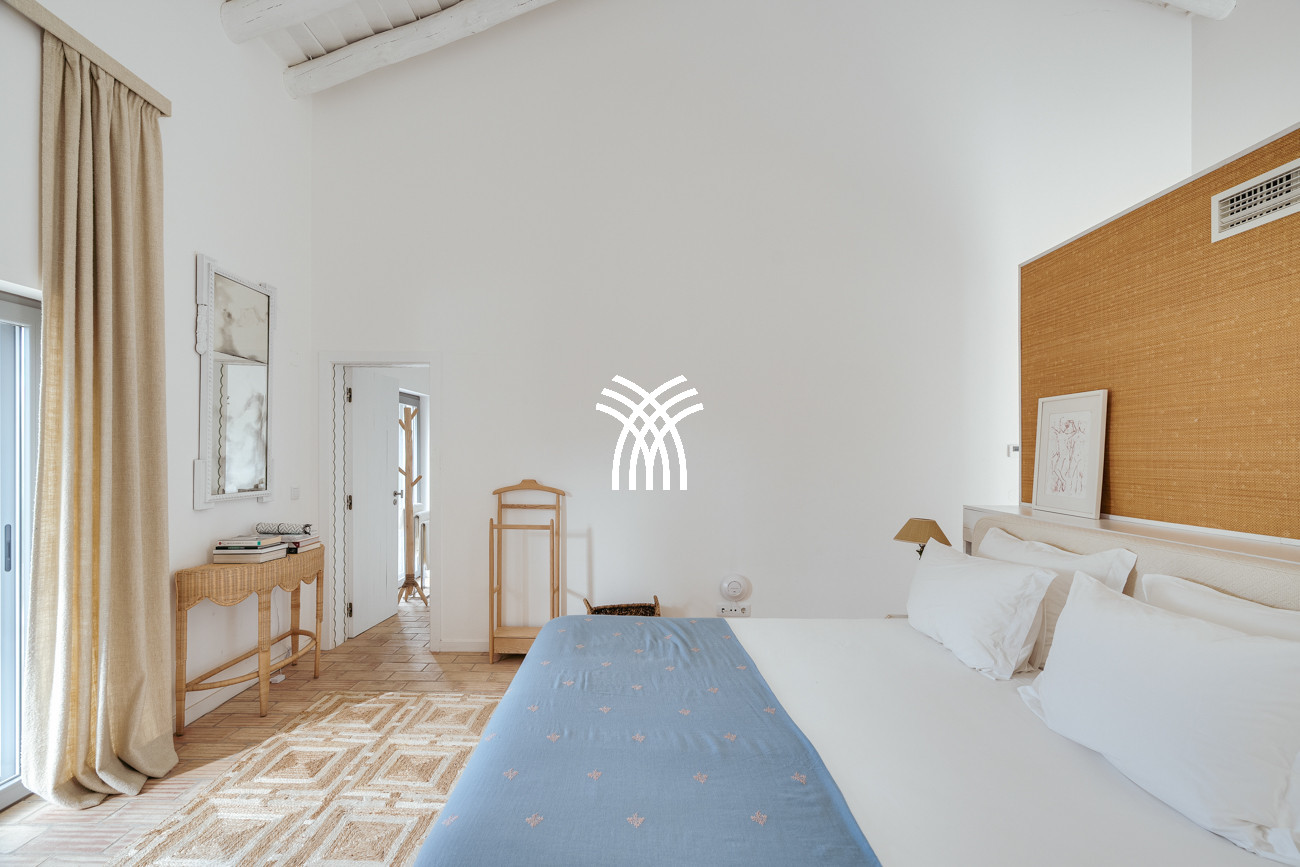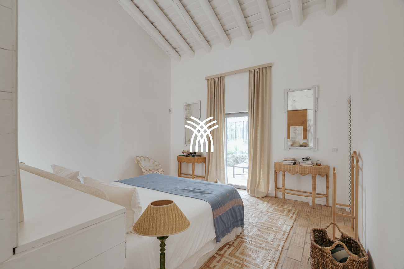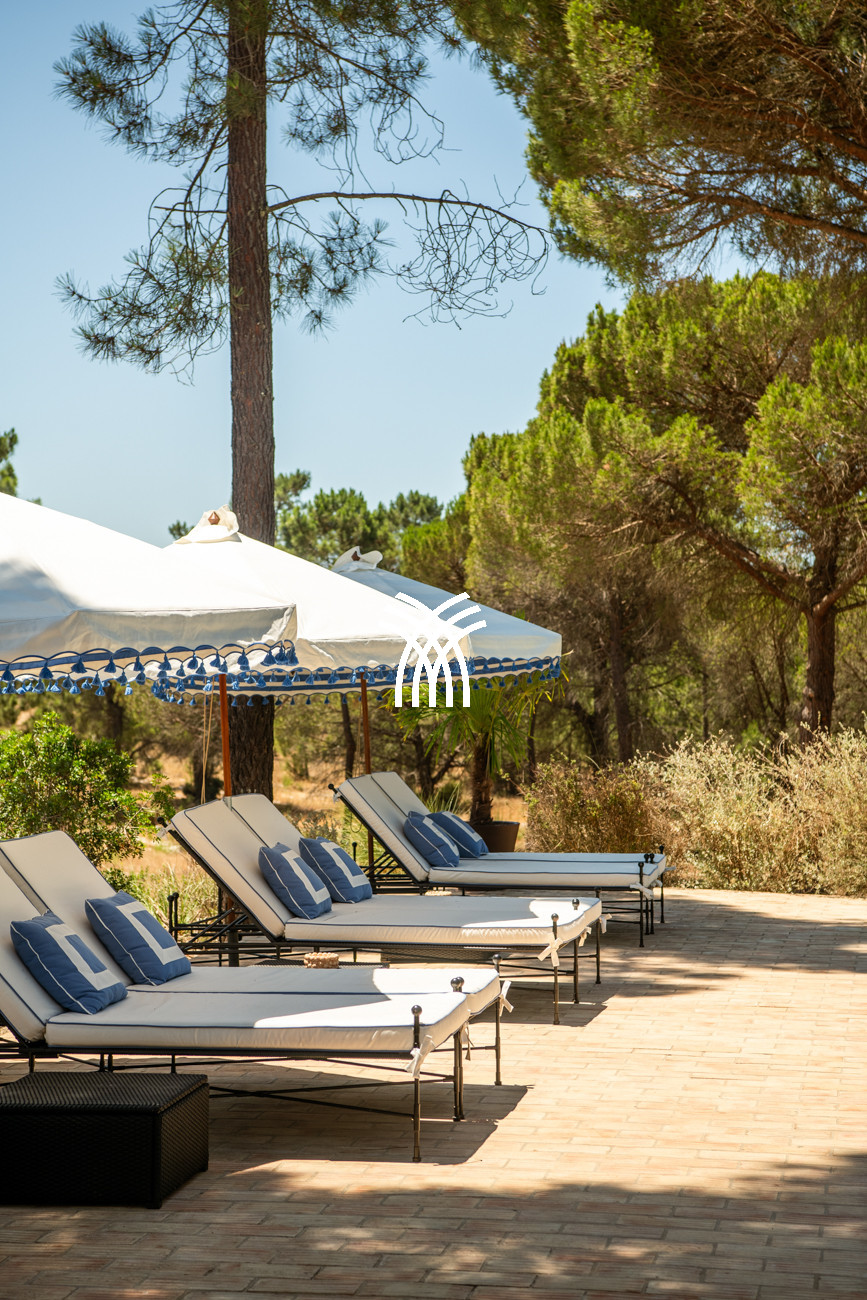 Au cœur du domaine, la piscine forme un havre de paix où les invités peuvent s'immerger dans des eaux cristallines tout en profitant d'une vue dégagée sur le paysage environnant. L'espace piscine devient un lieu de rassemblement naturel pour des moments de détente, de contemplation et de souvenirs partagés sous le soleil de Comporta, où le temps semble ralentir et où chaque détail semble intentionnellement conçu pour le bien-être.