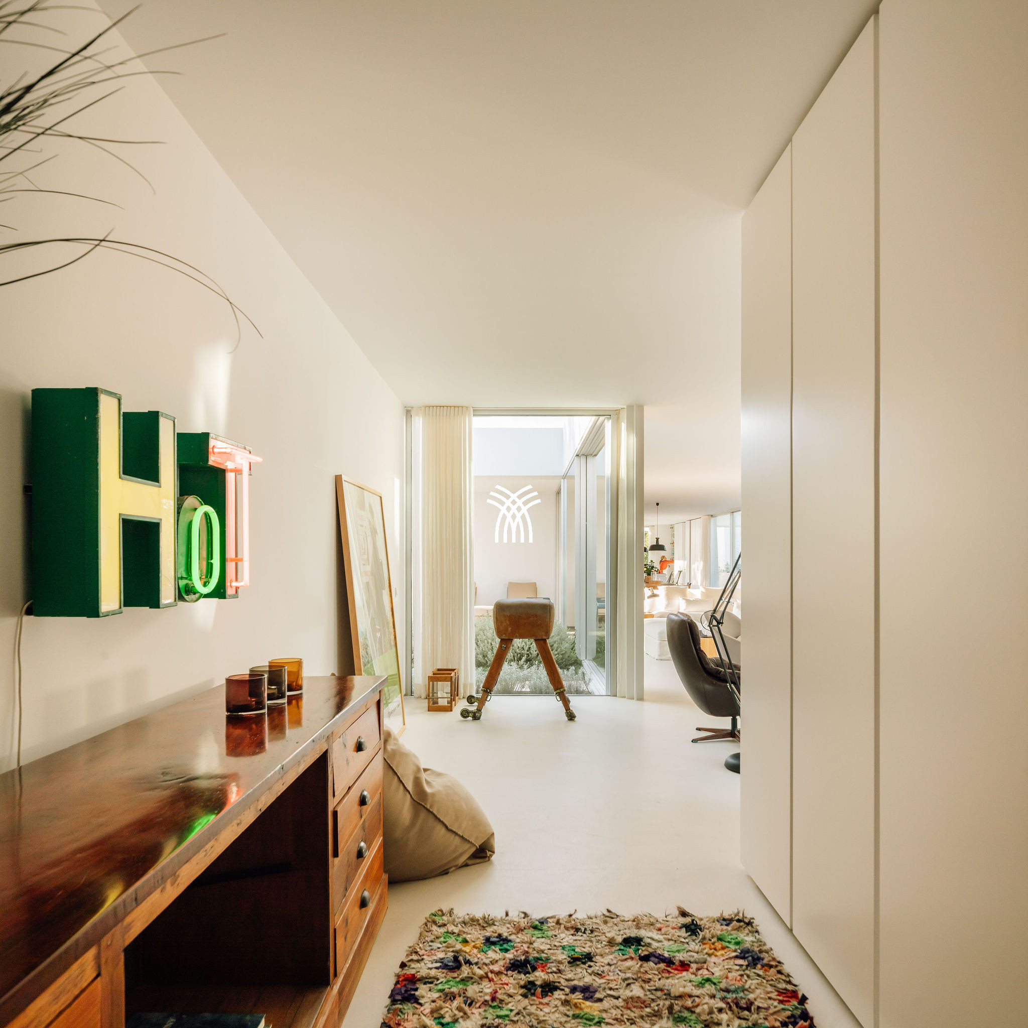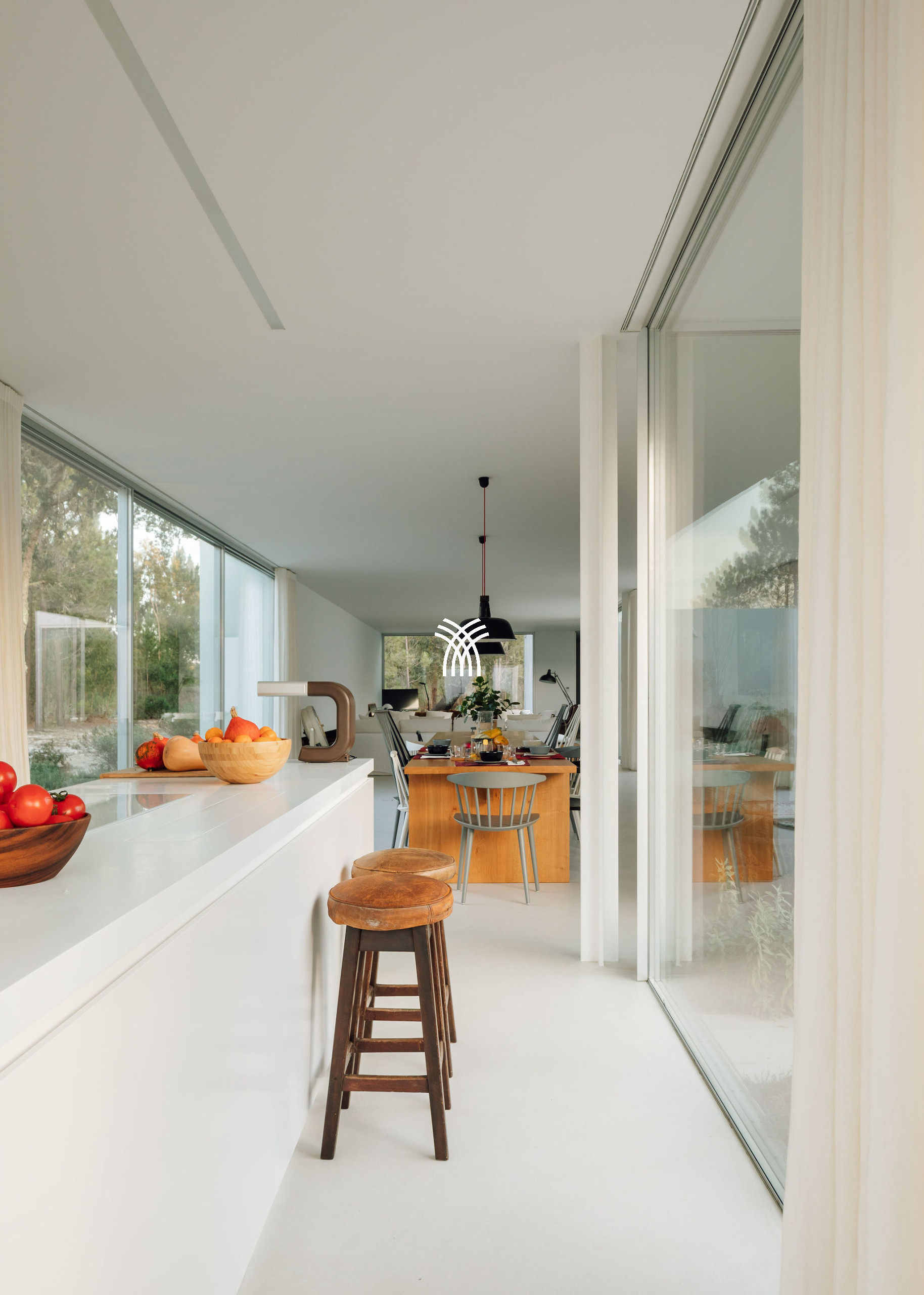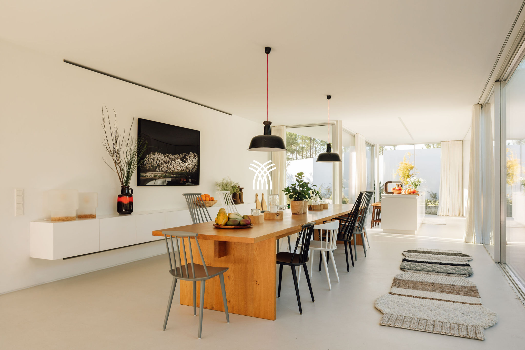 Immergée dans le paysage naturel luxuriant de Comporta, la Villa Katsu est une retraite conçue par un architecte qui incarne l'élégance contemporaine et une simplicité raffinée, où des lignes épurées, des volets en bois et des proportions harmonieuses se fondent parfaitement dans l'environnement. Baignés de lumière naturelle, les intérieurs se déploient à travers de grandes fenêtres qui invitent l'extérieur à l'intérieur, illuminant des murs blancs immaculés, des plafonds vertigineux et des parquets chaleureux, tandis que des œuvres d'art soigneusement sélectionnées et des touches décoratives subtiles apportent de la vivacité et de la personnalité à l'esthétique sereine, créant une atmosphère qui définit l'essence d'une location de villa de luxe au Portugal et d'une location de villa de luxe authentique à Comporta.