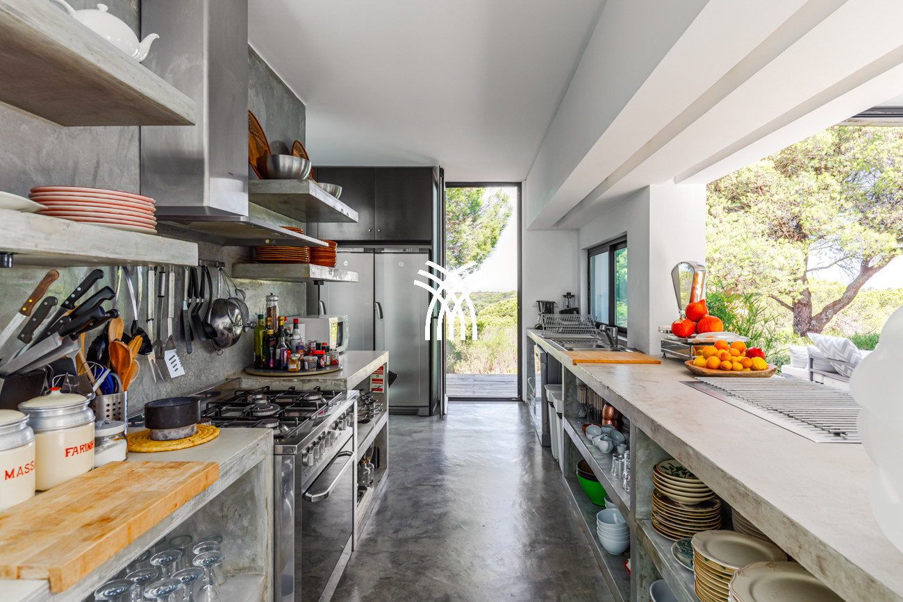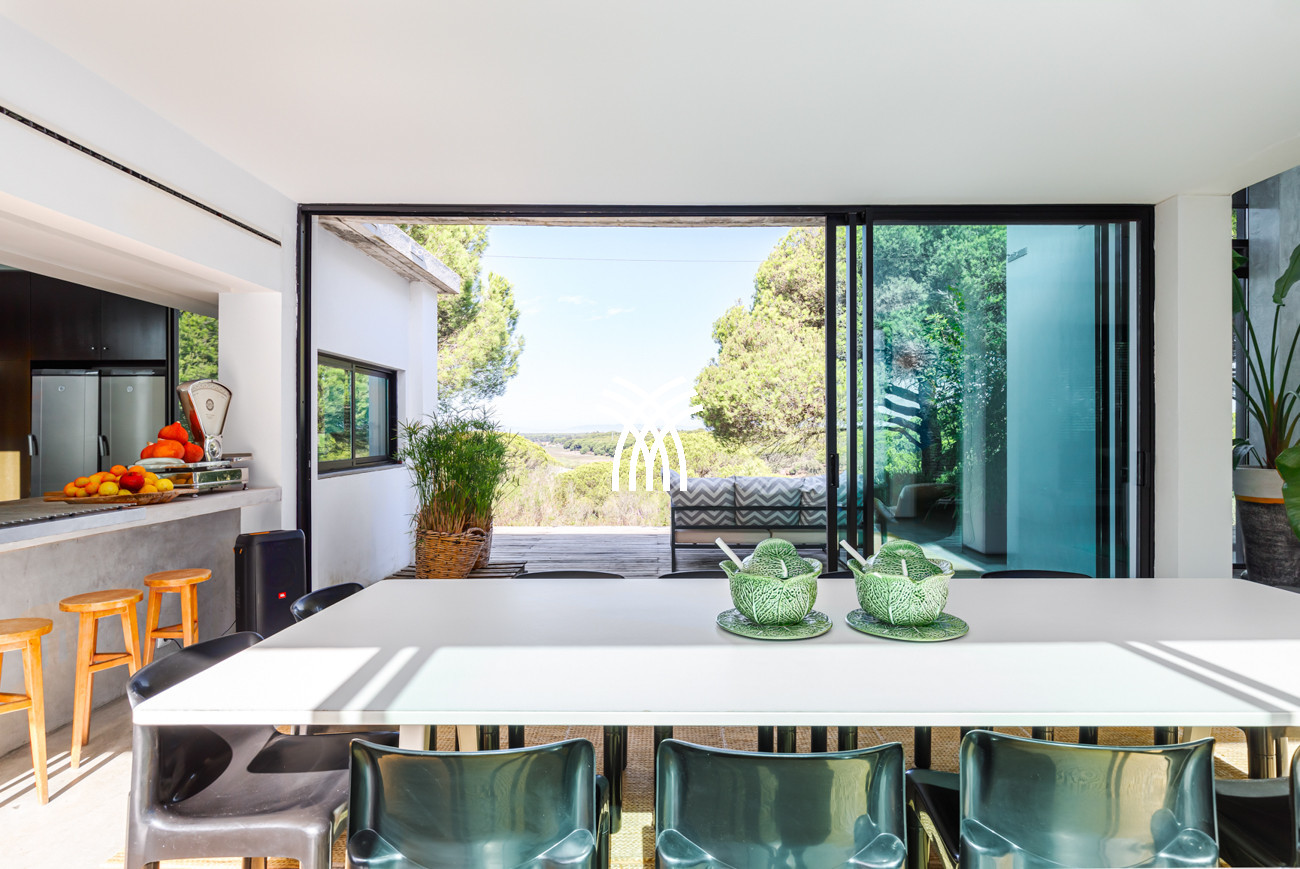 Immergée dans le paysage naturel luxuriant de Comporta, la Villa Katsu est une retraite conçue par un architecte qui incarne l'élégance contemporaine et une simplicité raffinée, où des lignes épurées, des volets en bois et des proportions harmonieuses se fondent parfaitement dans l'environnement. Baignés de lumière naturelle, les intérieurs se déploient à travers de grandes fenêtres qui invitent l'extérieur à l'intérieur, illuminant des murs blancs immaculés, des plafonds vertigineux et des parquets chaleureux, tandis que des œuvres d'art soigneusement sélectionnées et des touches décoratives subtiles apportent de la vivacité et de la personnalité à l'esthétique sereine, créant une atmosphère qui définit l'essence d'une location de villa de luxe au Portugal et d'une location de villa de luxe authentique à Comporta.