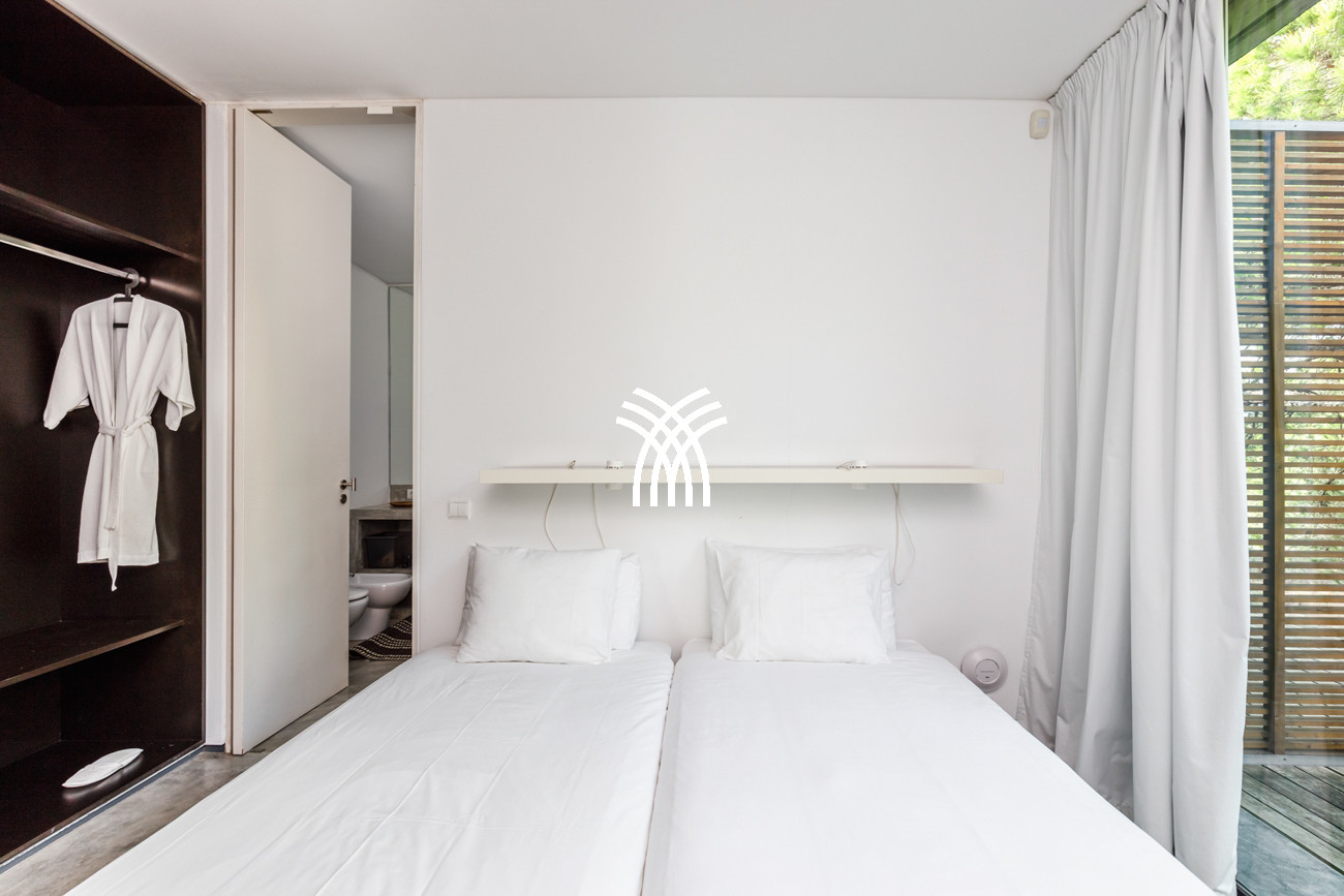 Dans le vaste domaine de 23 hectares, les invités profitent d'un accès à une piscine à débordement conçue par un architecte, partagée avec deux autres villas, entourée de bois qui invitent à l'exploration et à la contemplation silencieuse. Des moments passés dans un hamac ou sur une balançoire aux parties de volleyball, aux promenades tranquilles à travers les sentiers naturels et les dunes de sable, ou aux inoubliables balades à cheval le long des plages de Comporta, chaque expérience est encadrée par la beauté naturelle distinctive de la région.