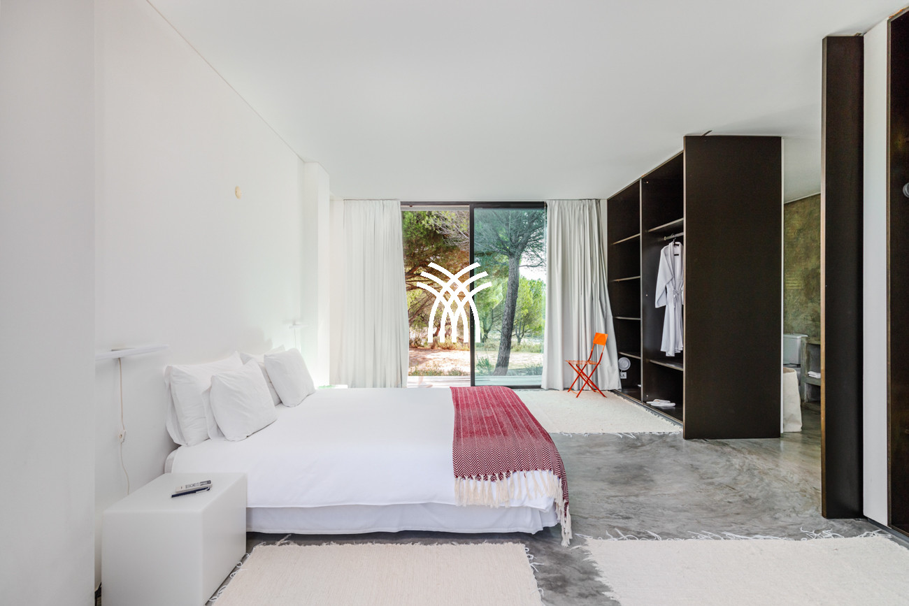 Les matins commencent avec des vues enchanteresses sur les jardins paysagers et la piscine invitante, où la lumière douce, les ciels ouverts et le calme paisible définissent le rythme de la journée. Du lever au coucher du soleil, les couleurs changeantes du ciel de Comporta encadrent chaque moment avec un sentiment de paix et de beauté tranquille. La piscine privée devient un véritable havre de paix, offrant des baignades rafraîchissantes, des après-midis ensoleillés et des moments de détente sereine, le tout sur fond de verdure luxuriante et d'espaces ouverts.