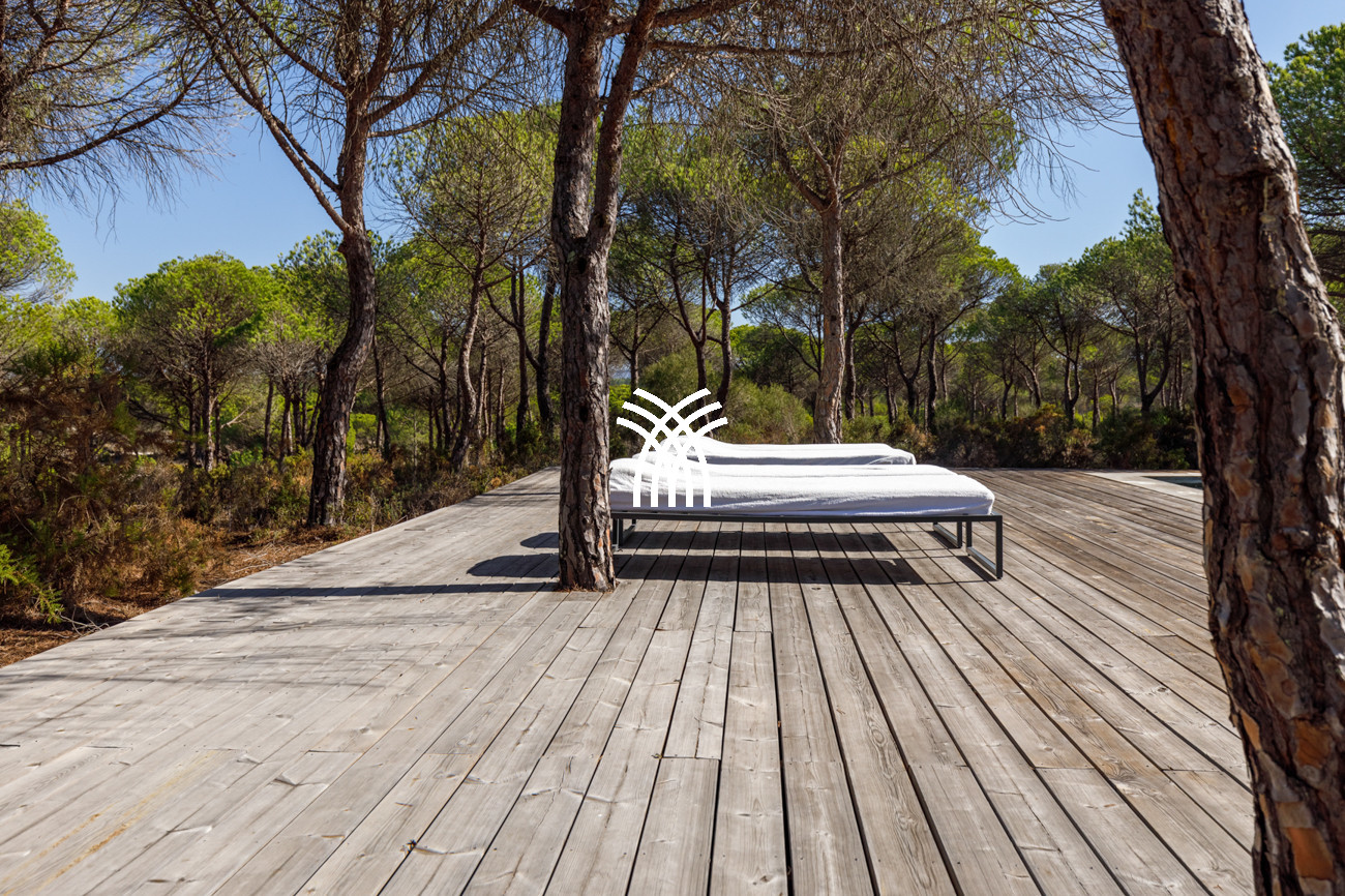 Au-delà de la villa, le paysage environnant invite à des moments de loisirs et de découverte, depuis la détente tranquille dans un hamac ou des balançoires douces sous les arbres jusqu'aux matchs de volleyball animés et aux baignades rafraîchissantes dans la piscine à débordement. Les promenades à travers les dunes voisines et les balades à cheval le long des plages emblématiques de Comporta approfondissent davantage la connexion à ce cadre naturel extraordinaire, où la terre, la mer et le ciel se fondent dans une beauté intemporelle.